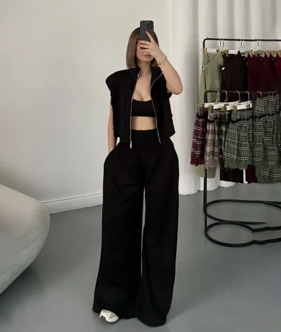 Yelda Crop Takım - Siyah