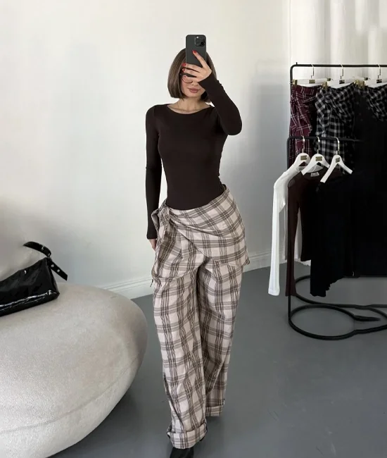 Jemmy Ekoseli Pantolon - Bej