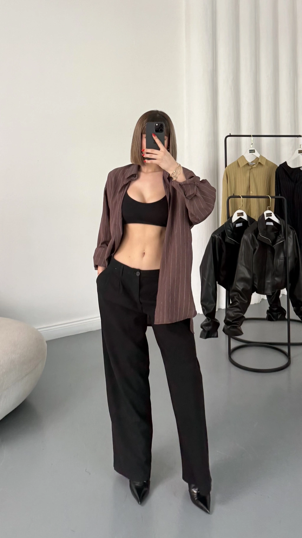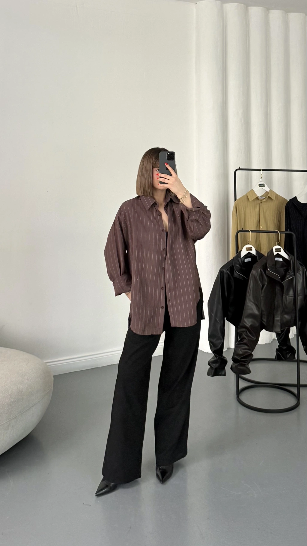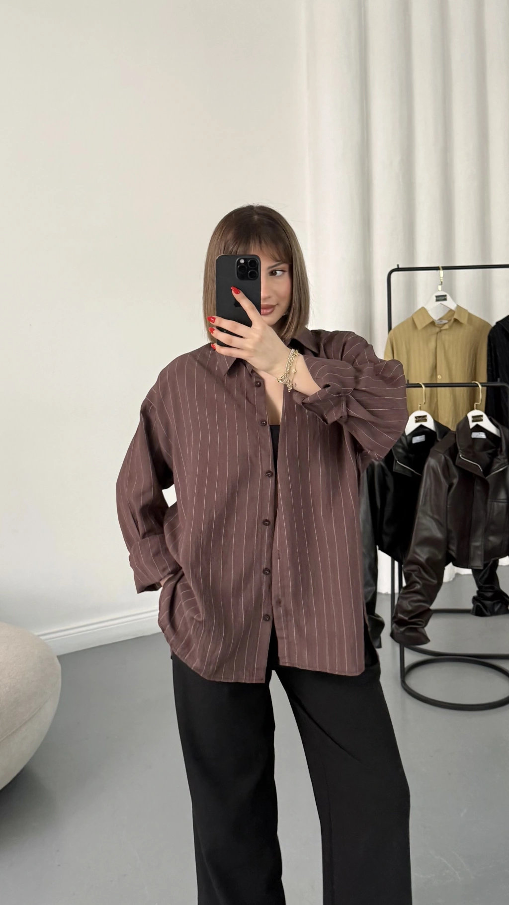 Allison Çizgili Salaş Gömlek - Kahve