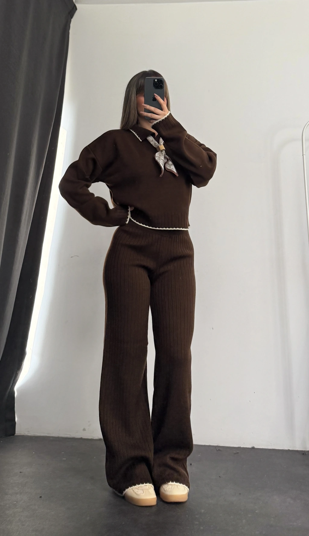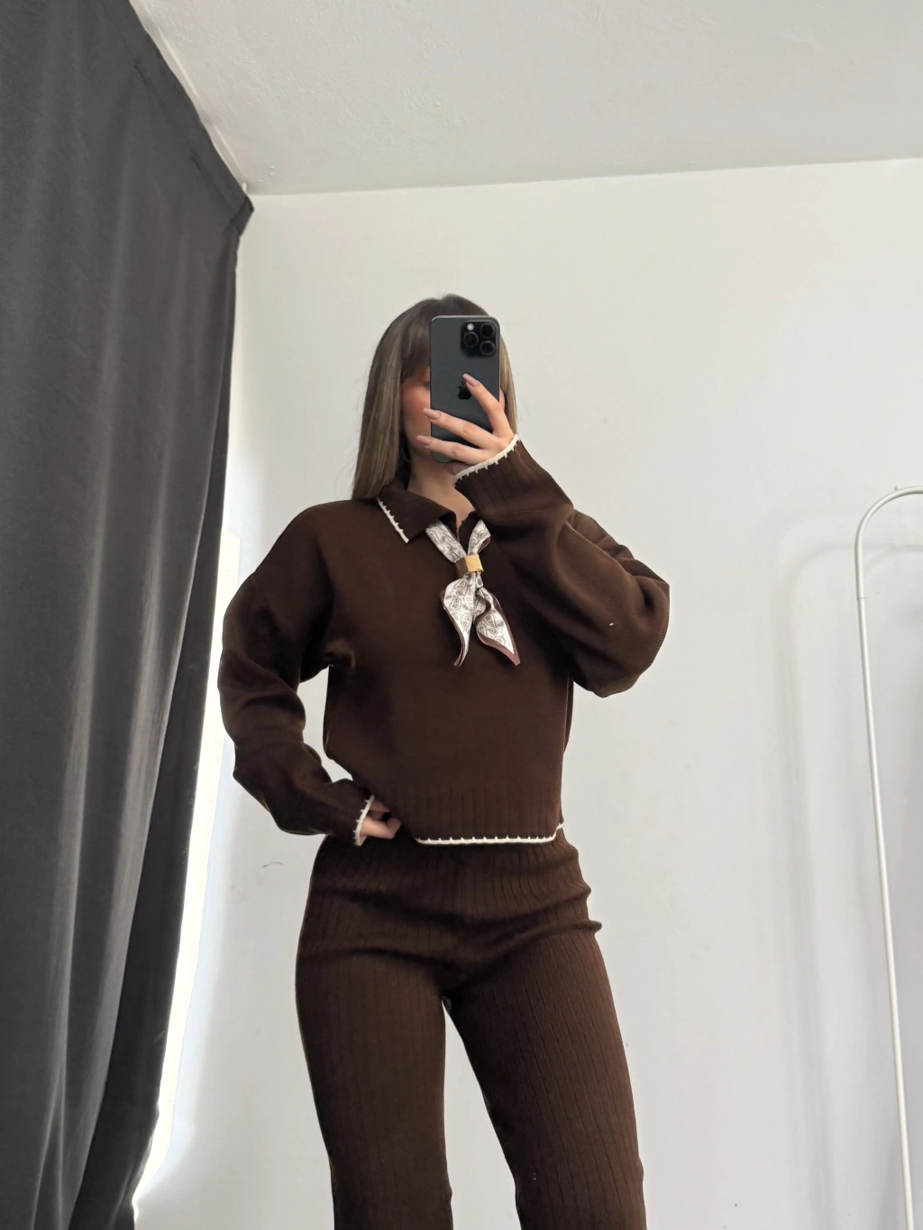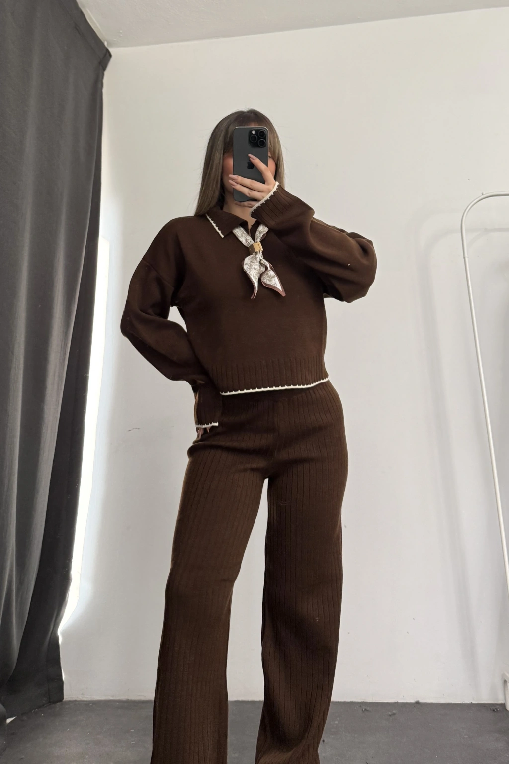 Amanda Fular Detay Triko Takım - Kahve