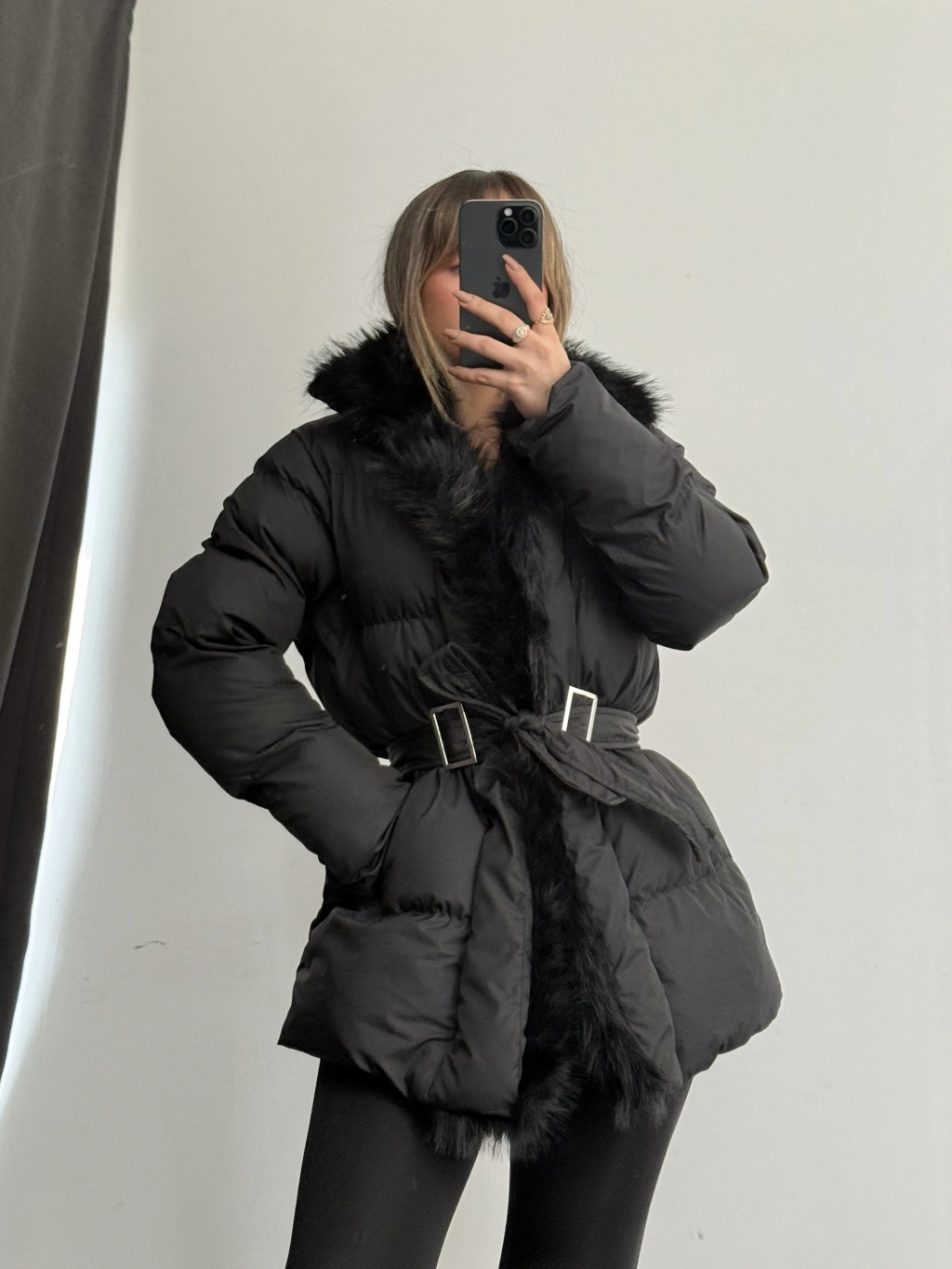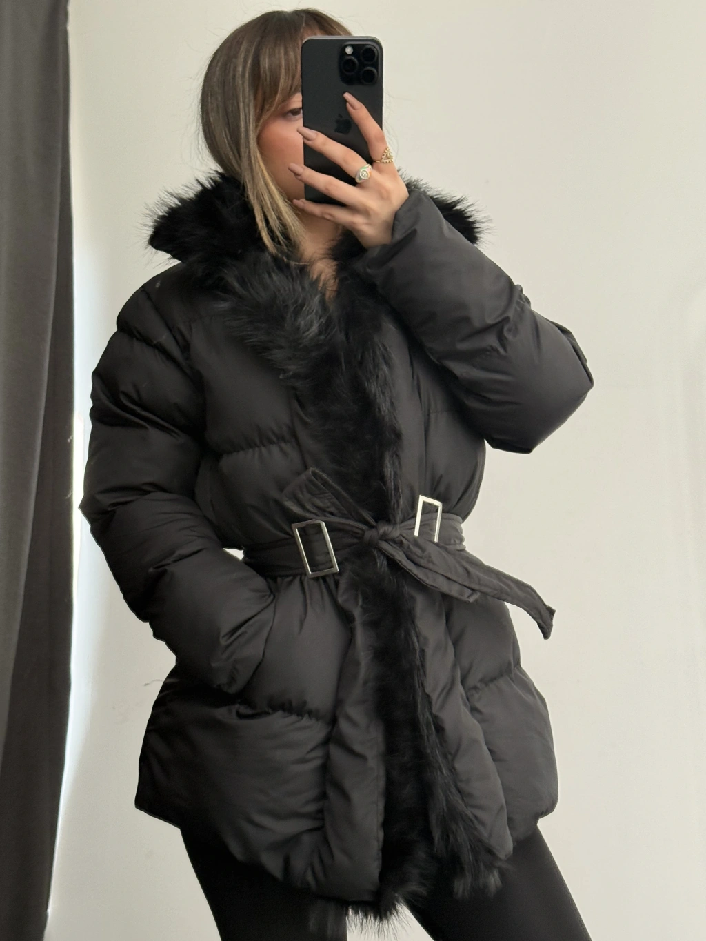 Amor Kürklü Şişme Mont - Siyah