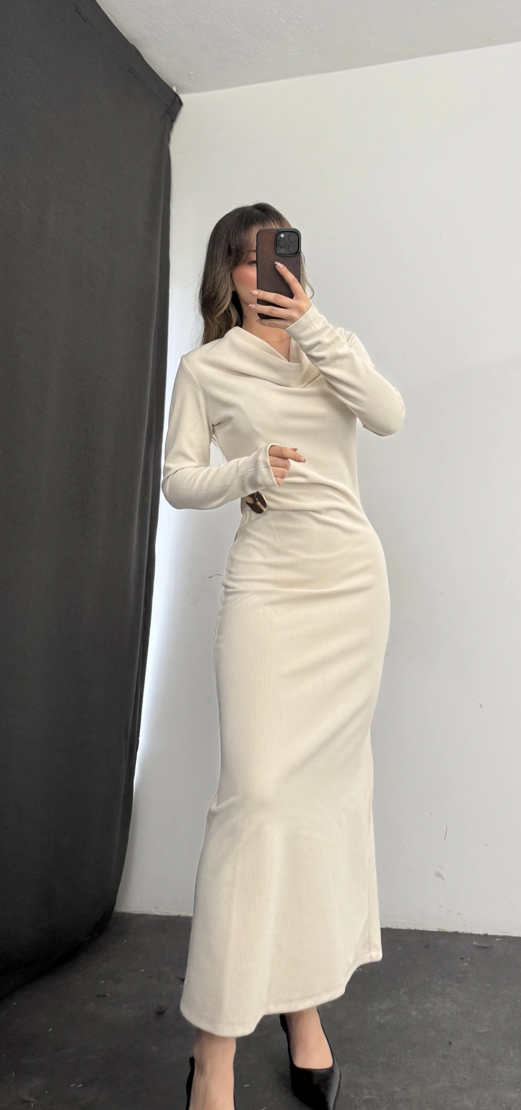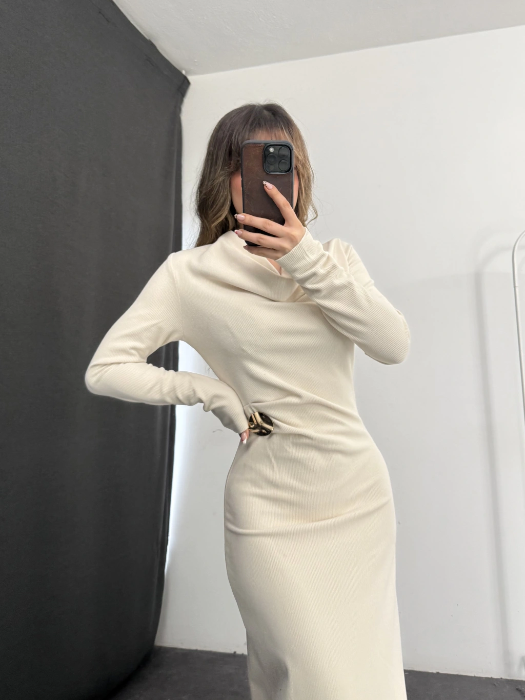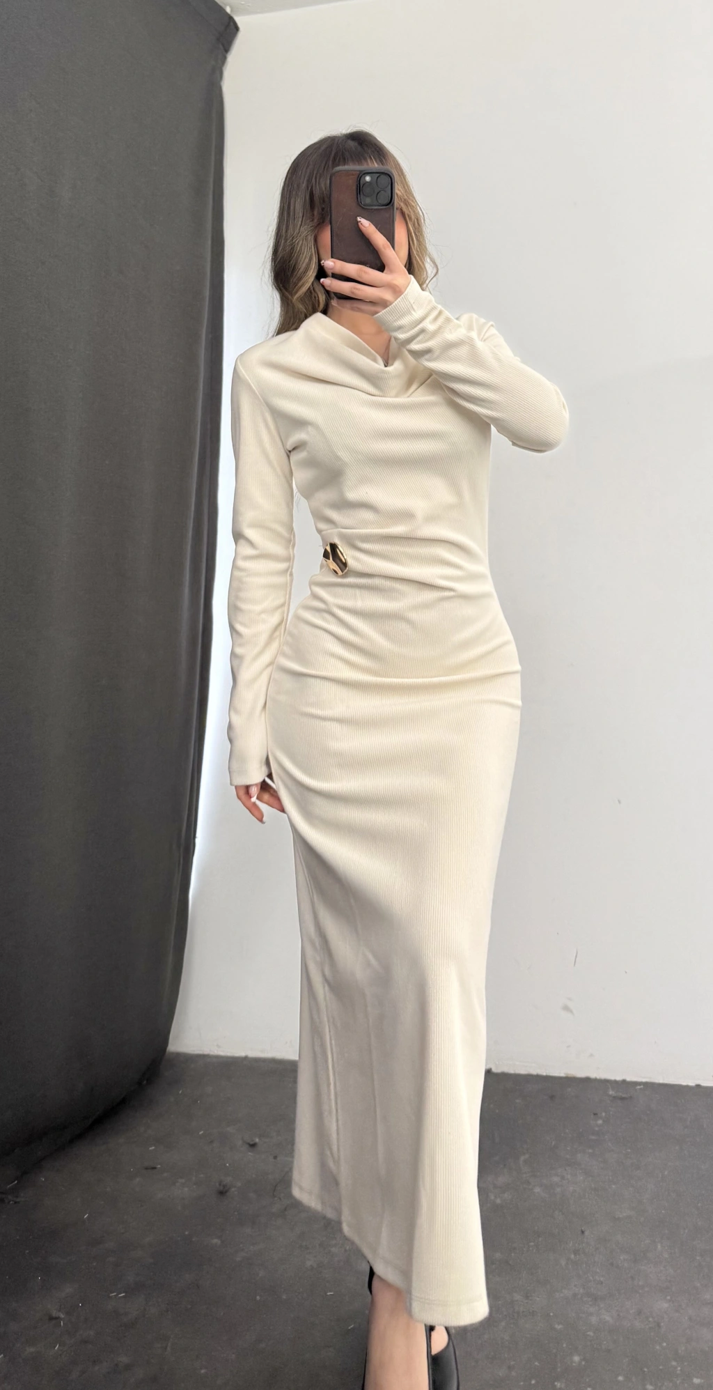 Aven Degaje Yaka Tokalı Elbise - Taş