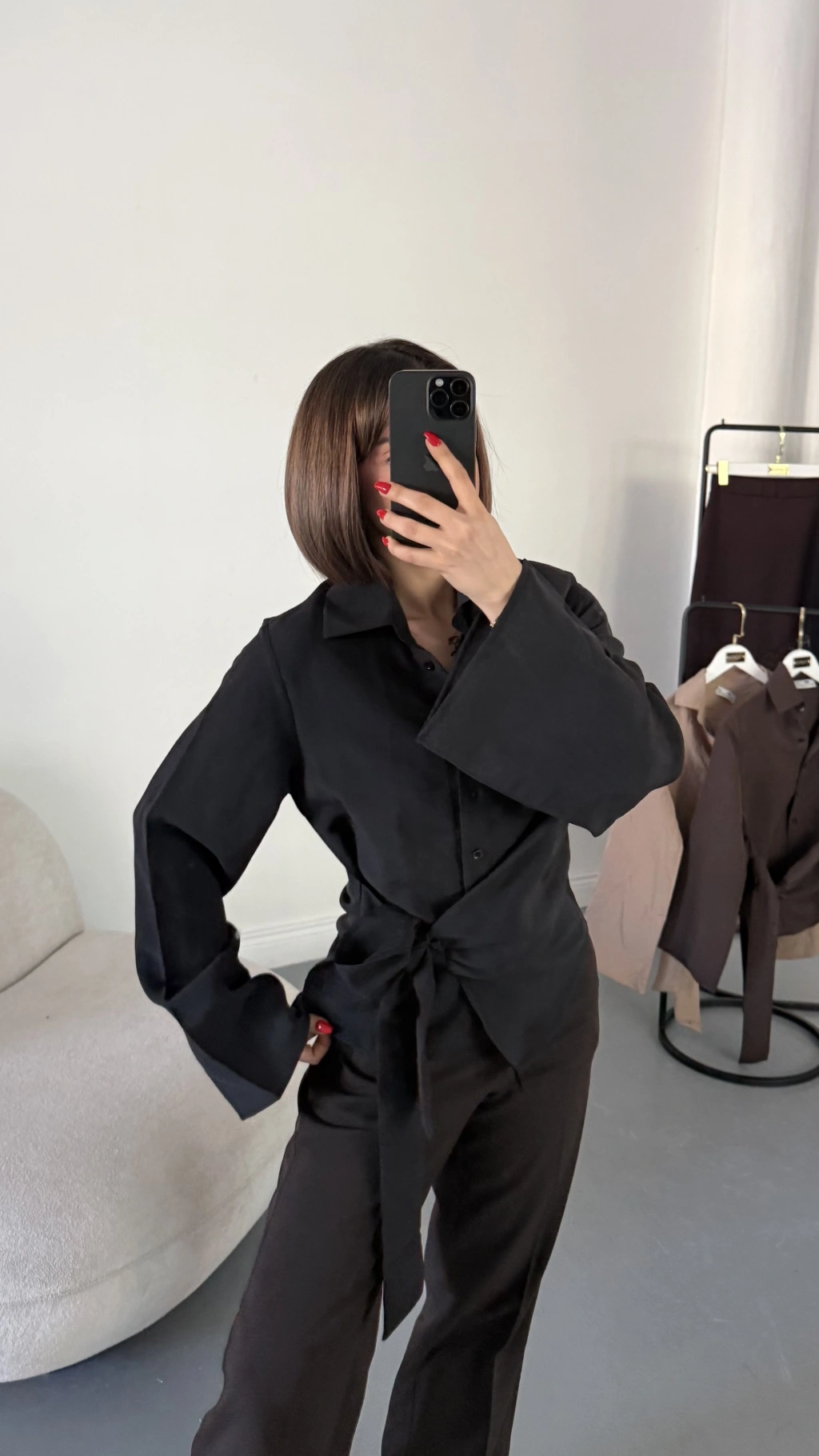 Beatrice Bağlamalı Gömlek - Siyah