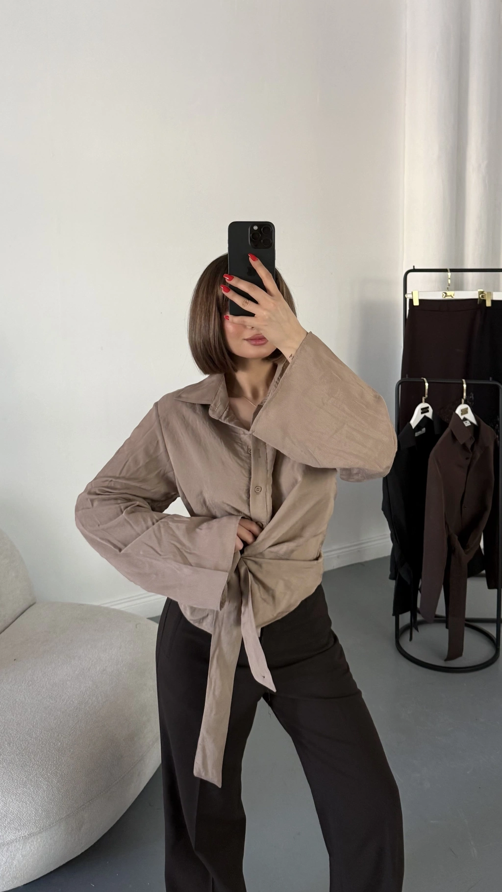 Beatrice Bağlamalı Gömlek - Vizon