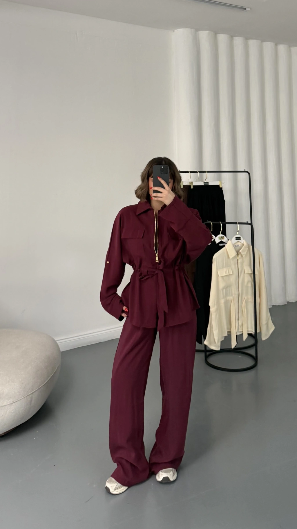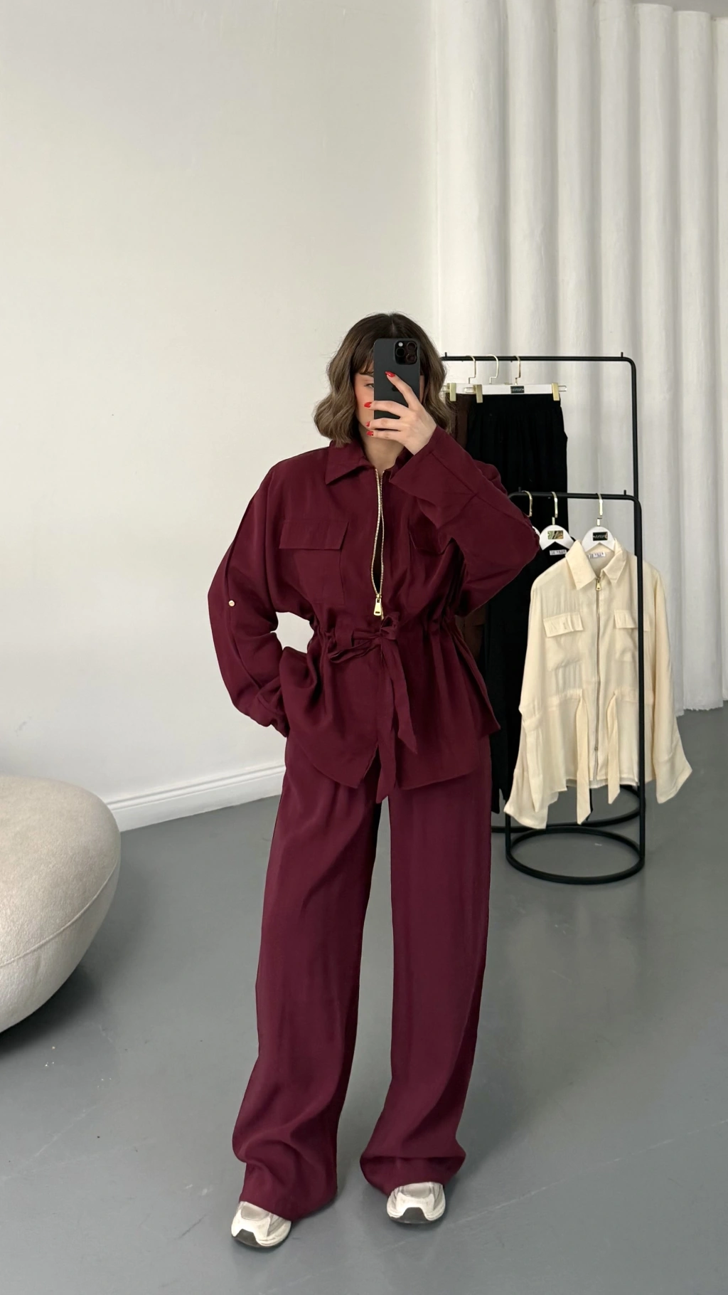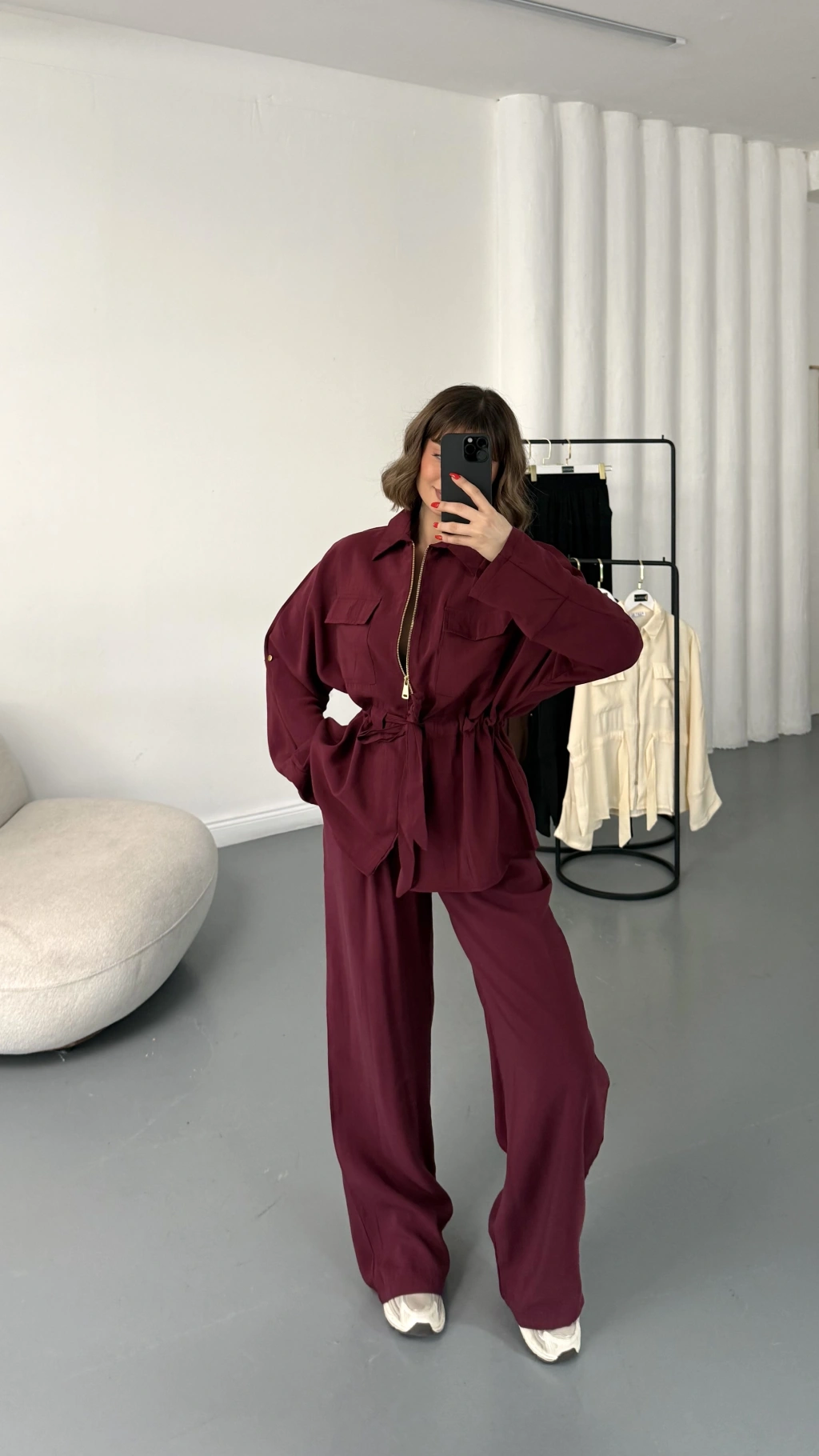 Belin Fermuarlı Tencel Takım - Bordo
