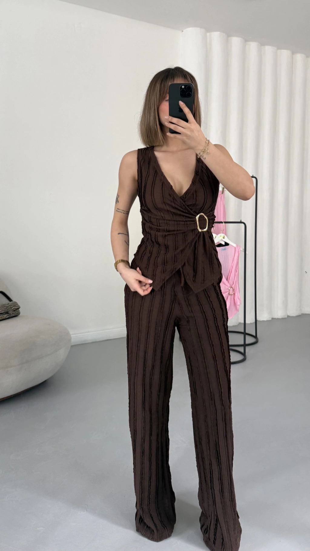 Carolin Tokalı Kruvaze Takım - Kahve