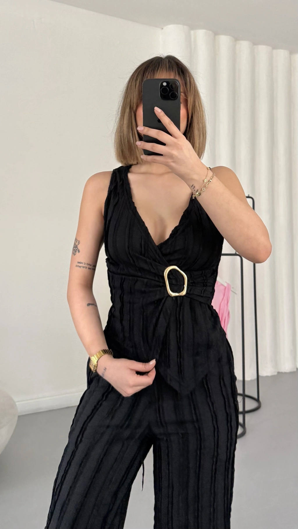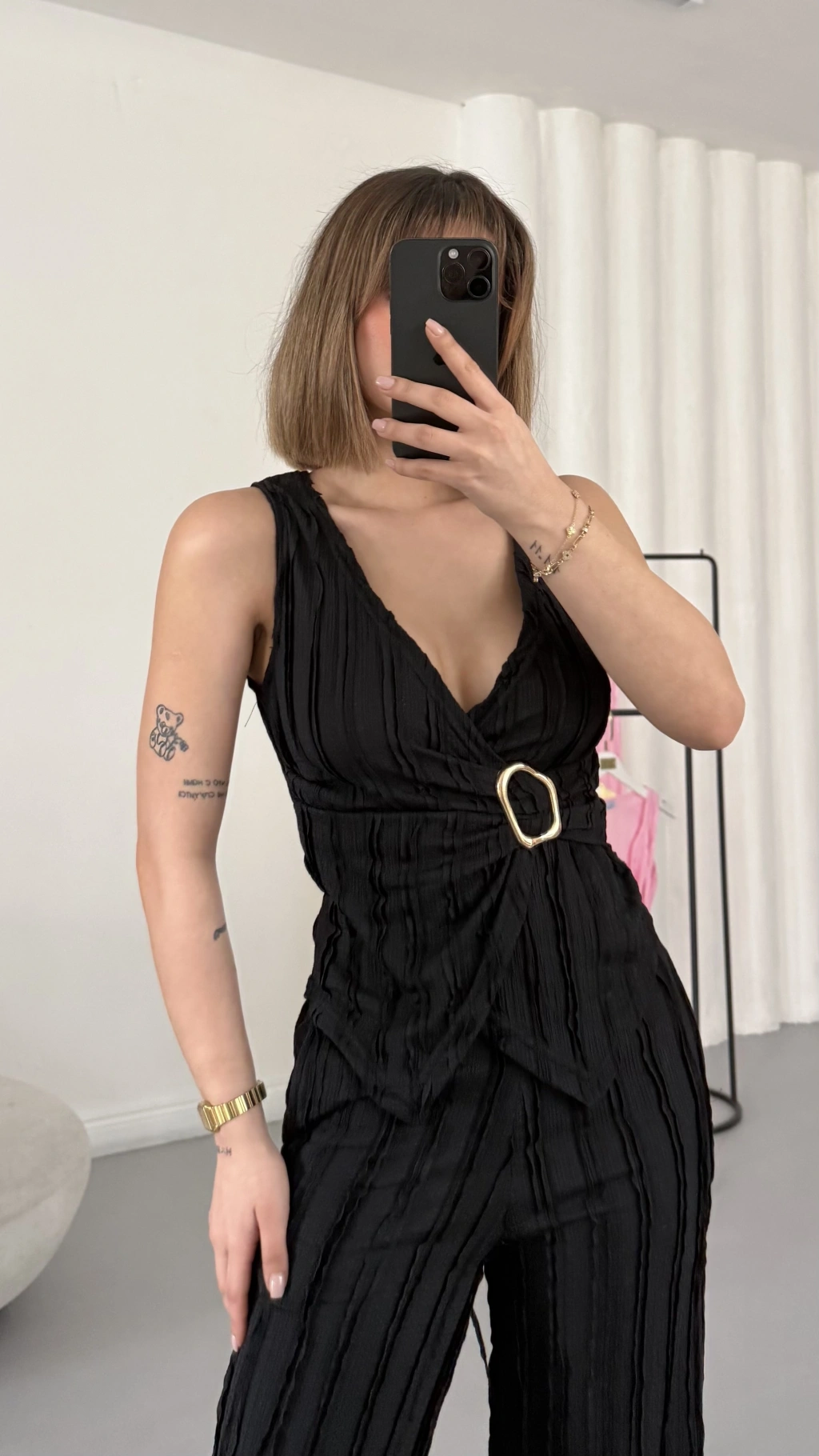 Carolin Tokalı Kruvaze Takım - Siyah