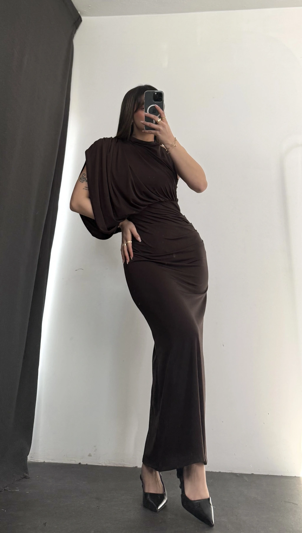 Charlotte Drapeli Elbise - Kahve