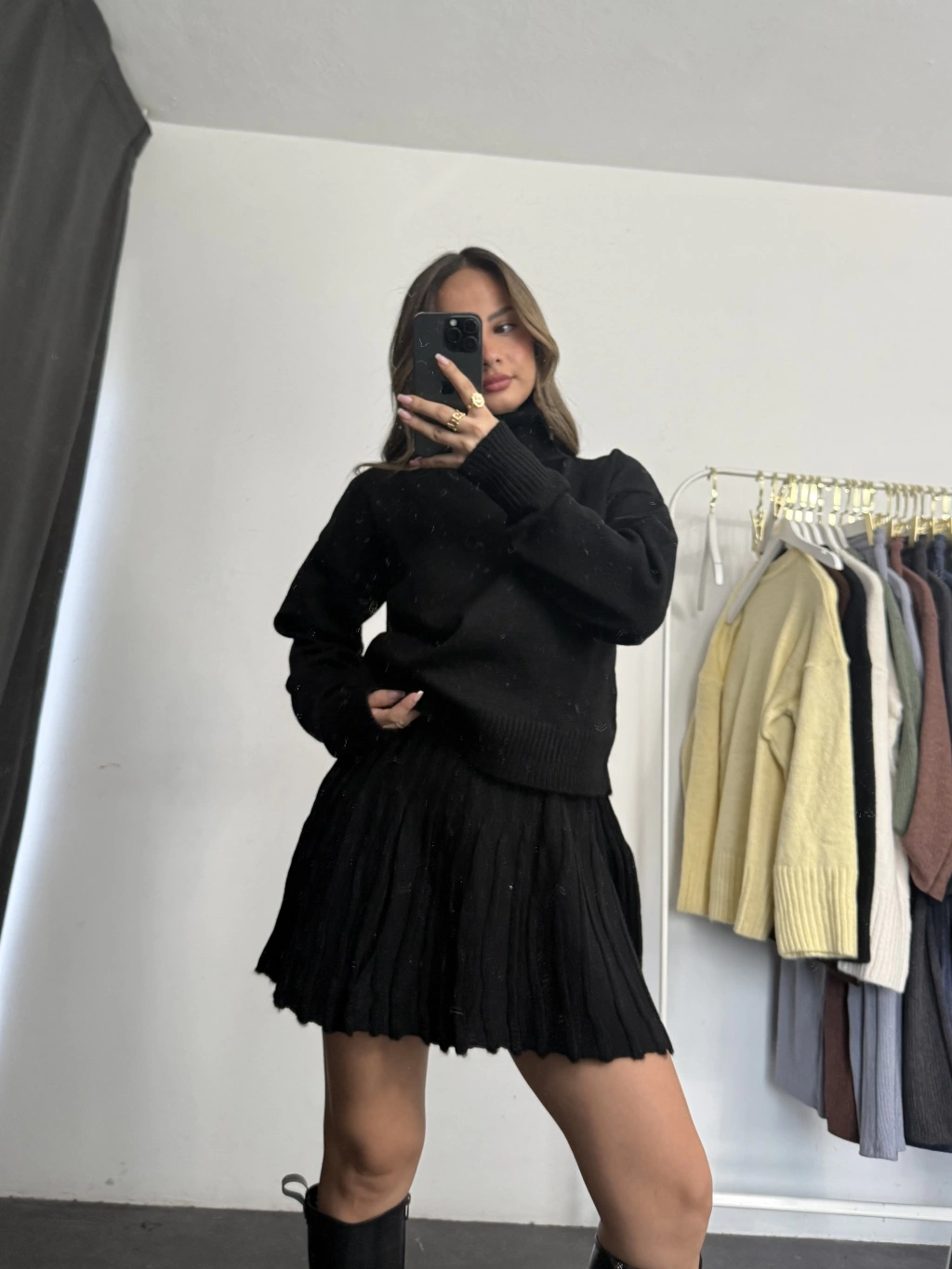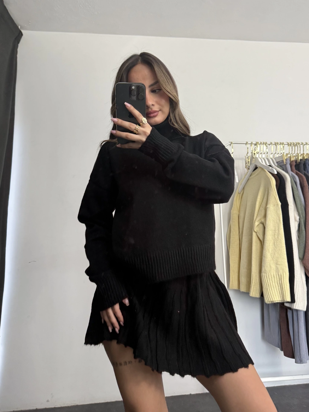 Clara Pileli Triko Takım - Siyah