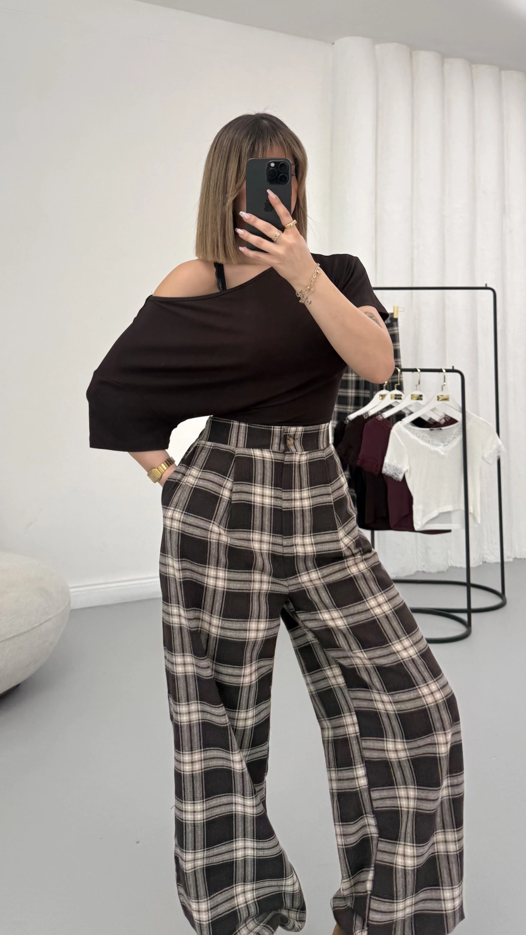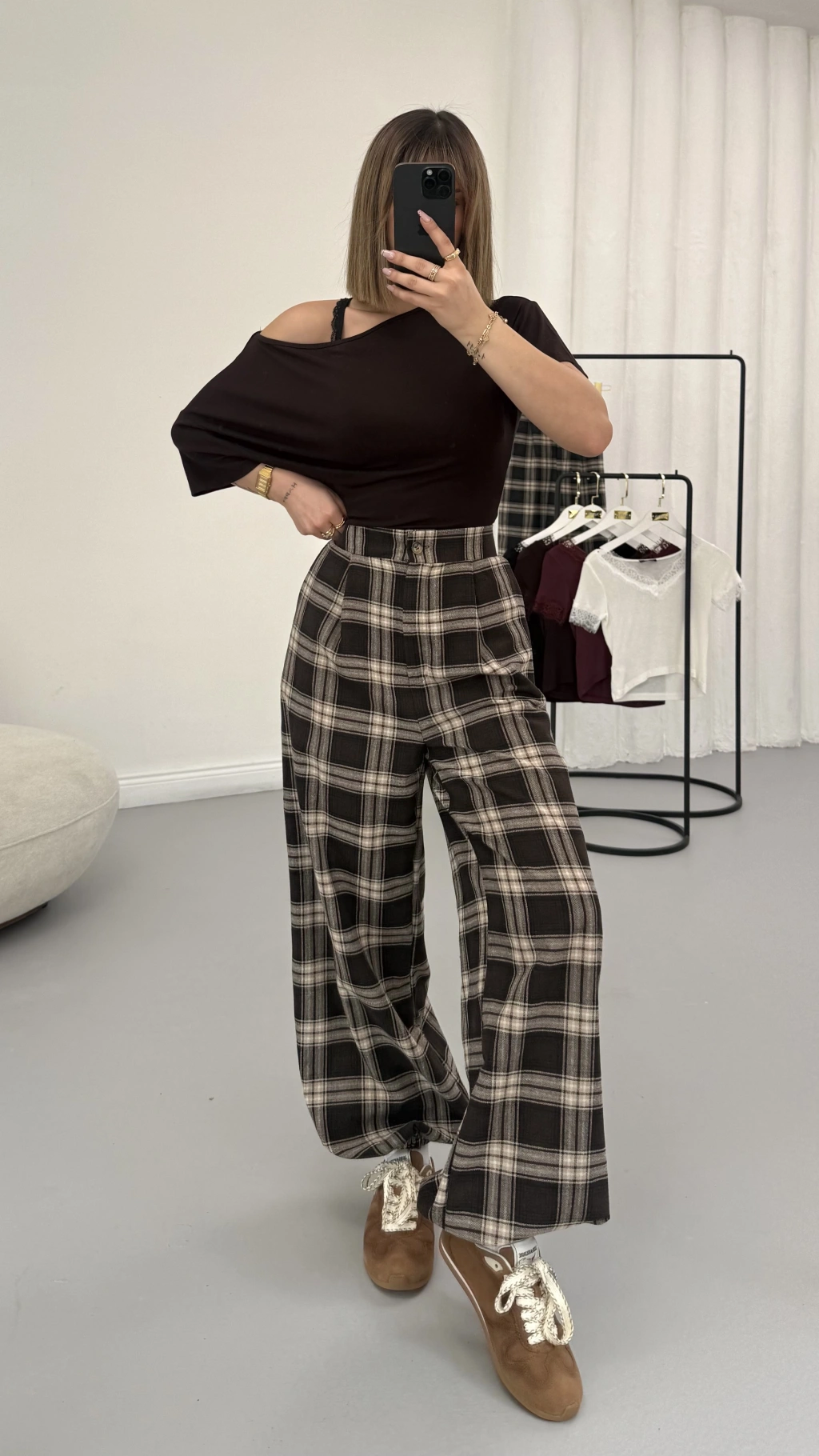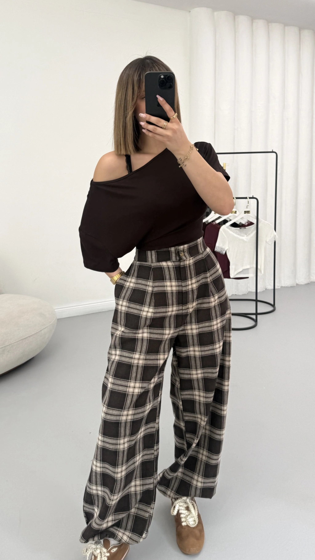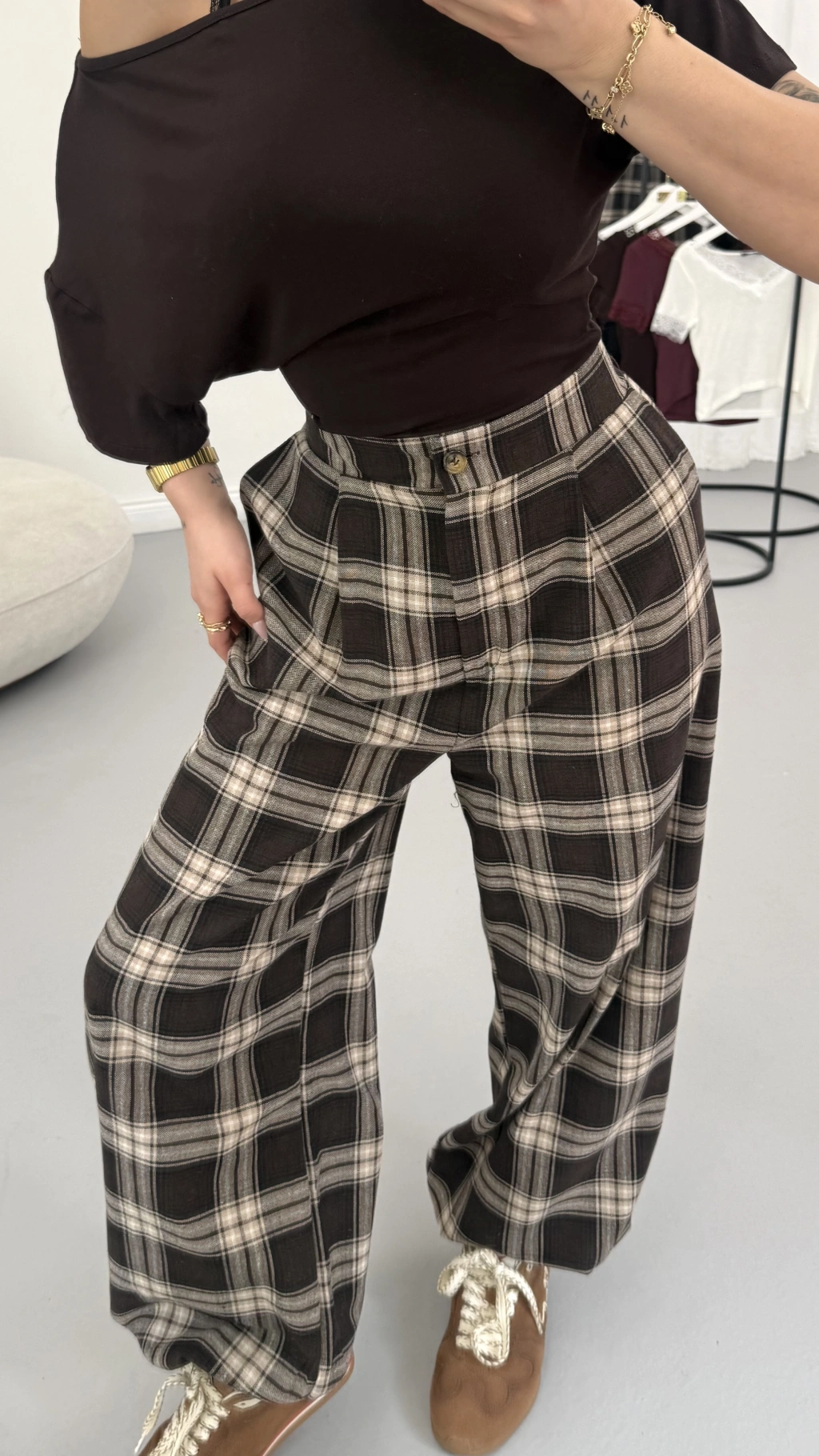 Ekoseli Şalvar Pantolon - Kahve