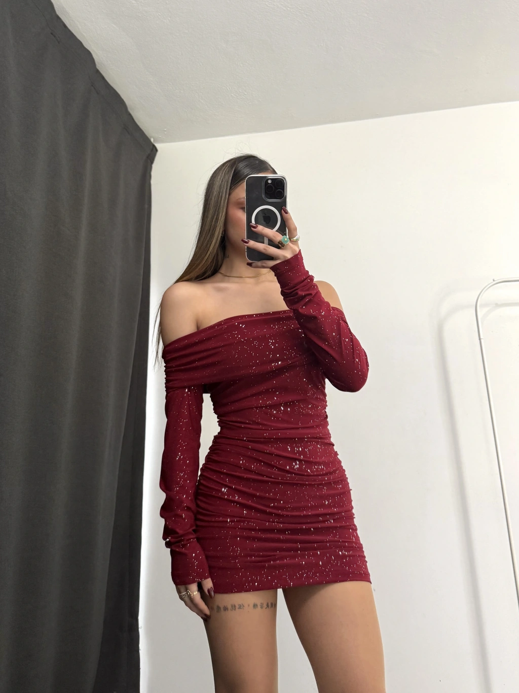 Eloise Simli Madonna Elbise - Bordo