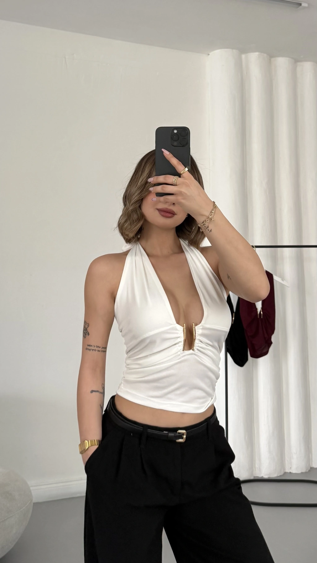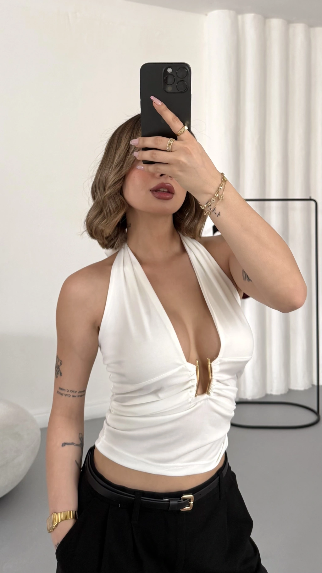 Elsie Tokalı Dekolte Bluz - Beyaz