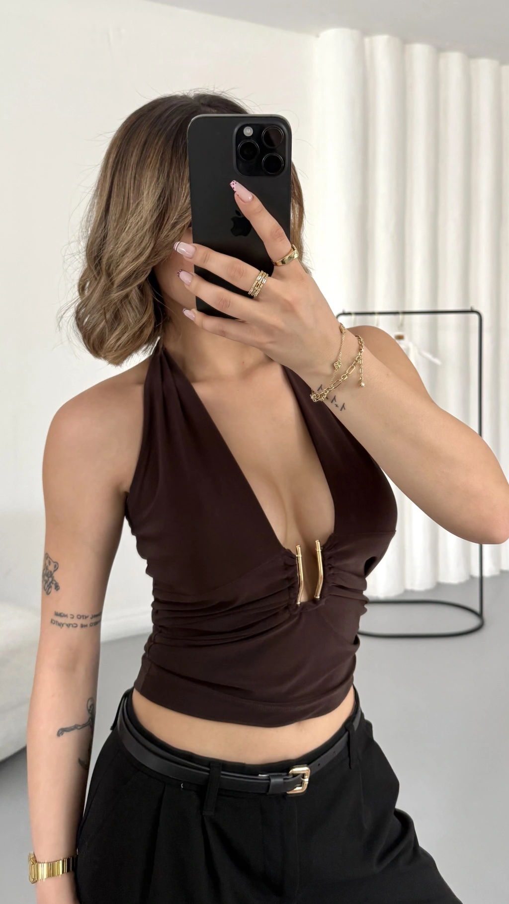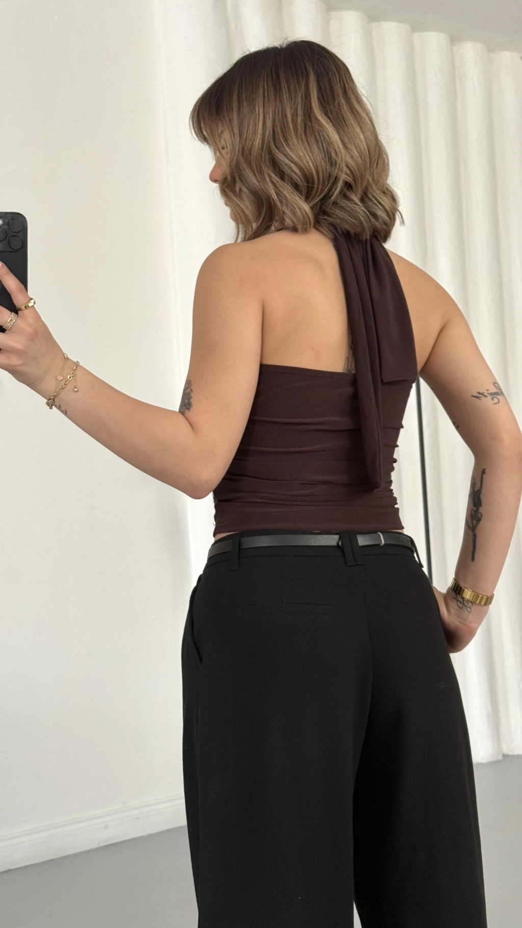 Elsie Tokalı Dekolte Bluz - Kahve