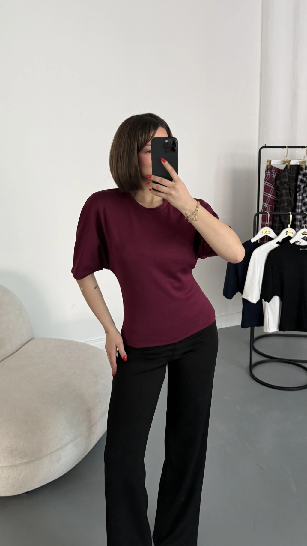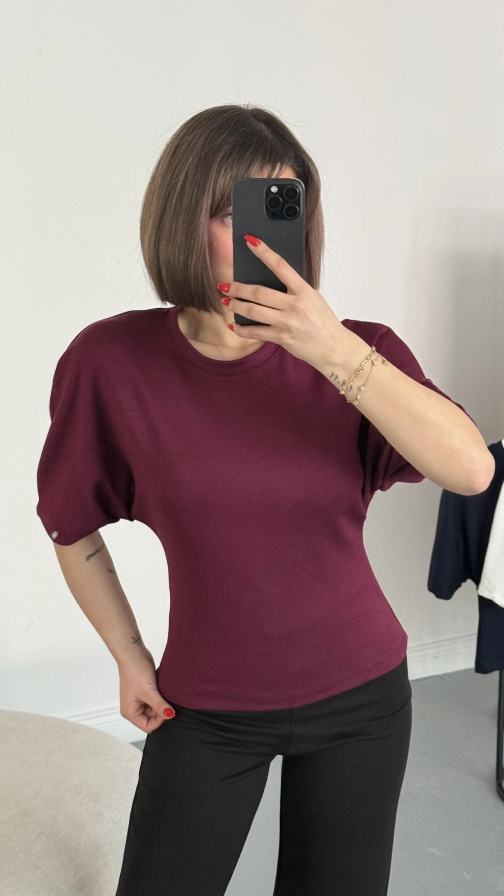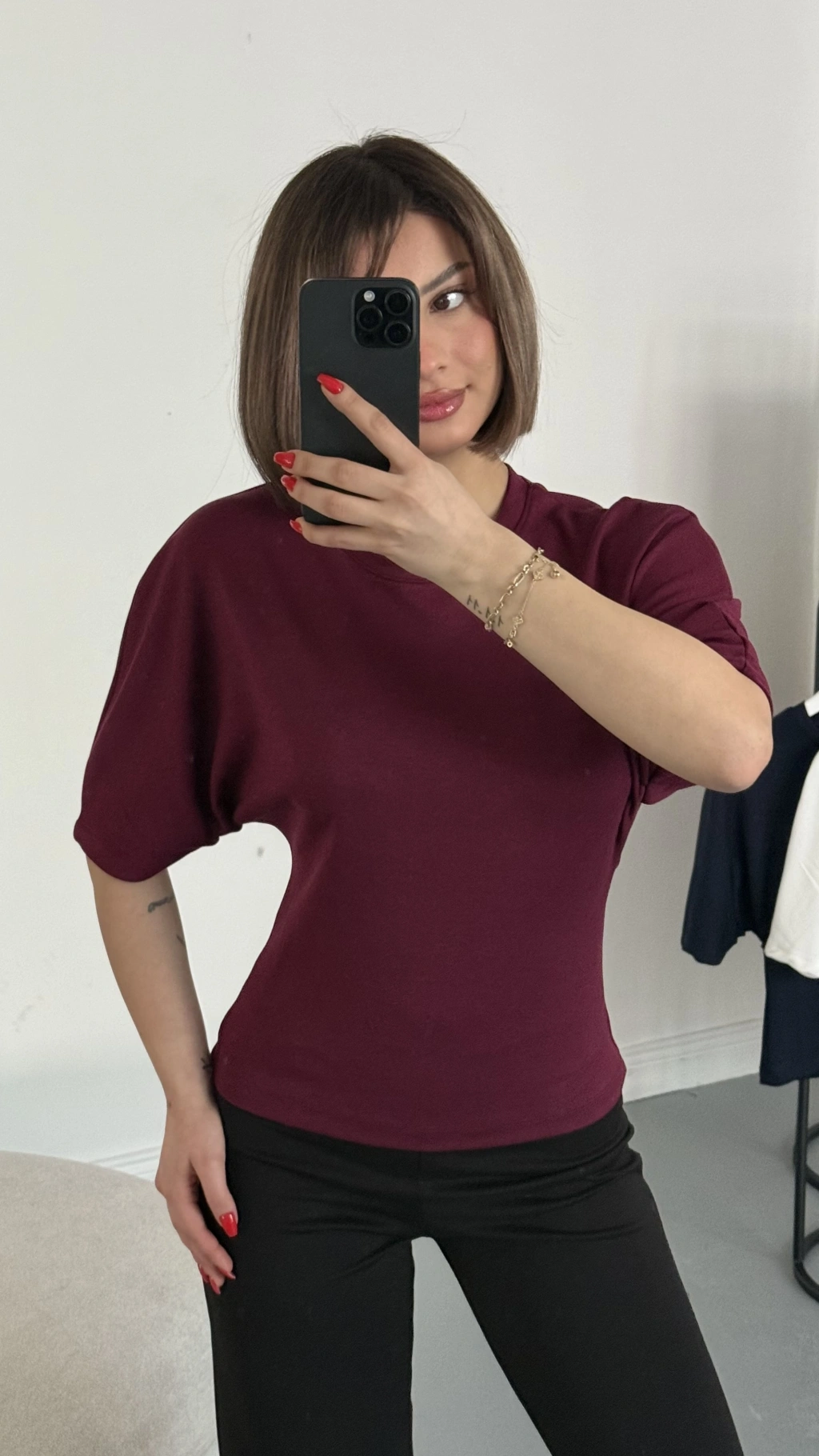Everly Yarasa Kol Bluz - Bordo