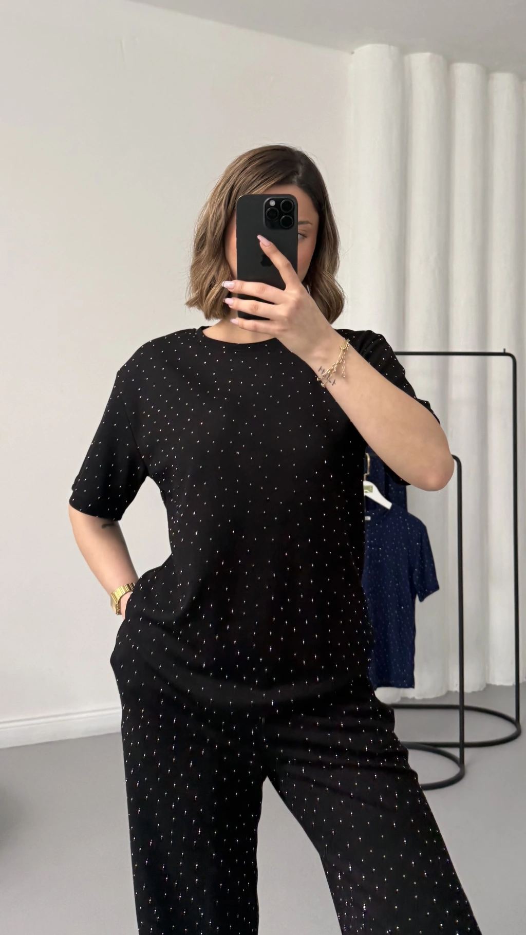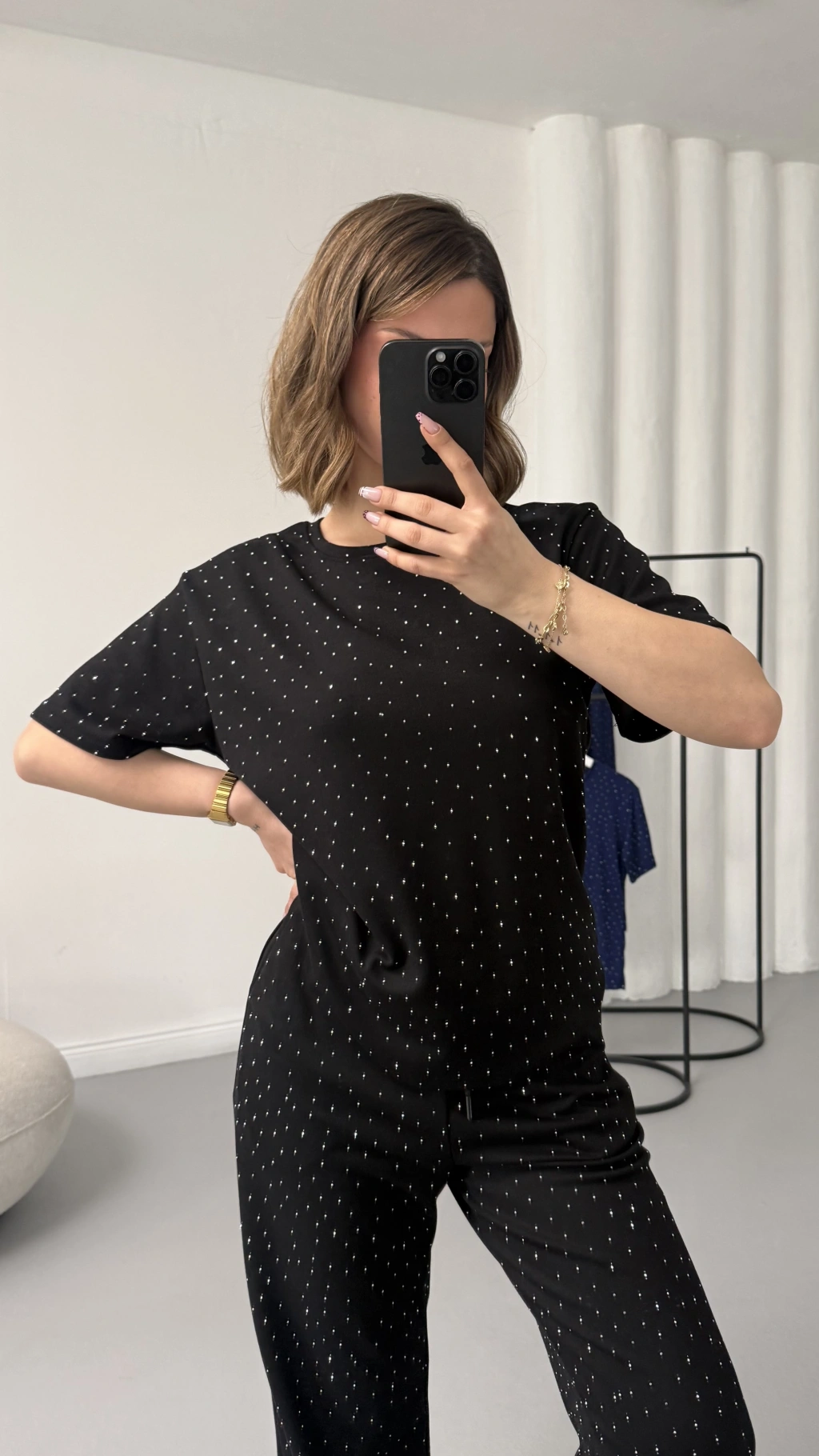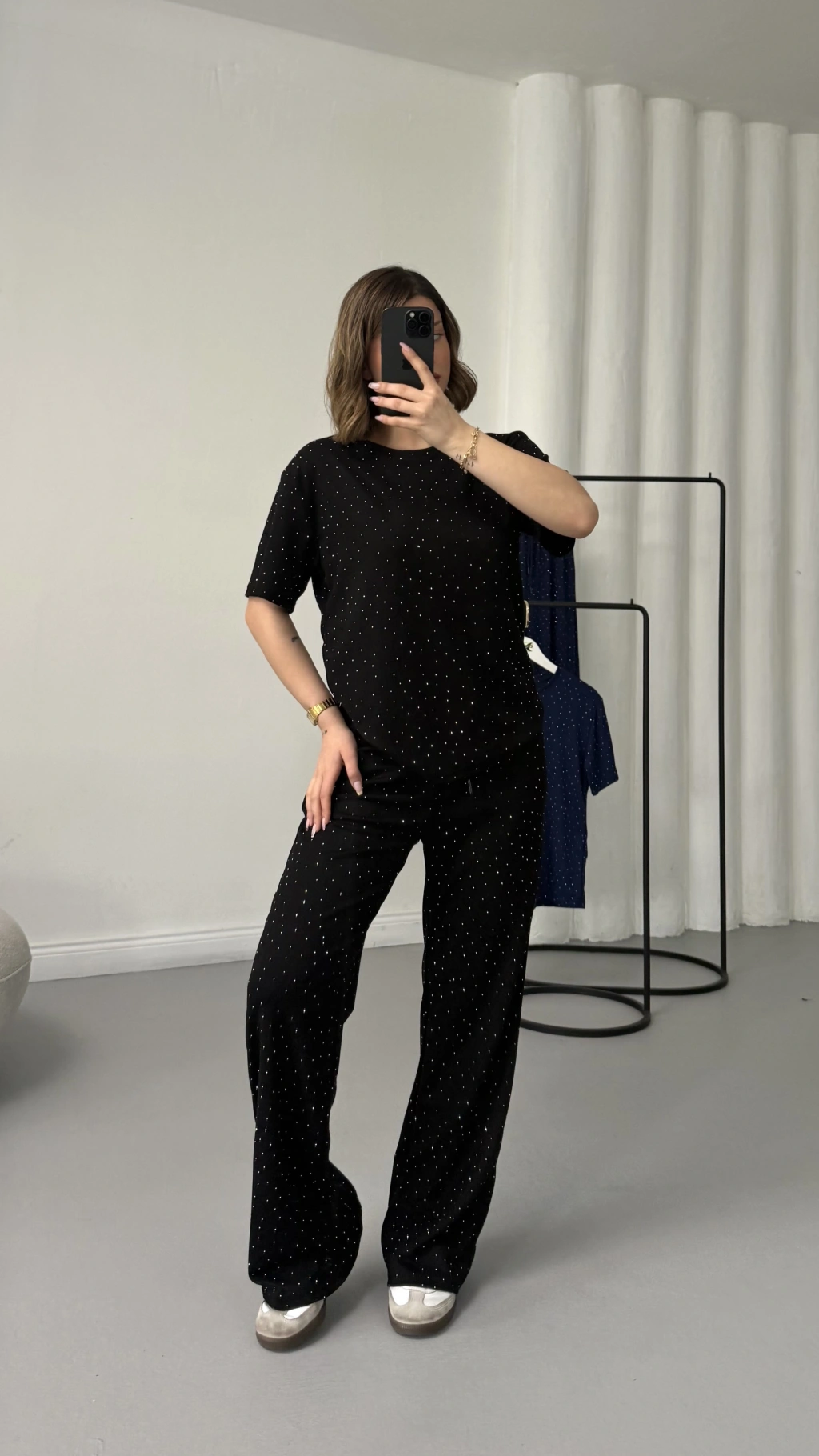 Fiona Taşlı Takım - Siyah