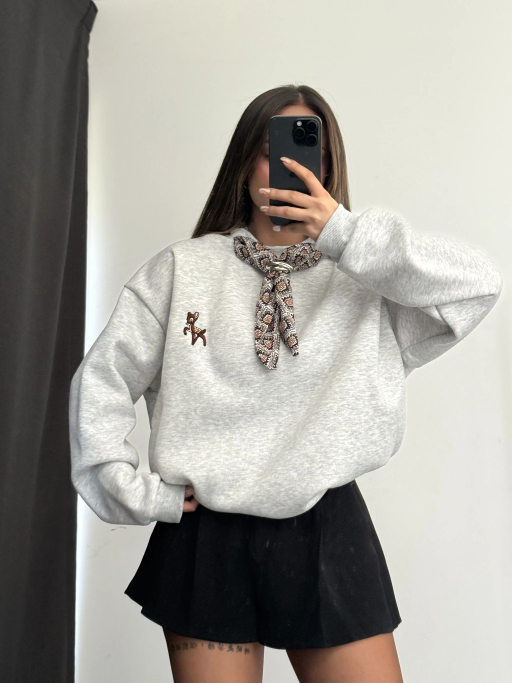 • Nona Butik'un özel markası olan Gri Şardonlu Sweatshirt, premium kalitesiyle öne çıkıyor.