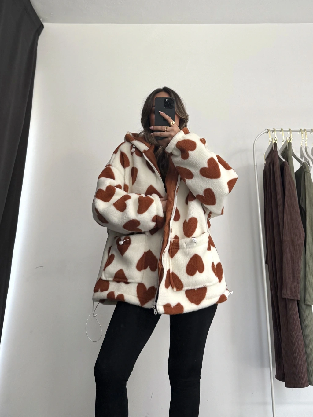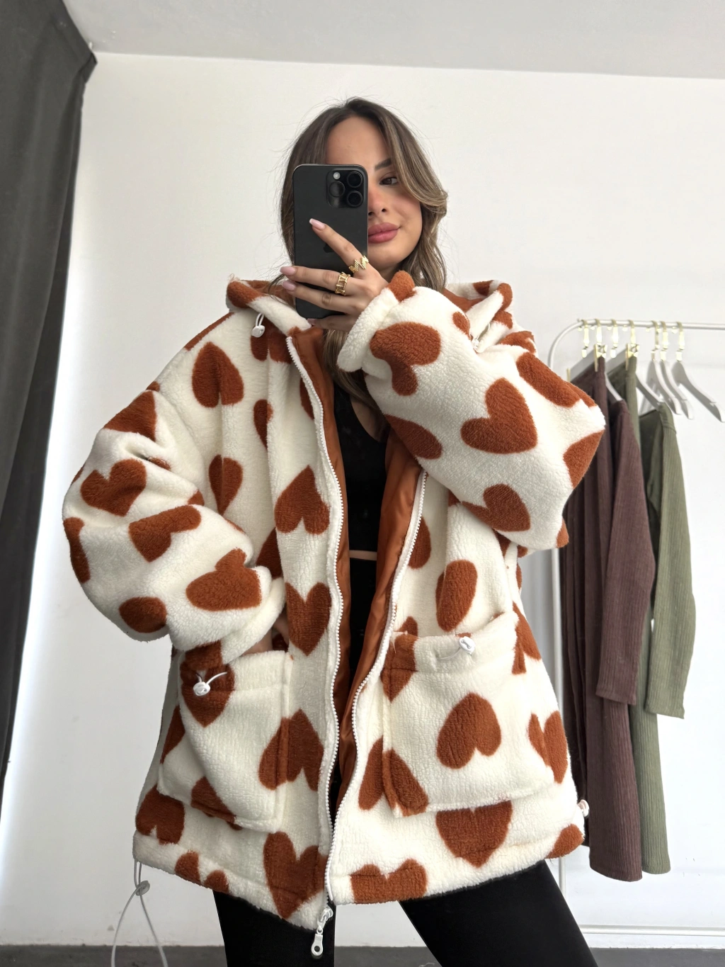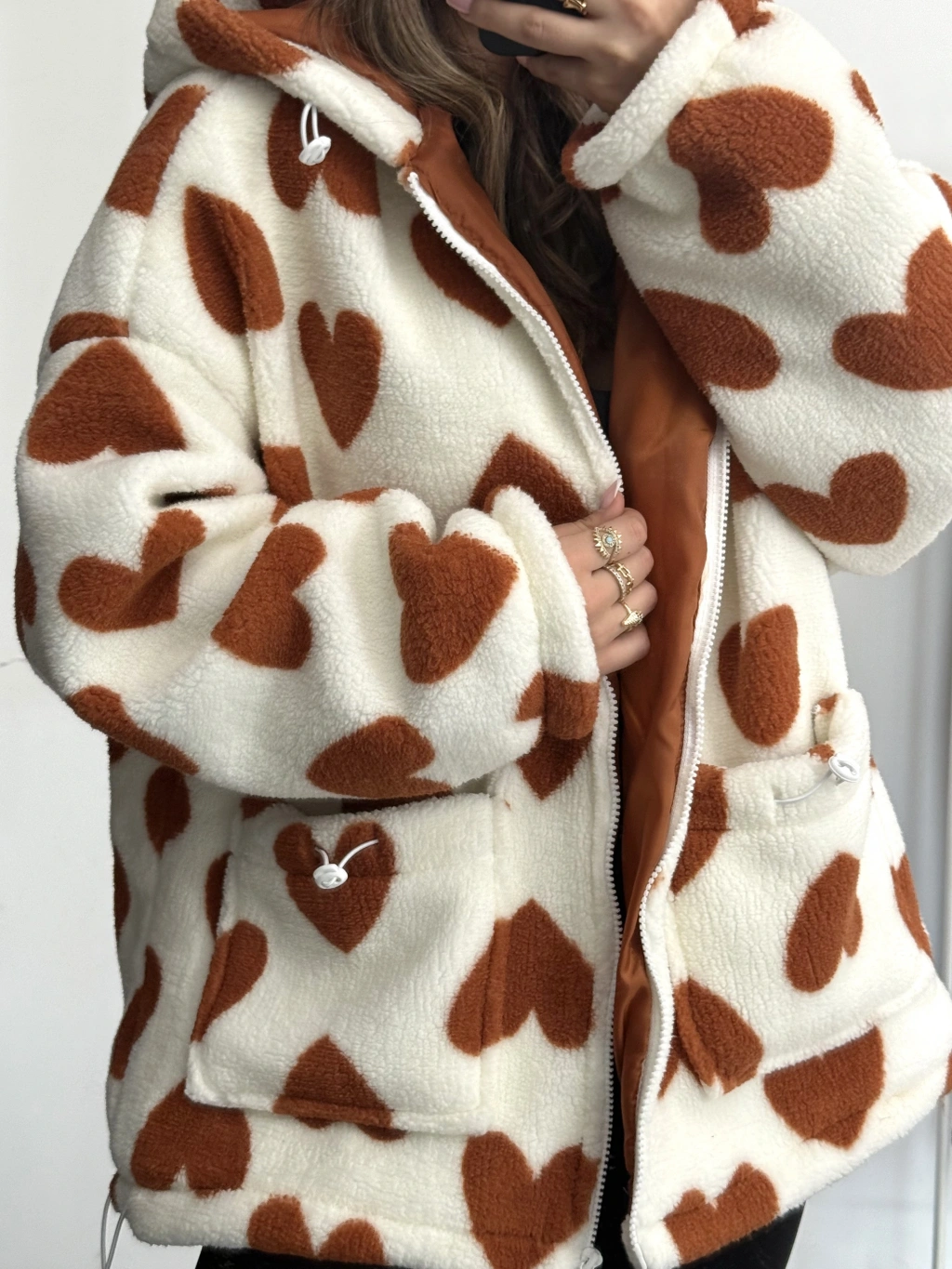 Heart Peluş Mont - Kahve