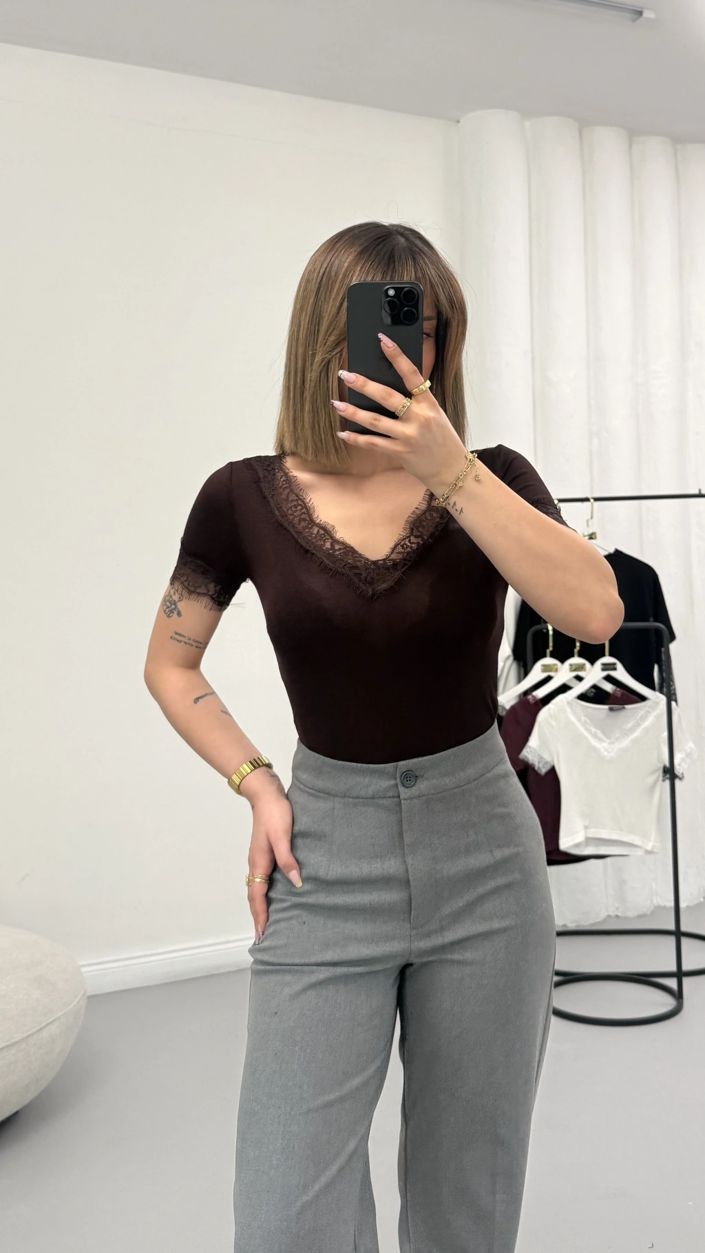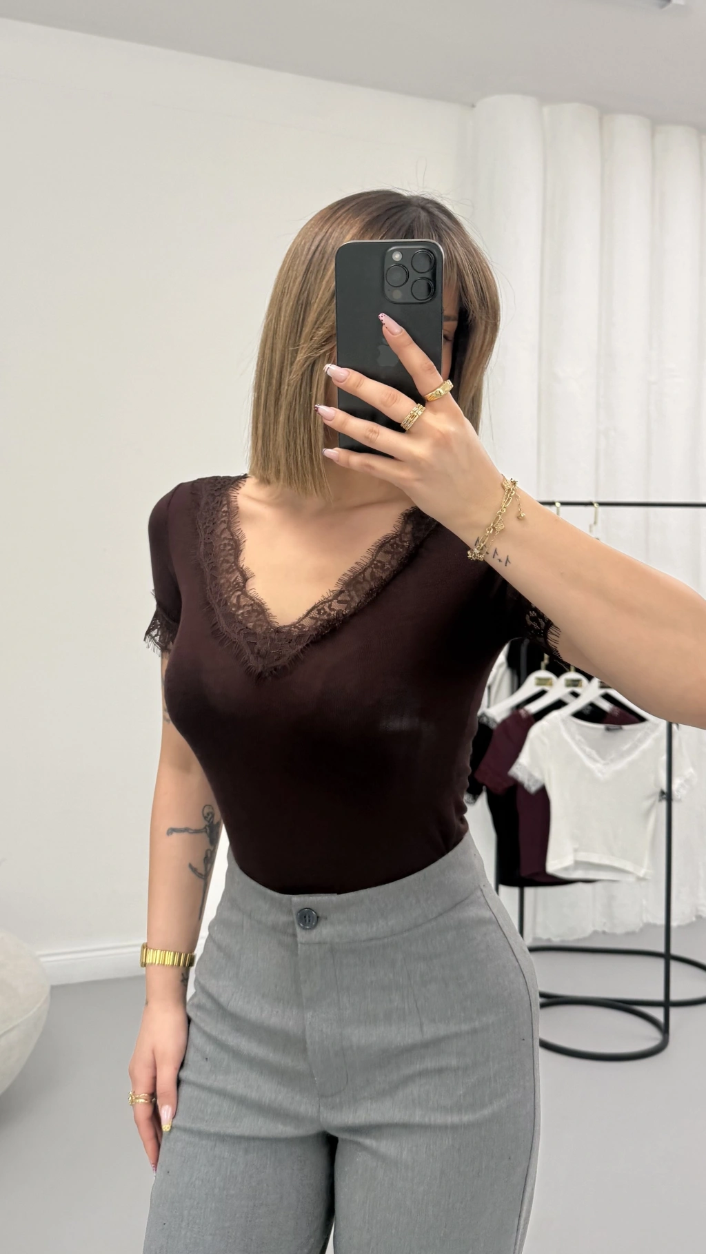 Ürün : Dantel Detaylı Kısa Kollu Crop