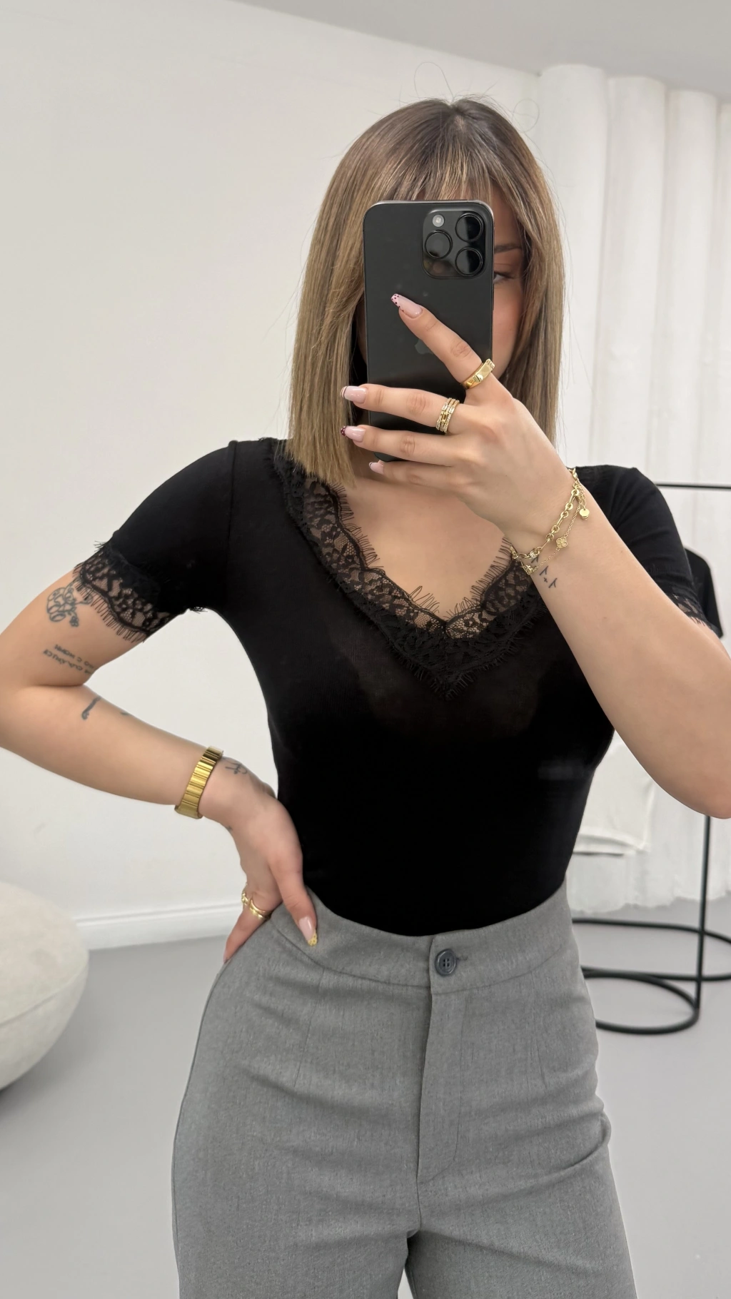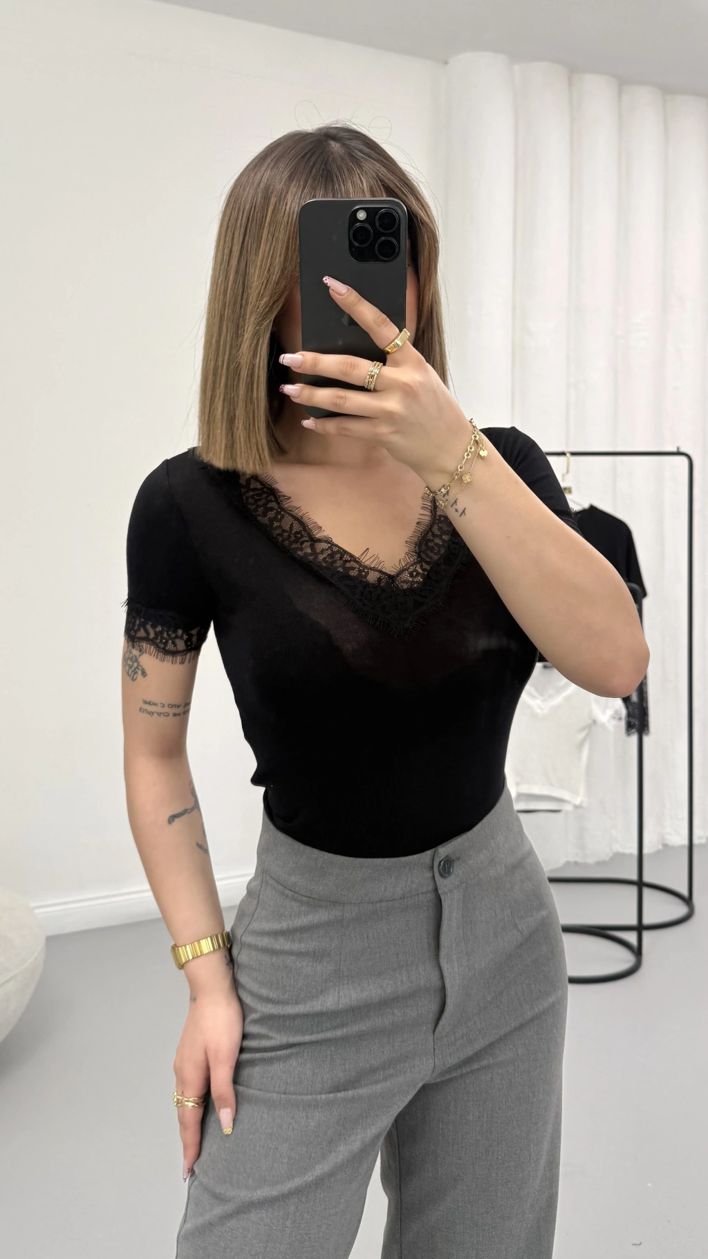 Ürün : Dantel Detaylı Kısa Kollu Crop