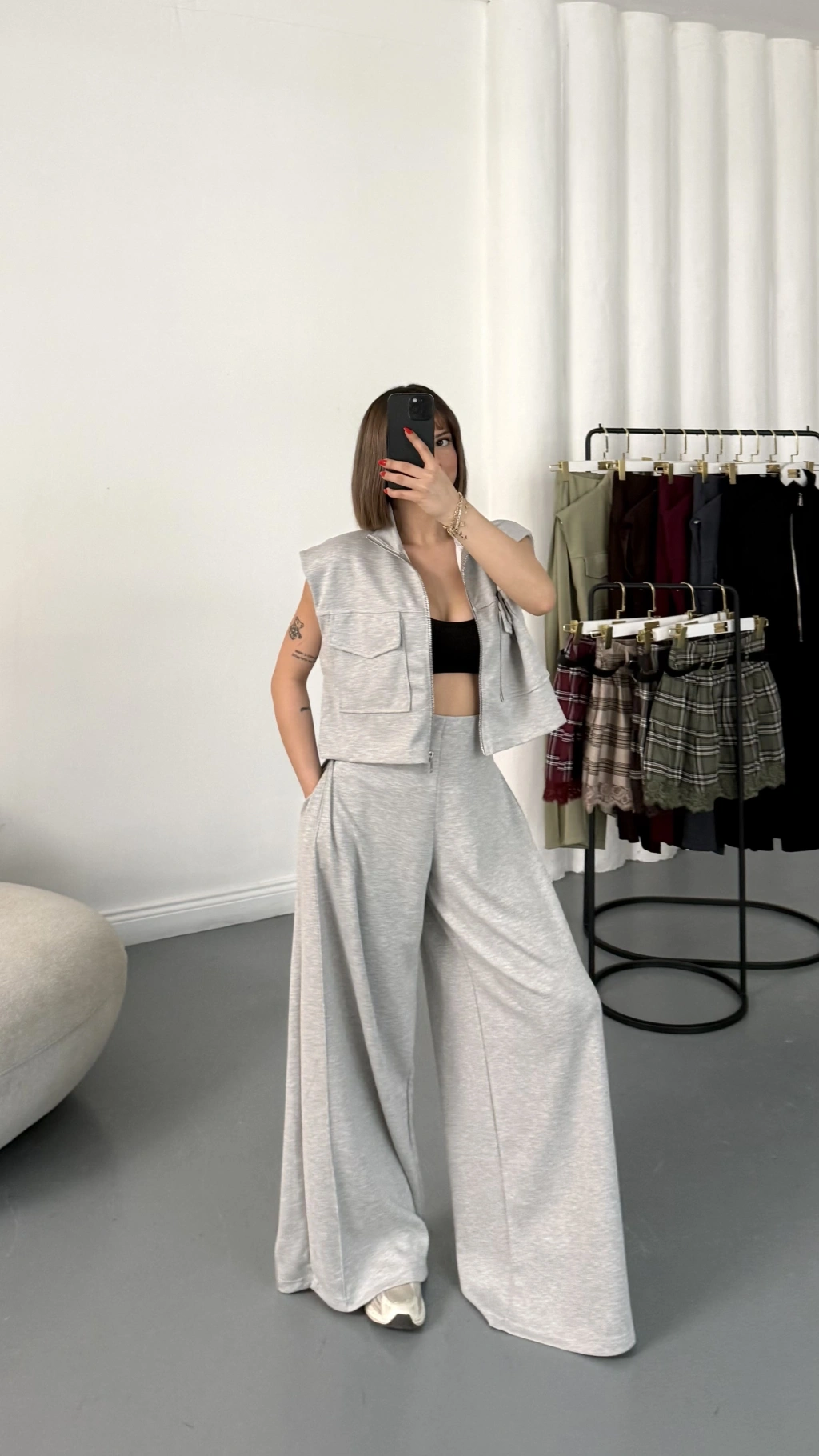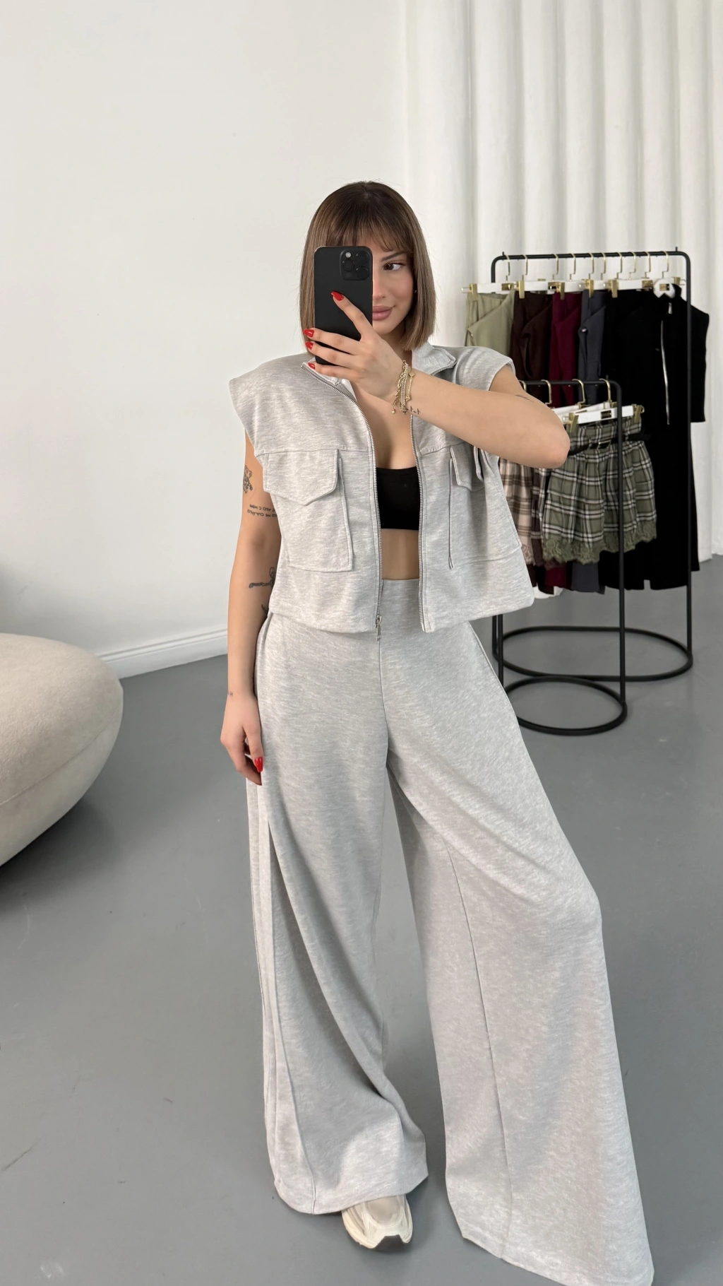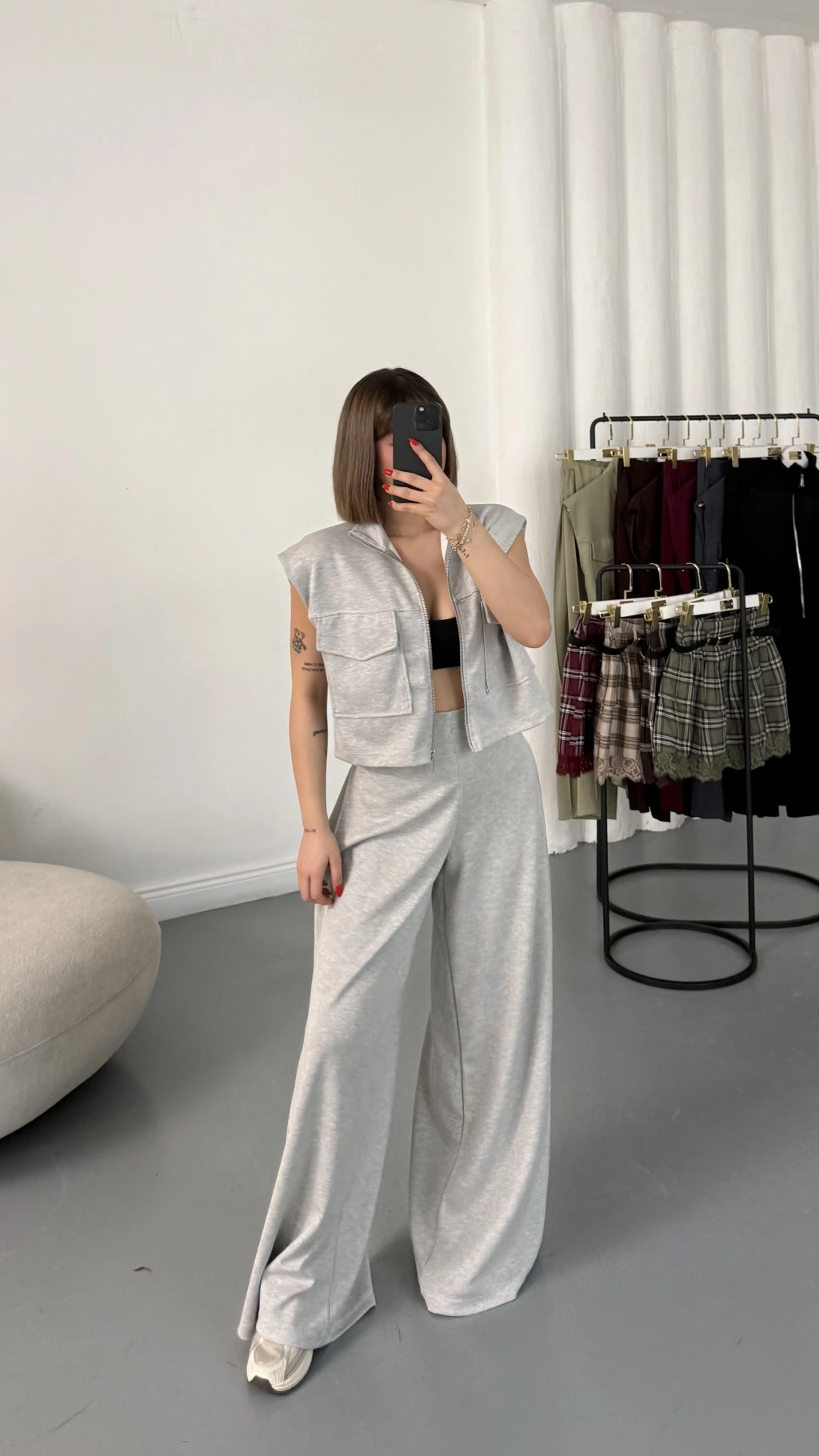 Isabel Yelekli Eşofman Takım - Gri Melanj