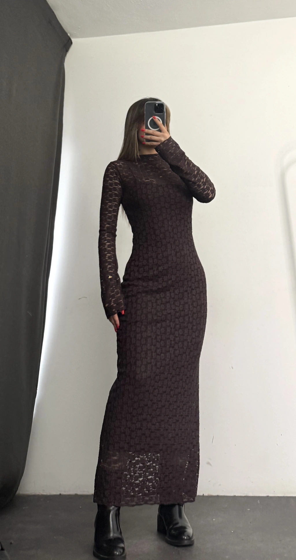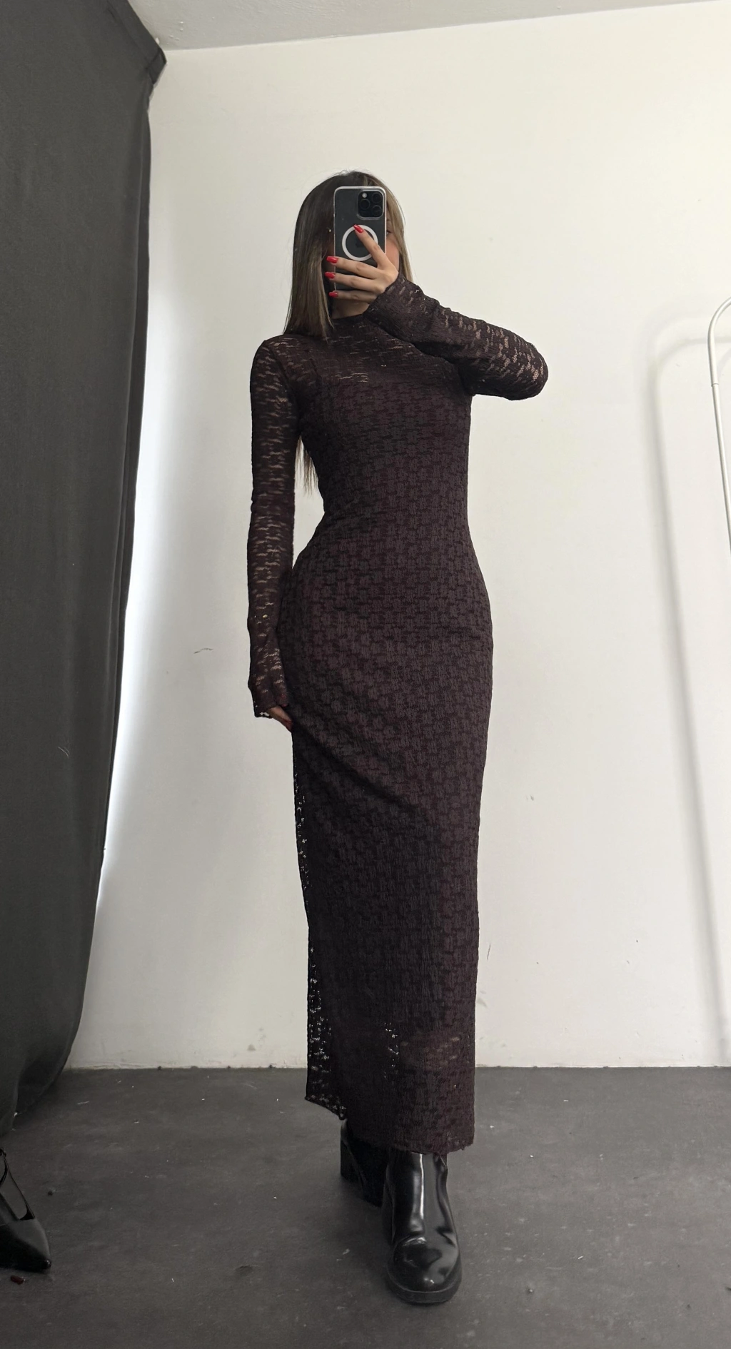 Joselina Dantel Elbise - Kahve