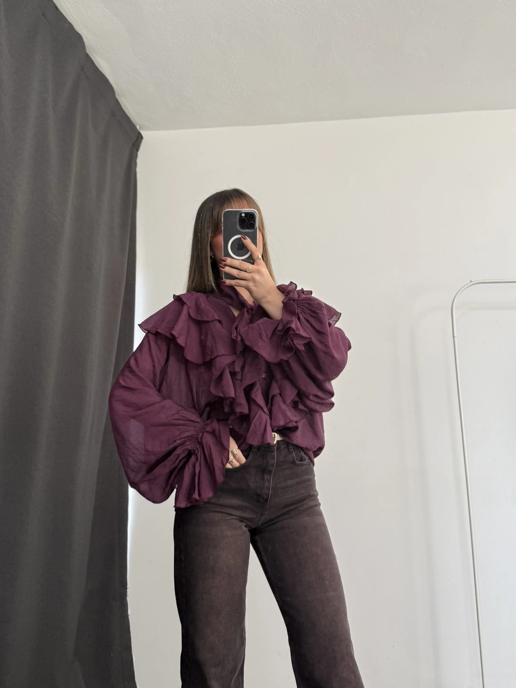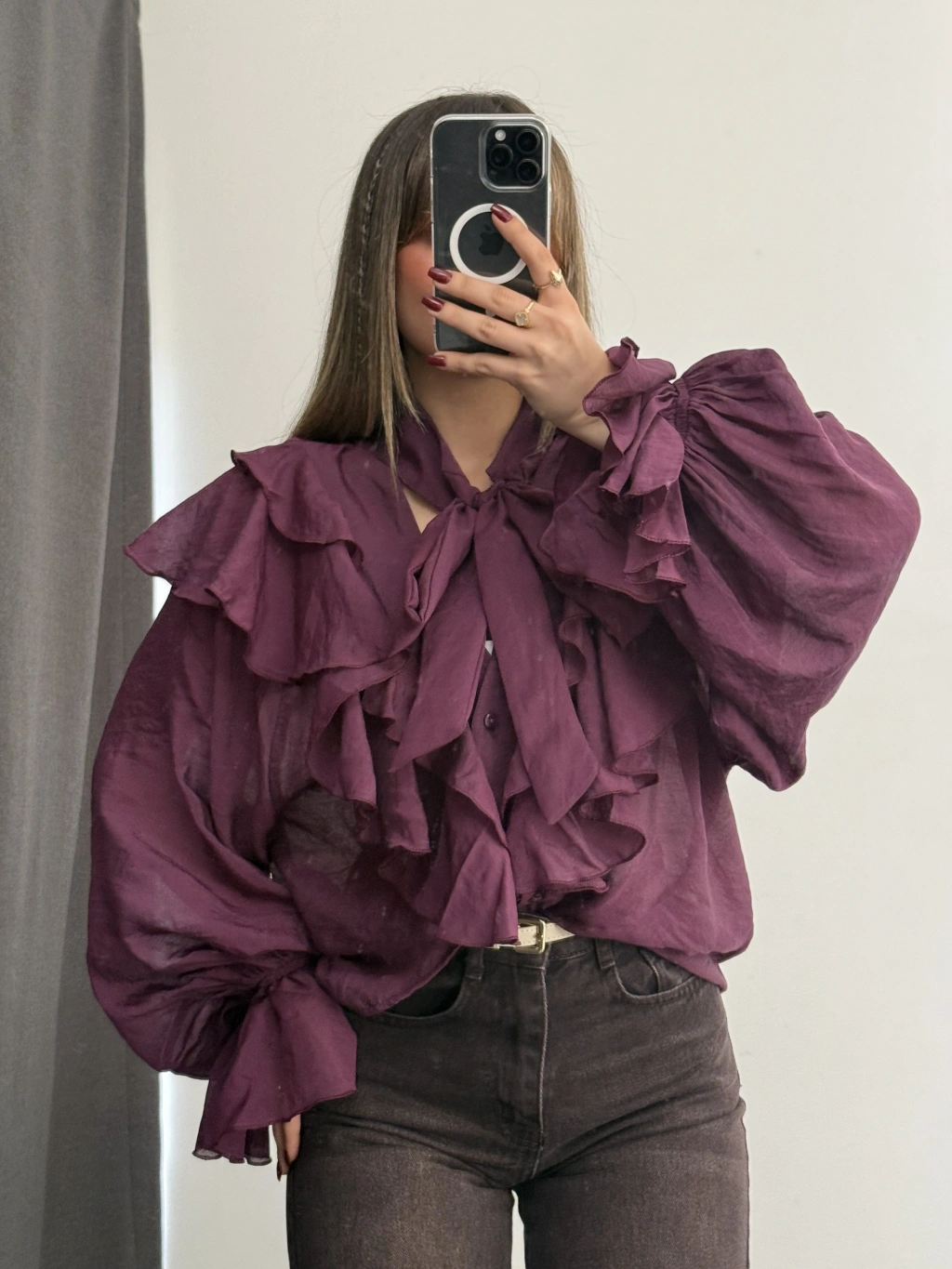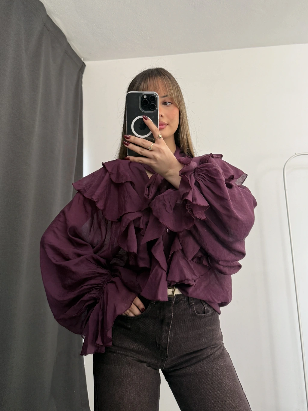 July Volanlı Bluz - Mor