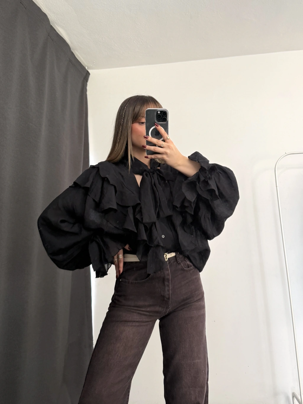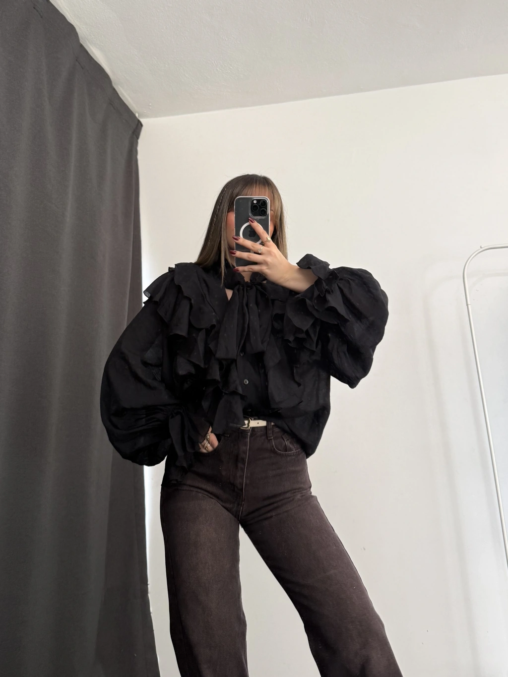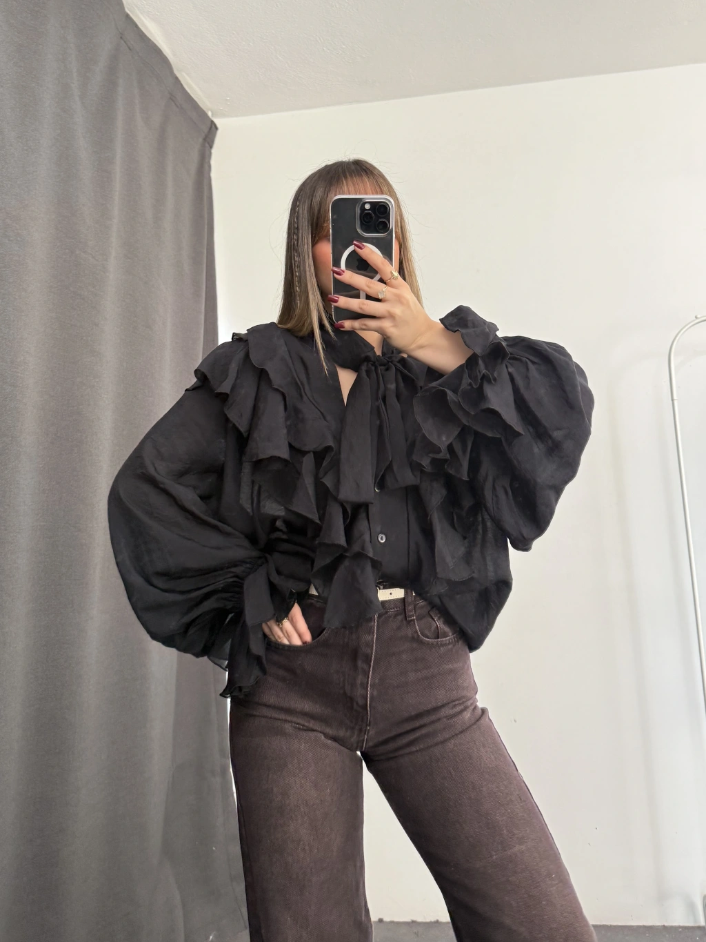 July Volanlı Bluz - Siyah