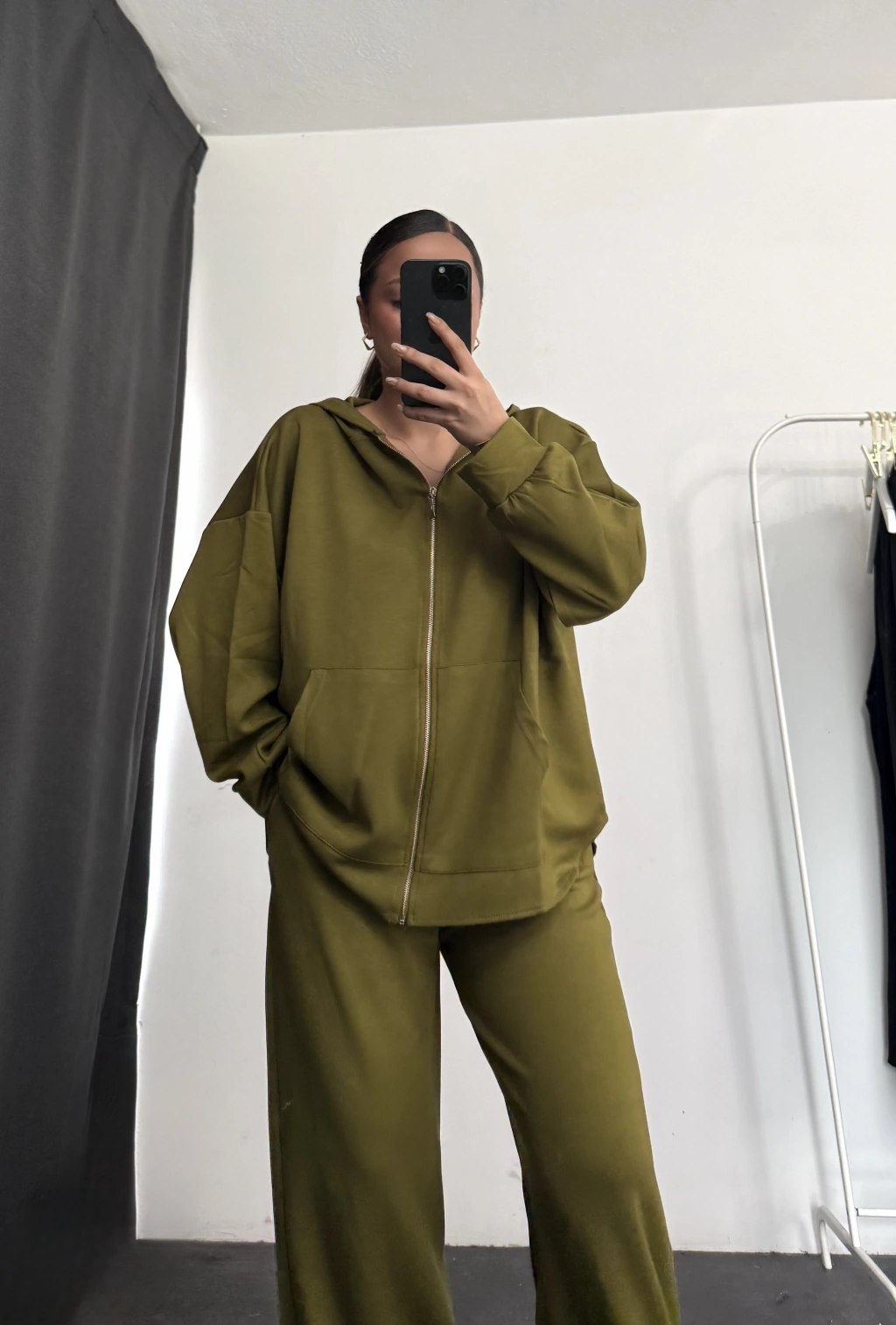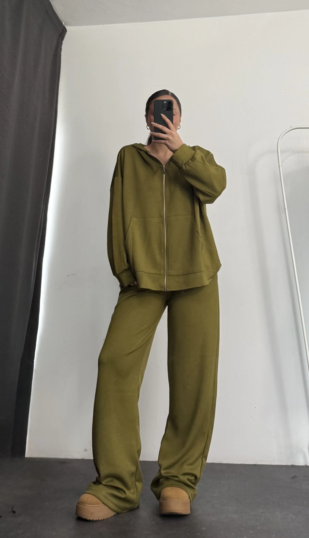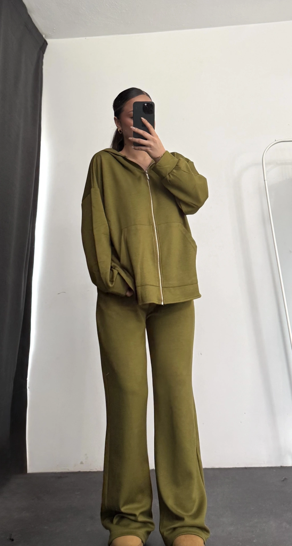 Kapüşonlu Tunik Takım - Yağ Yeşili