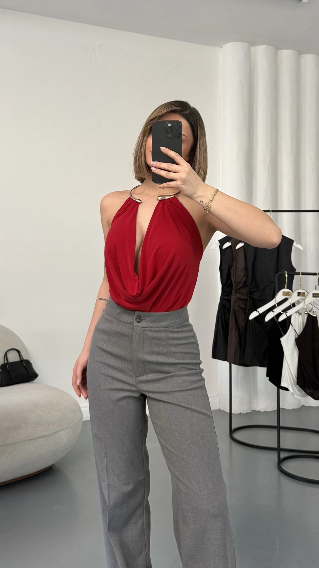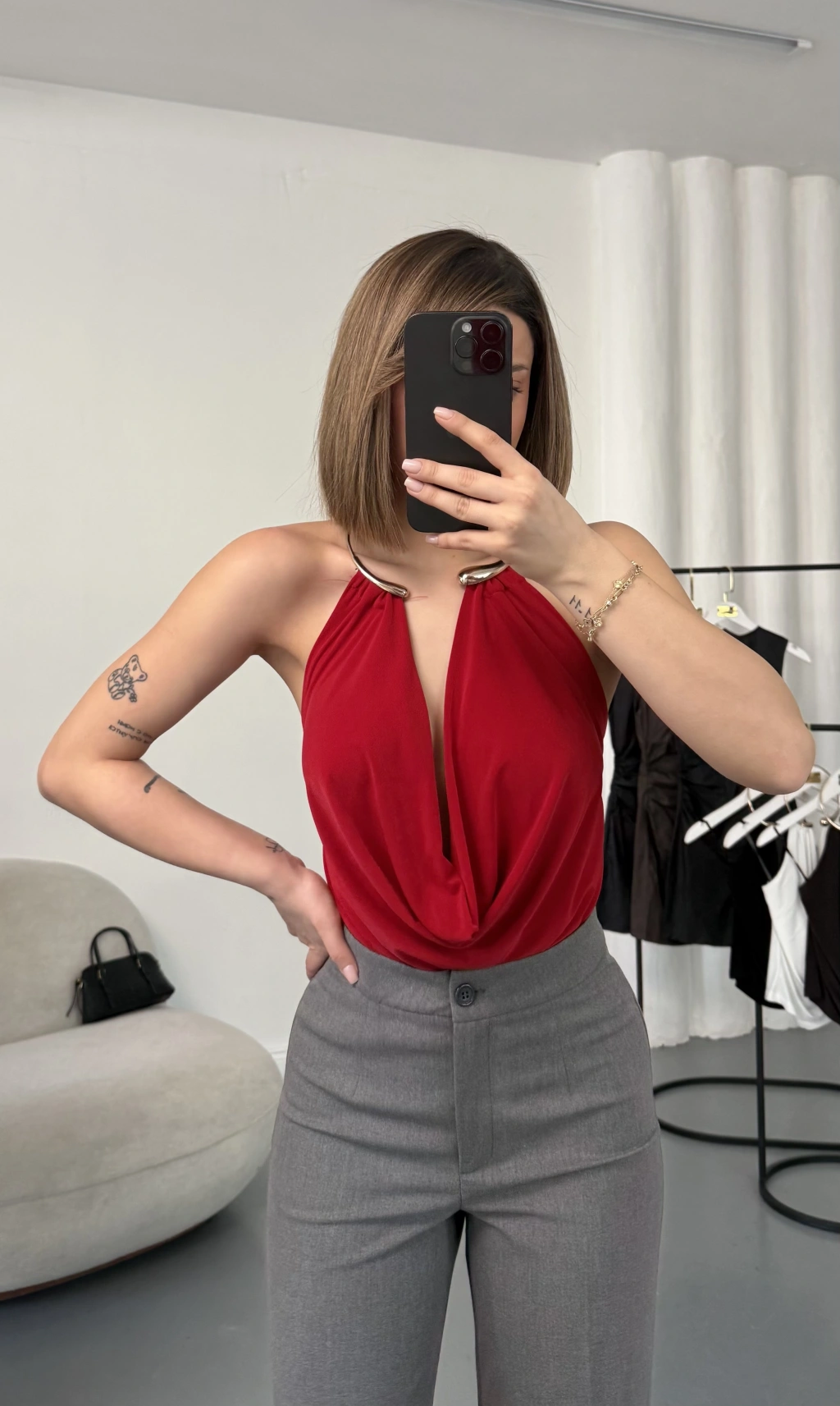 Katia Aksesuar Yaka Bluz - Kırmızı