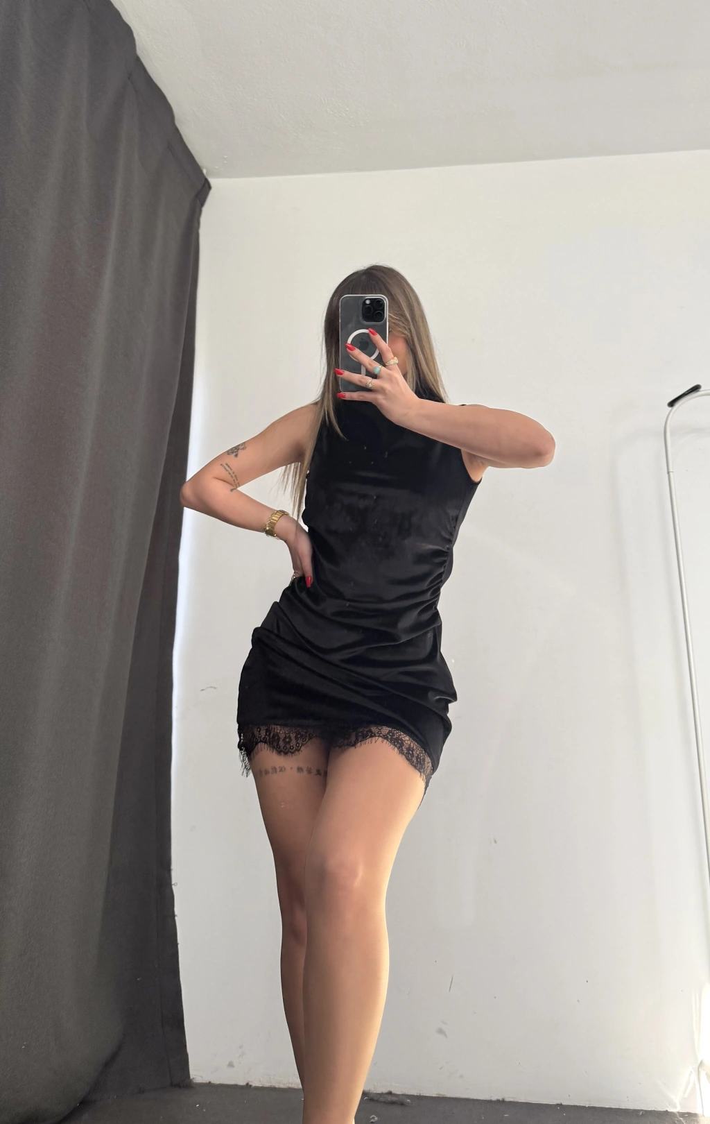 Kylie Kadife Elbise - Siyah