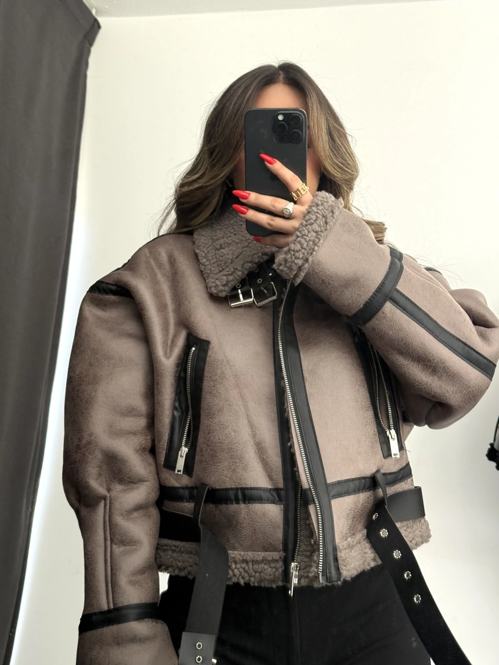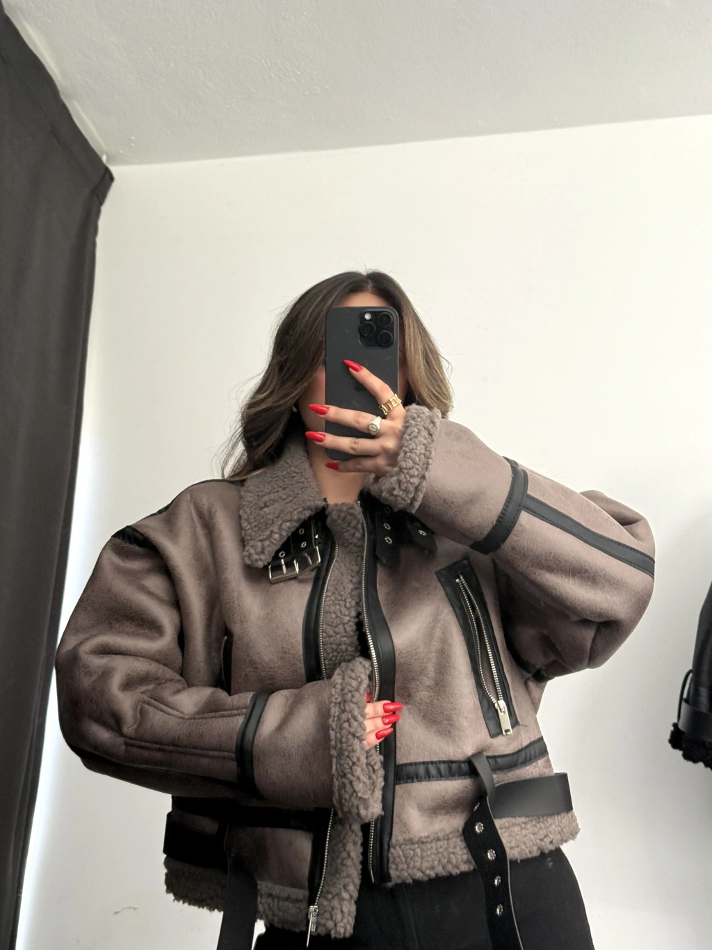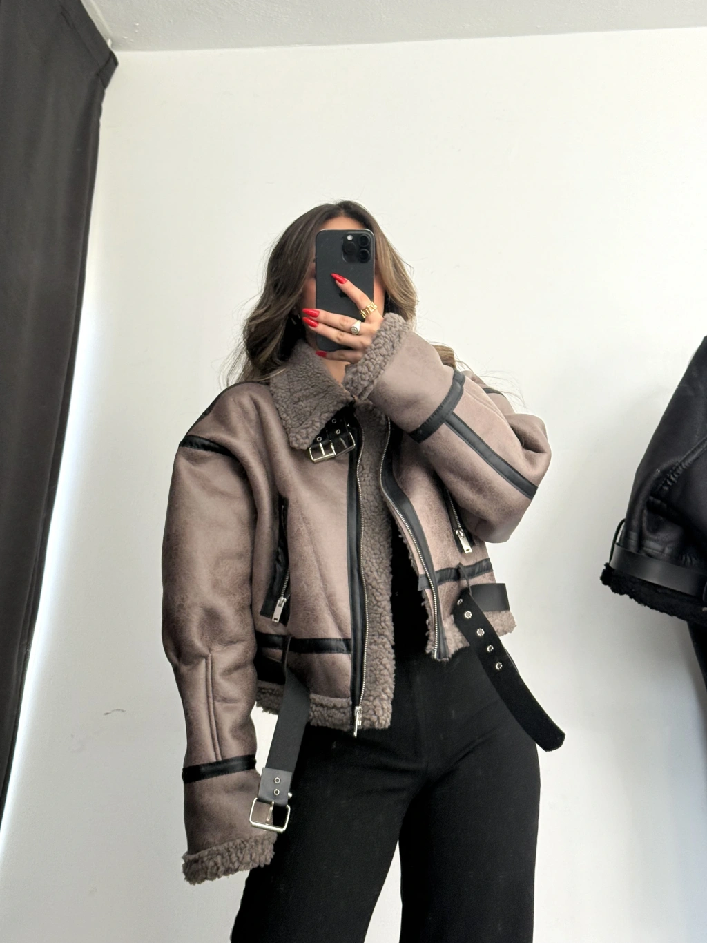 • Nona Butik Siyah Lamine Kürklü Ceket, şıklığı ve sıcaklığı bir araya getiriyor.