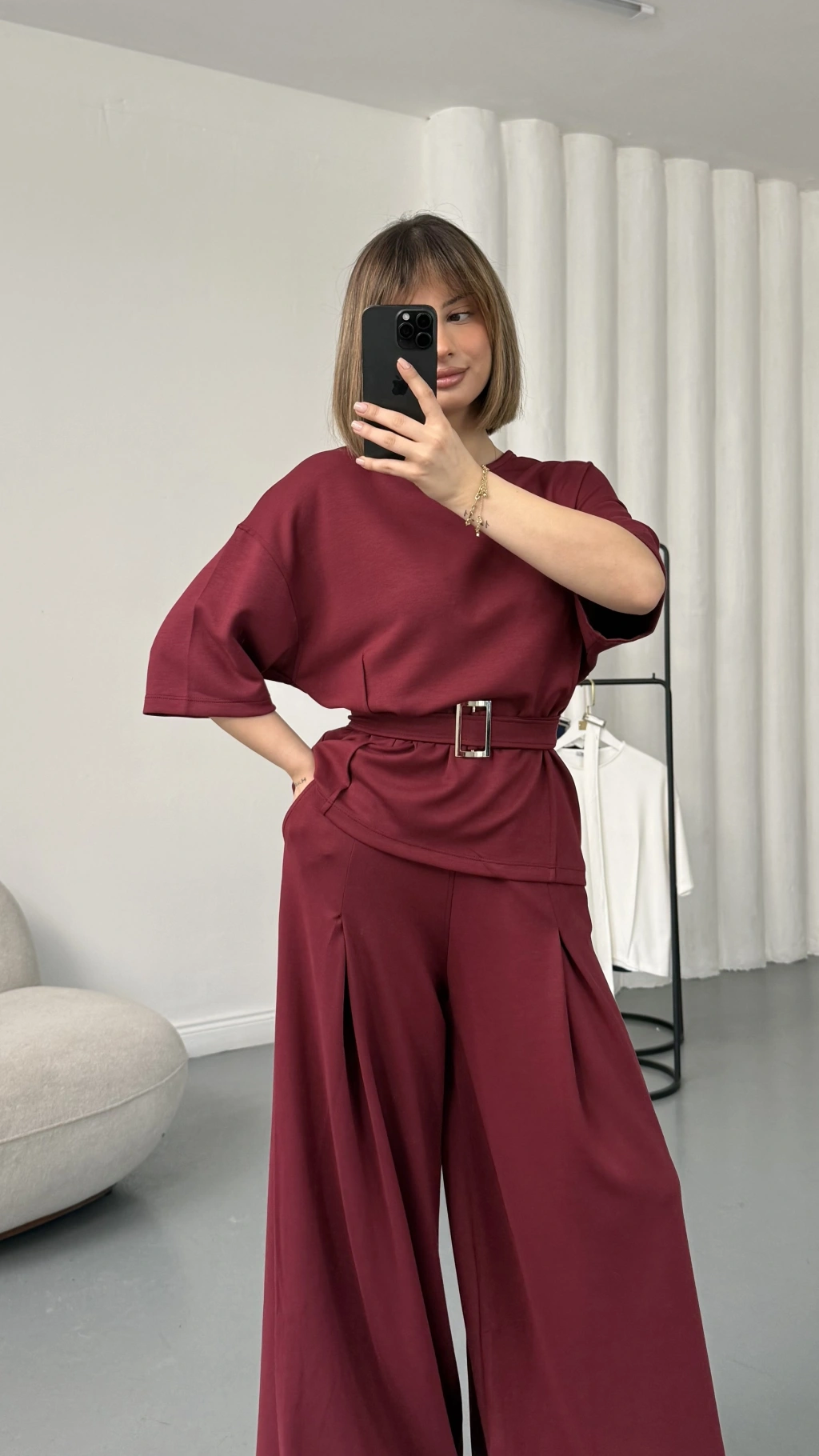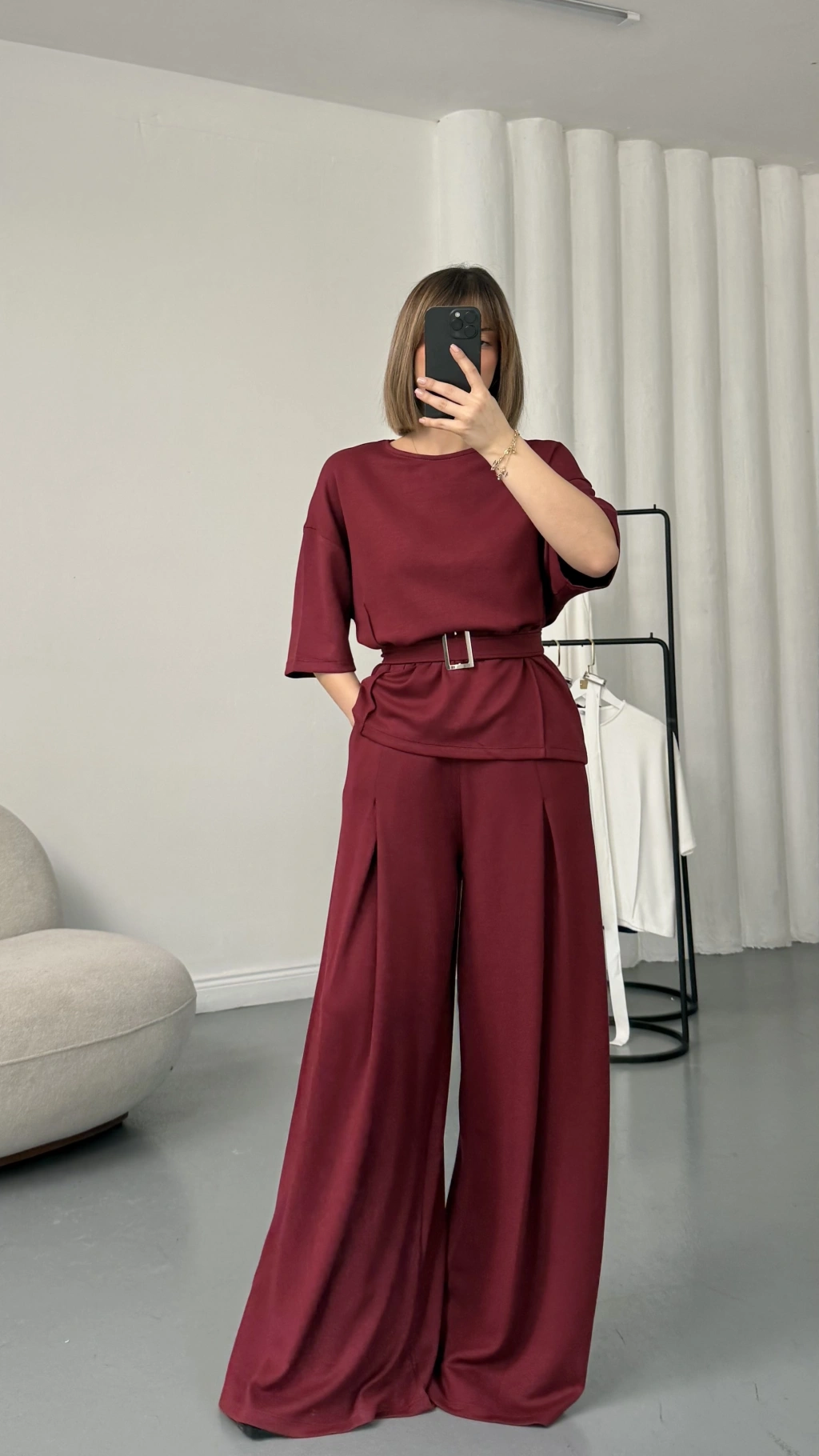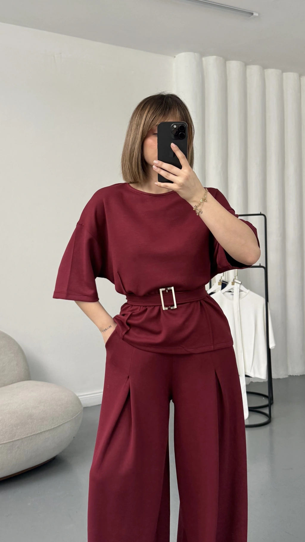 Laure Kuşaklı Takım - Bordo