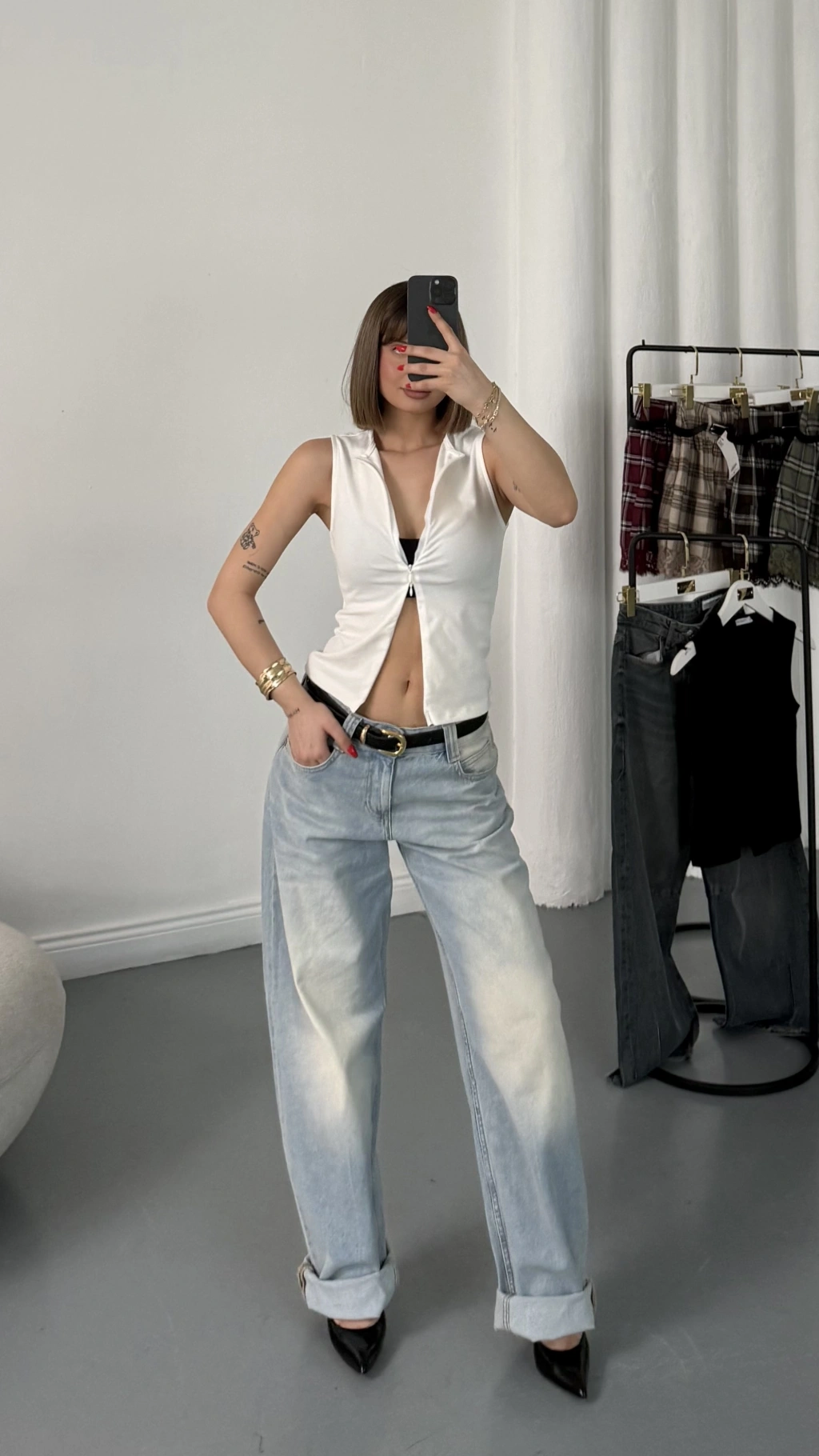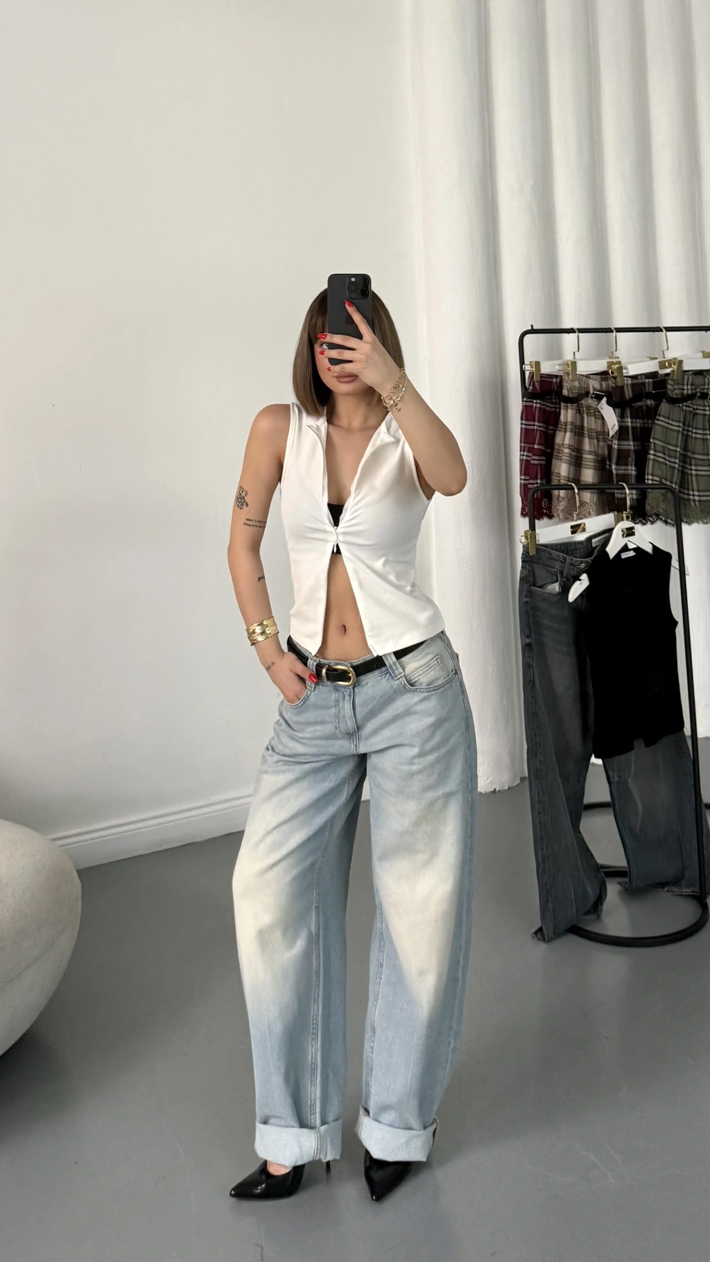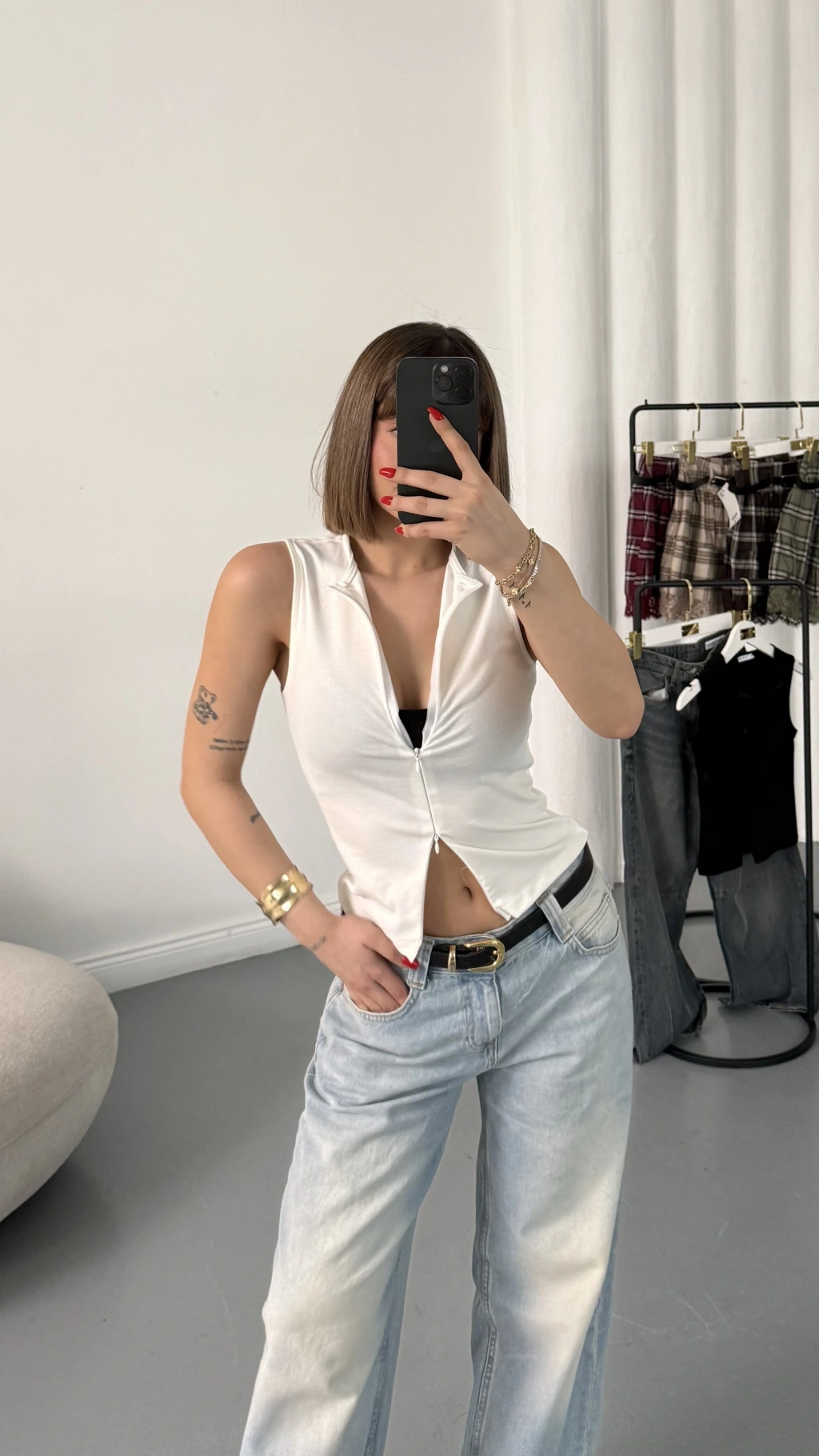 Lea Kolsuz Fermuarlı Bluz - Beyaz
