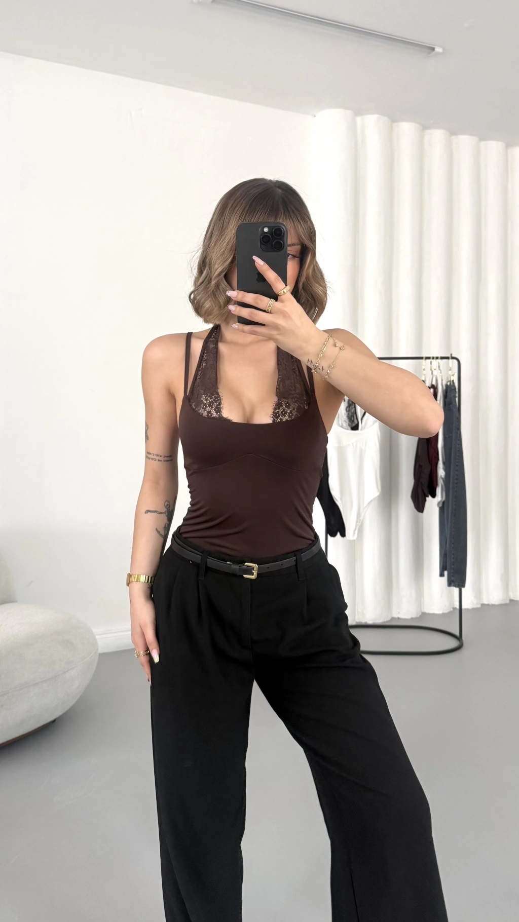 Lilah Dantel Detay Bodysuit - Kahve