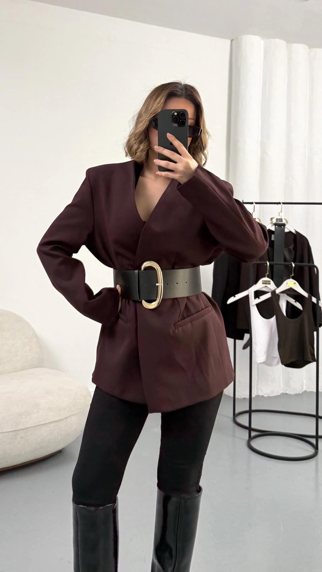 Lilith Kemerli Blazer Ceket - Bordo
