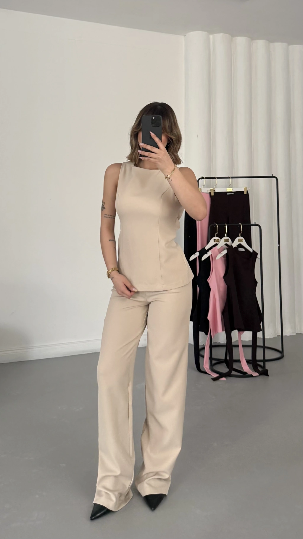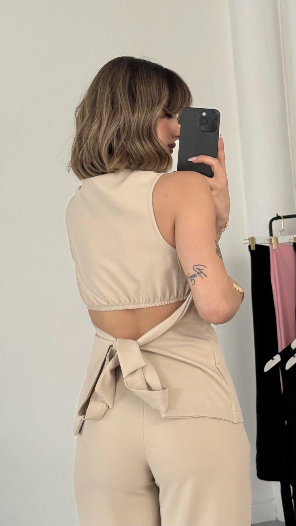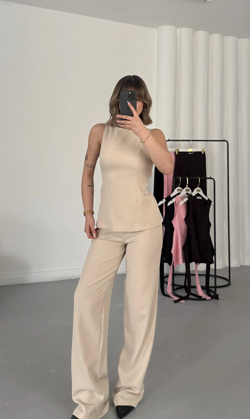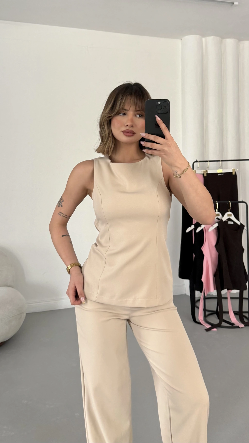 Linda Crep Takım - Bej