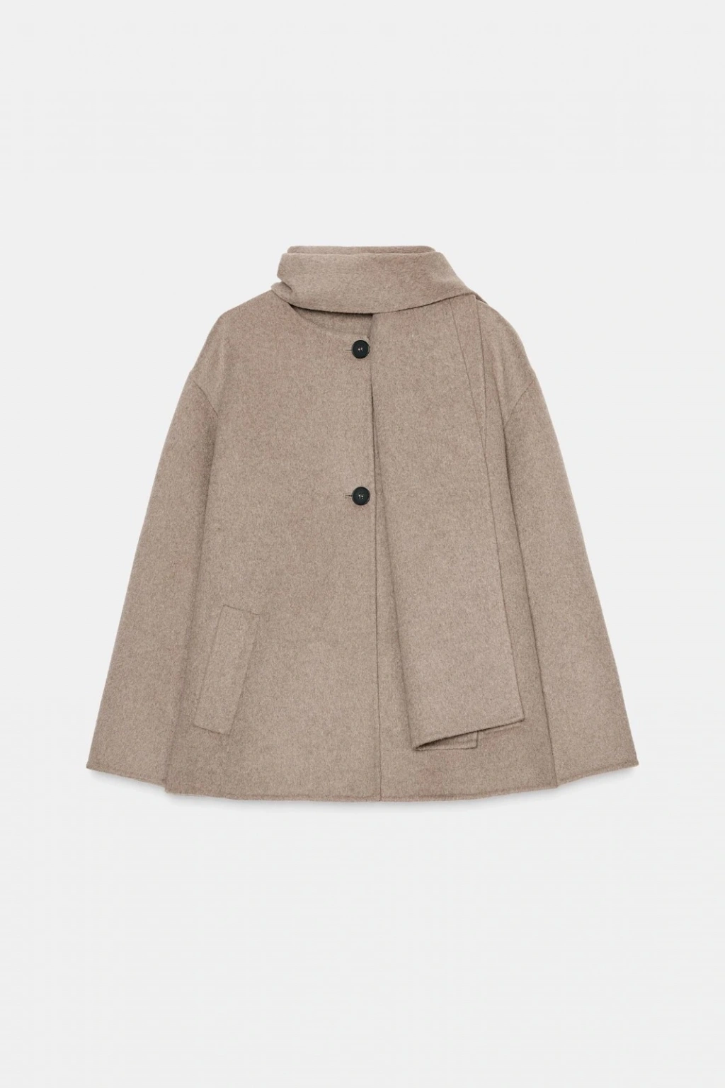 Lisa Şal Yaka Kaşe Kaban - Bej