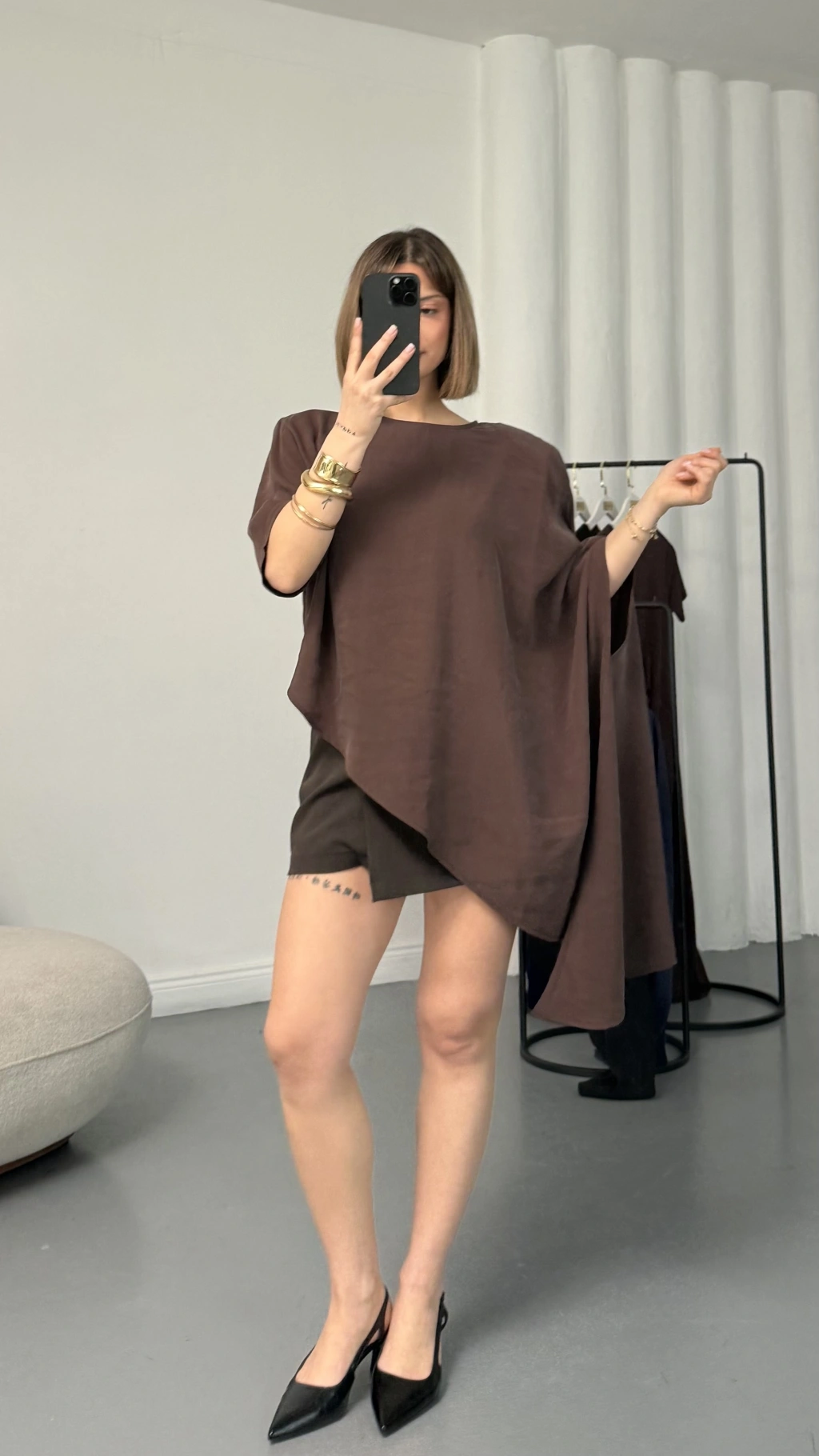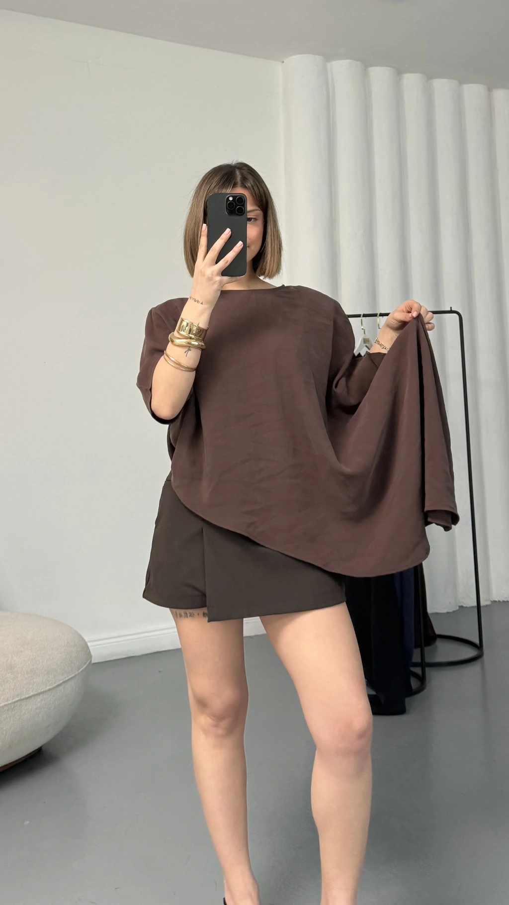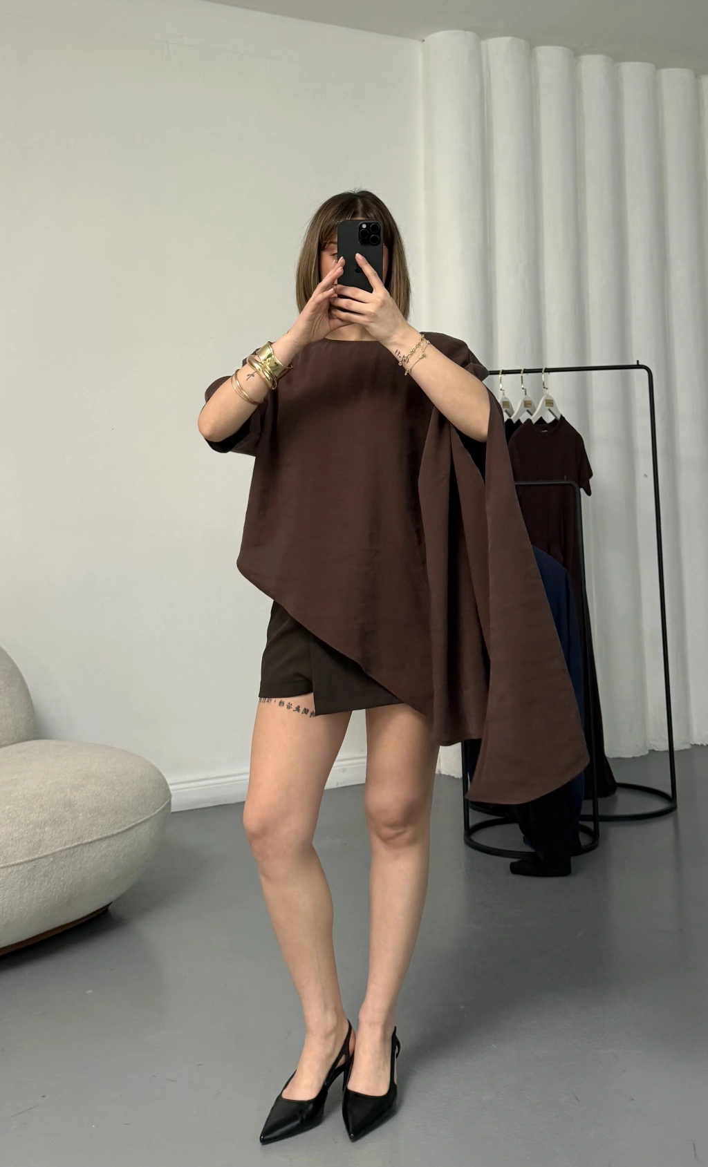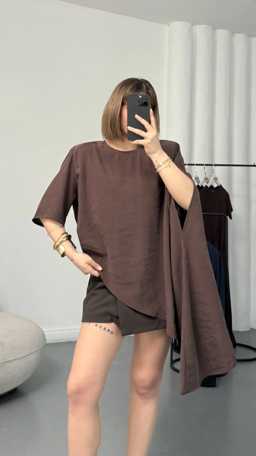 Lora Asimetrik Bluz - Kahve