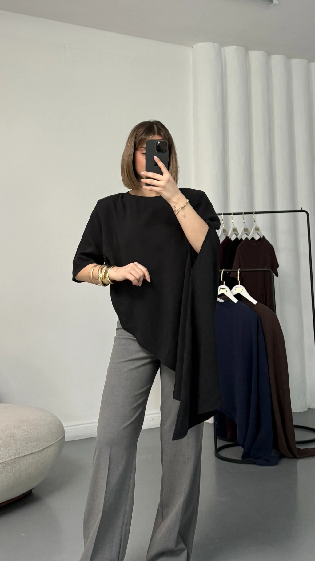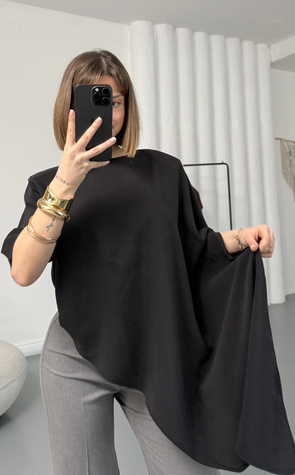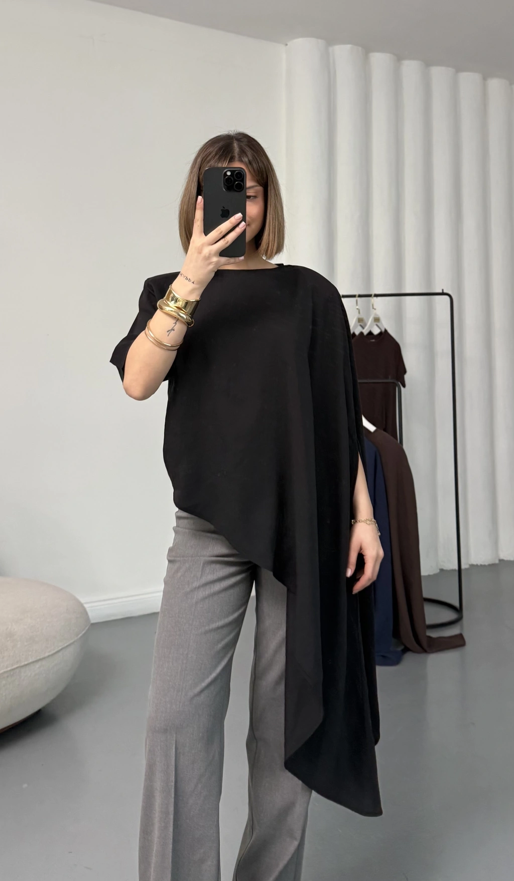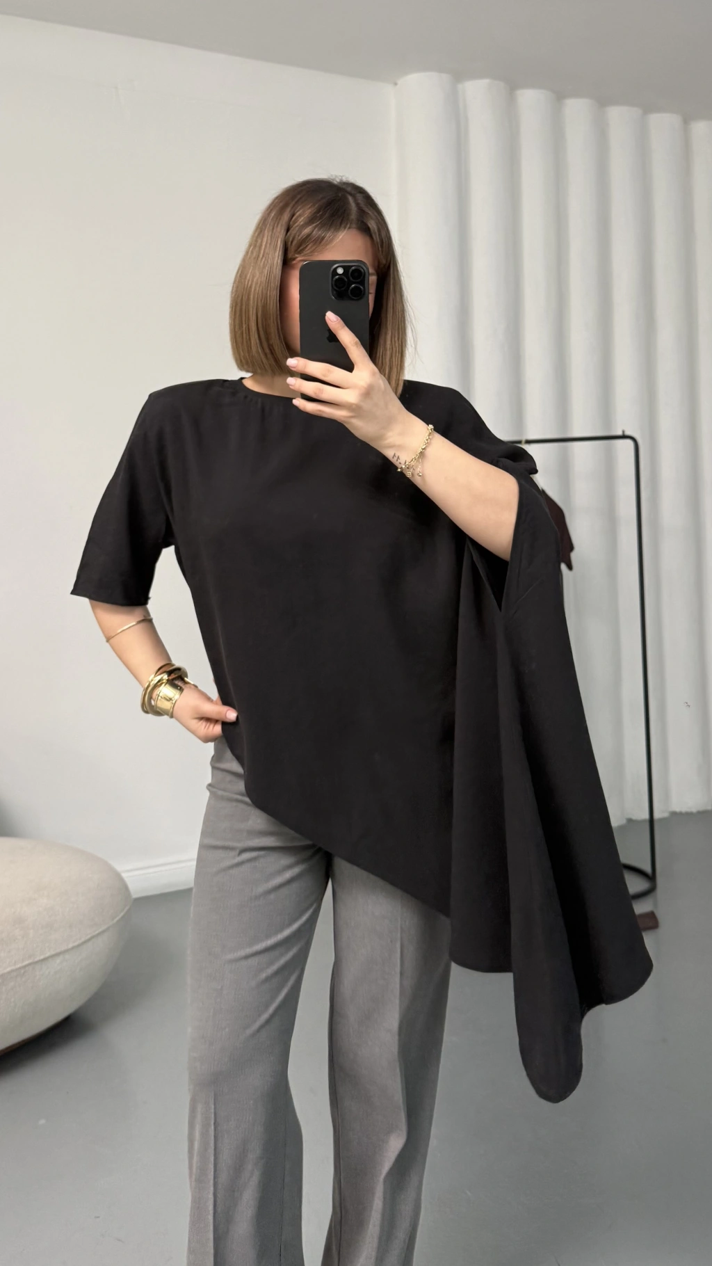 Lora Asimetrik Bluz - Siyah