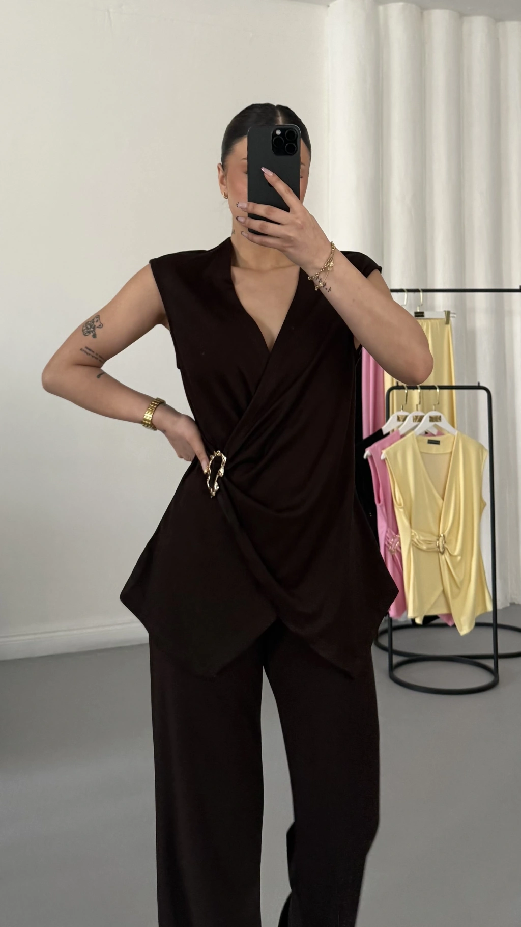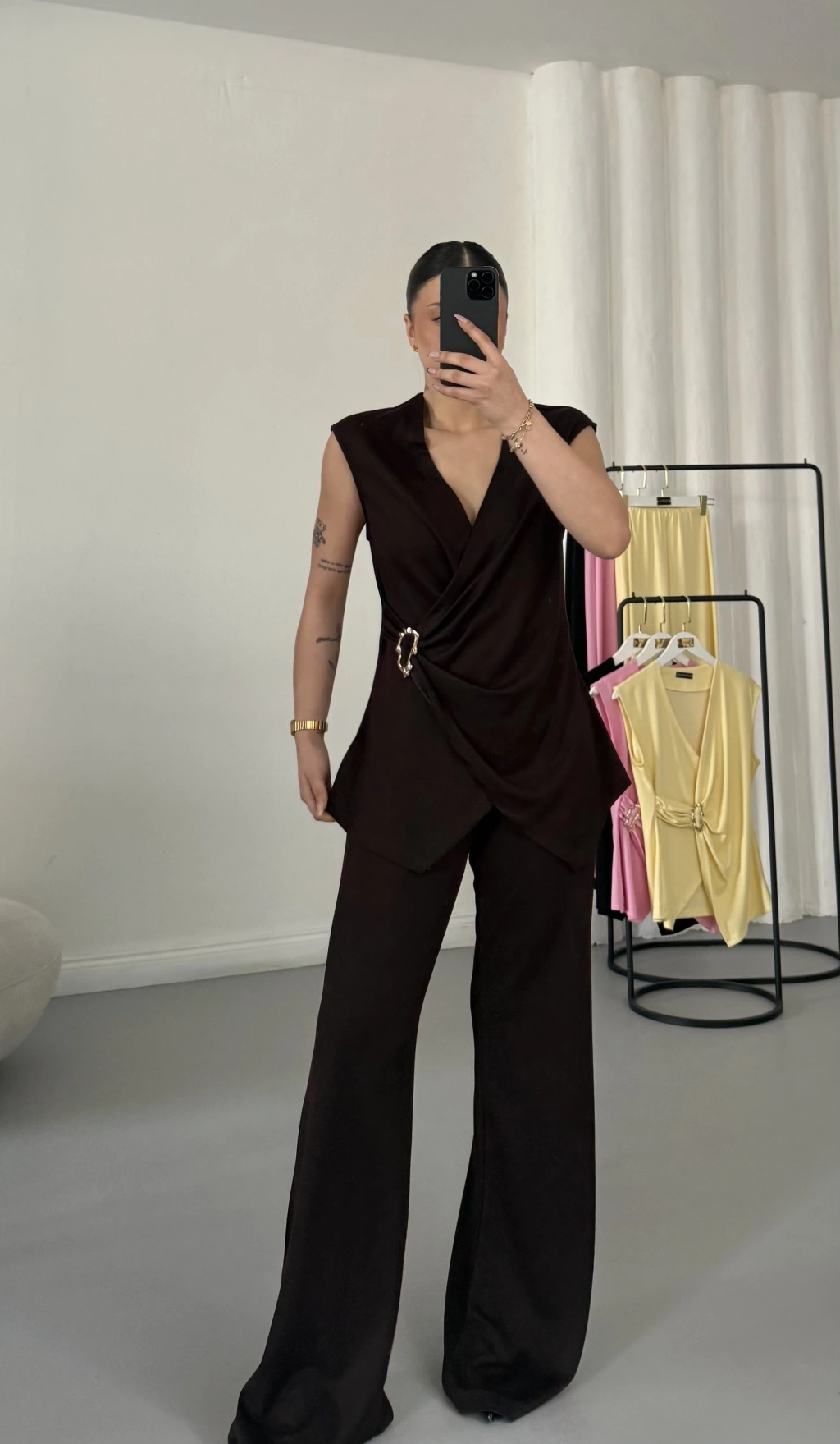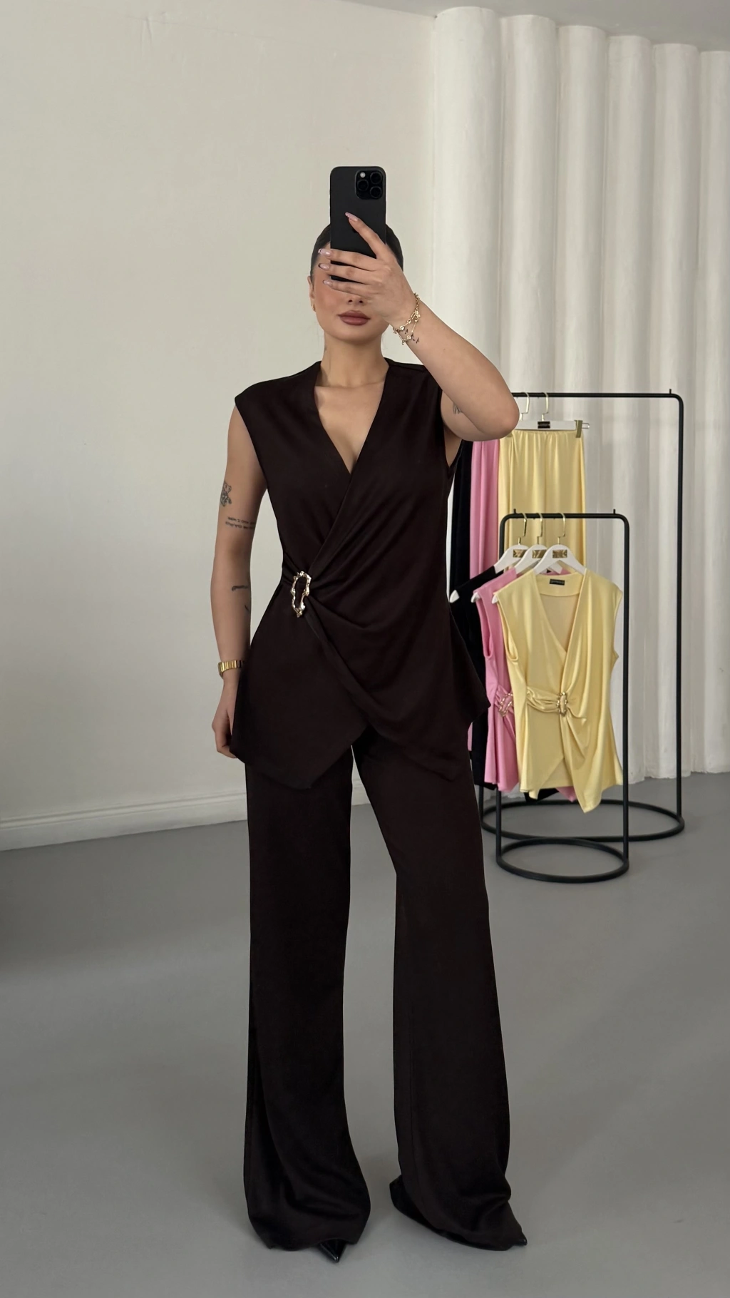 Ürün: Kruvaze Tokalı Bluz & Palazzo Pantolon Takım