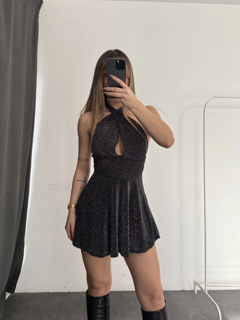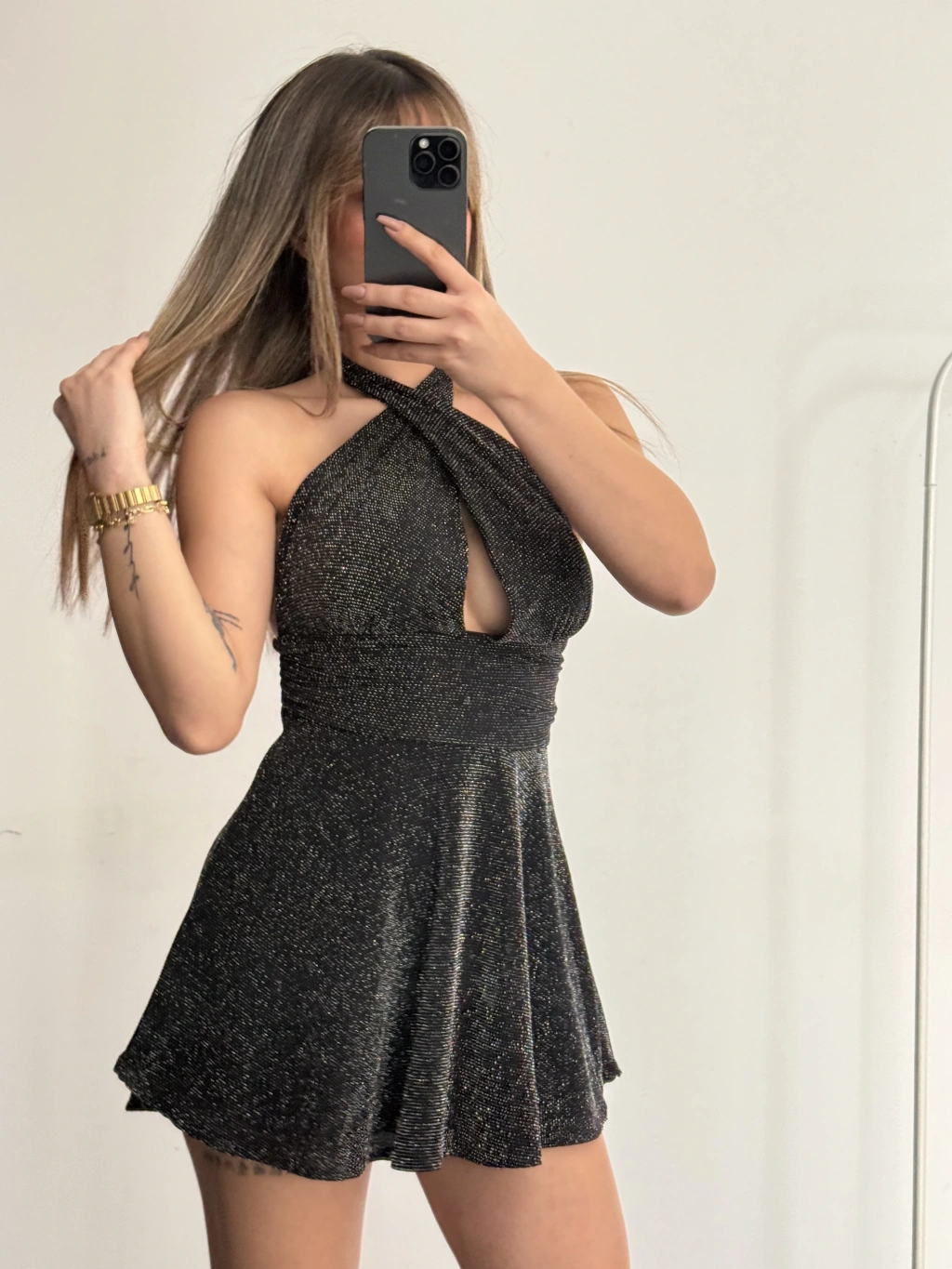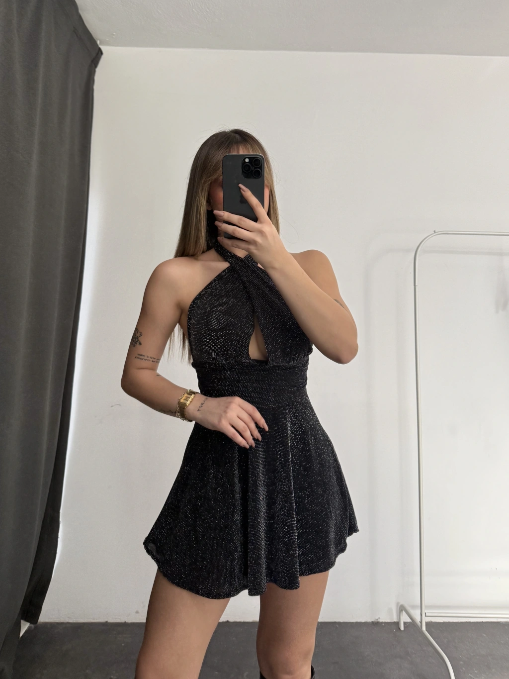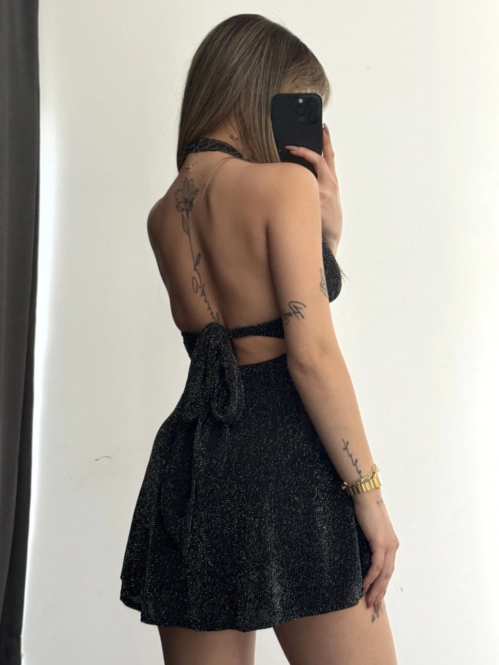 Margot Sırt Dekolte Simli Elbise - Siyah