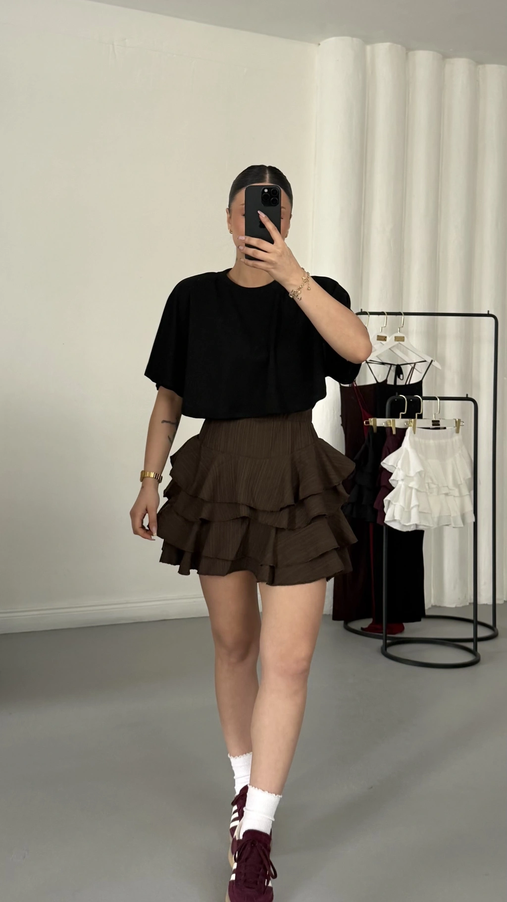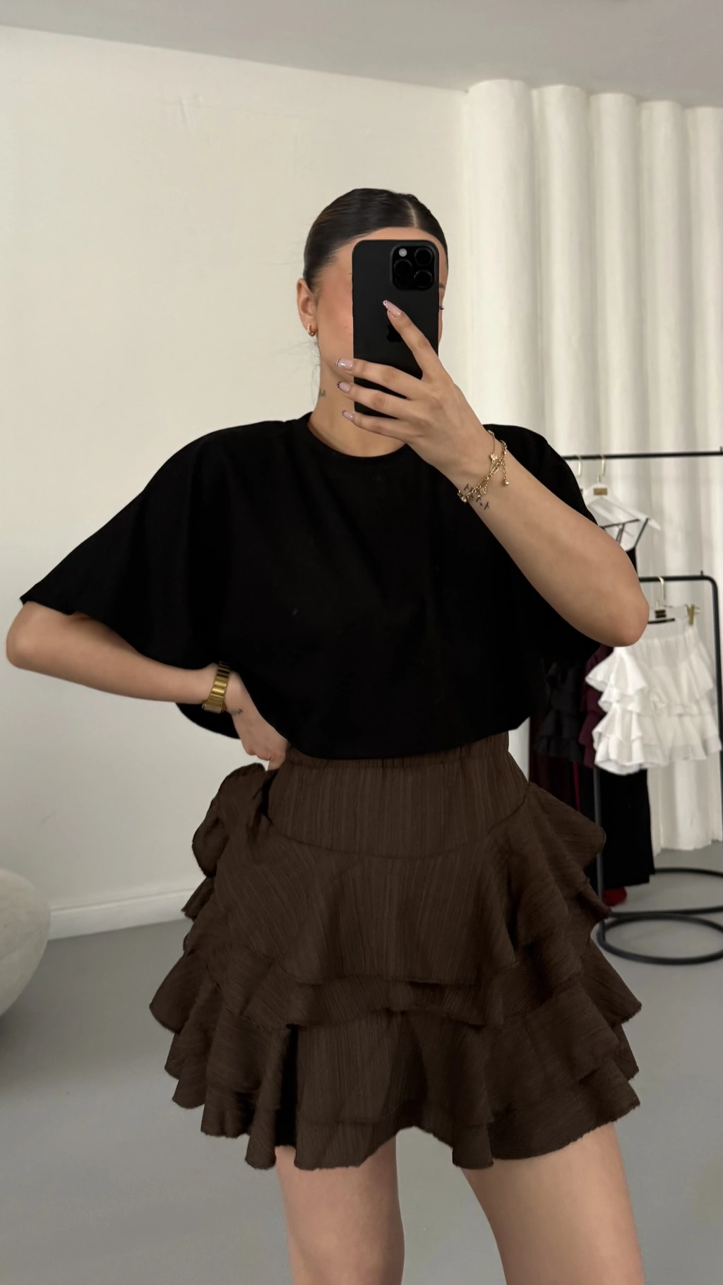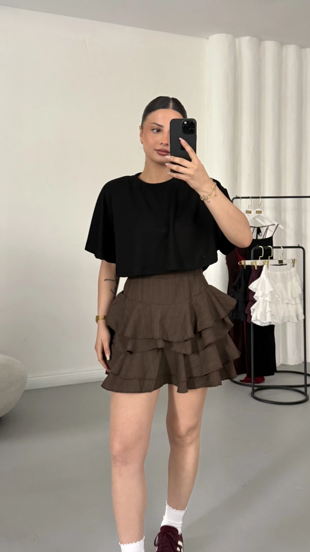Melly Fırfırlı Etek - Kahve