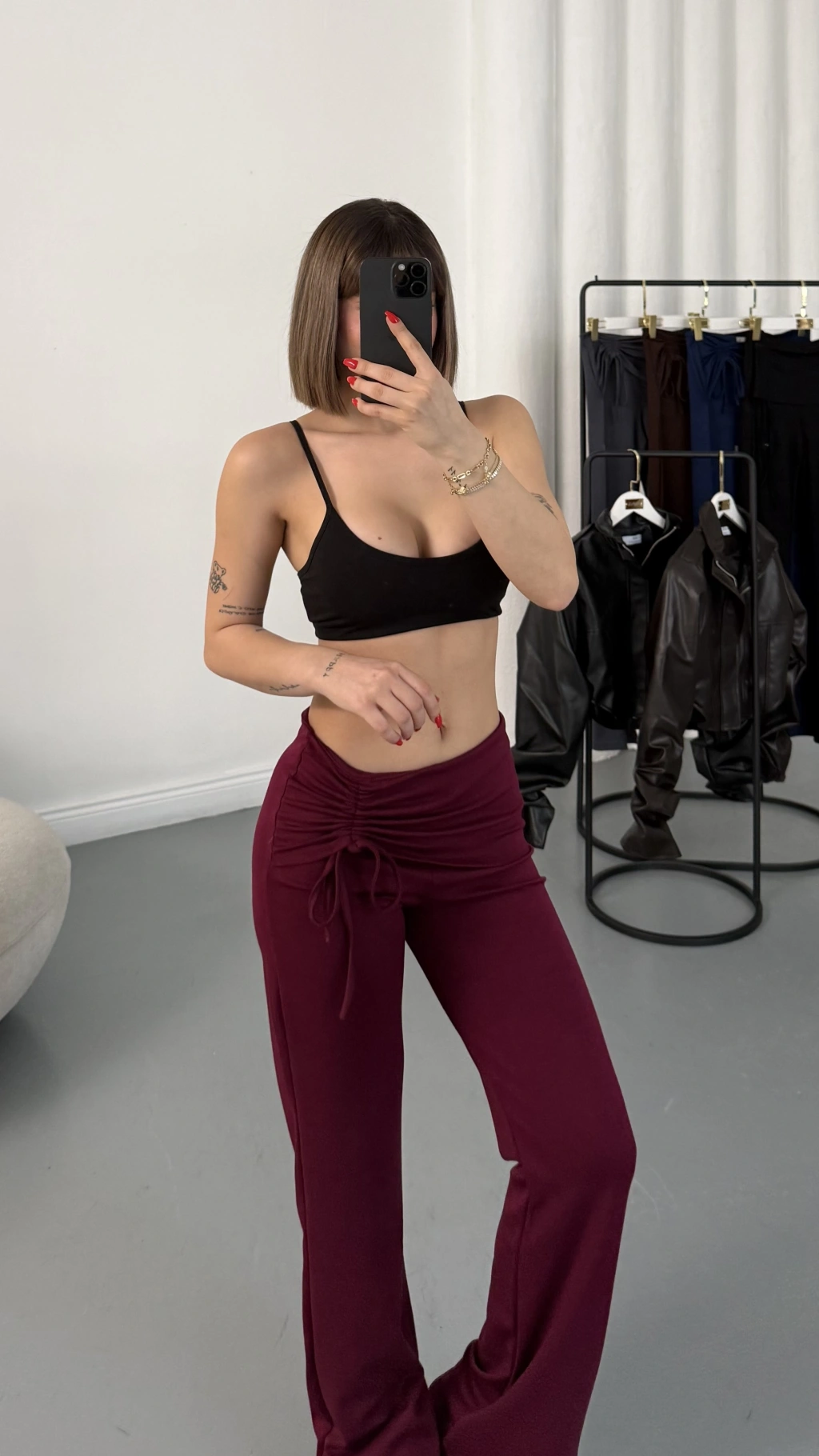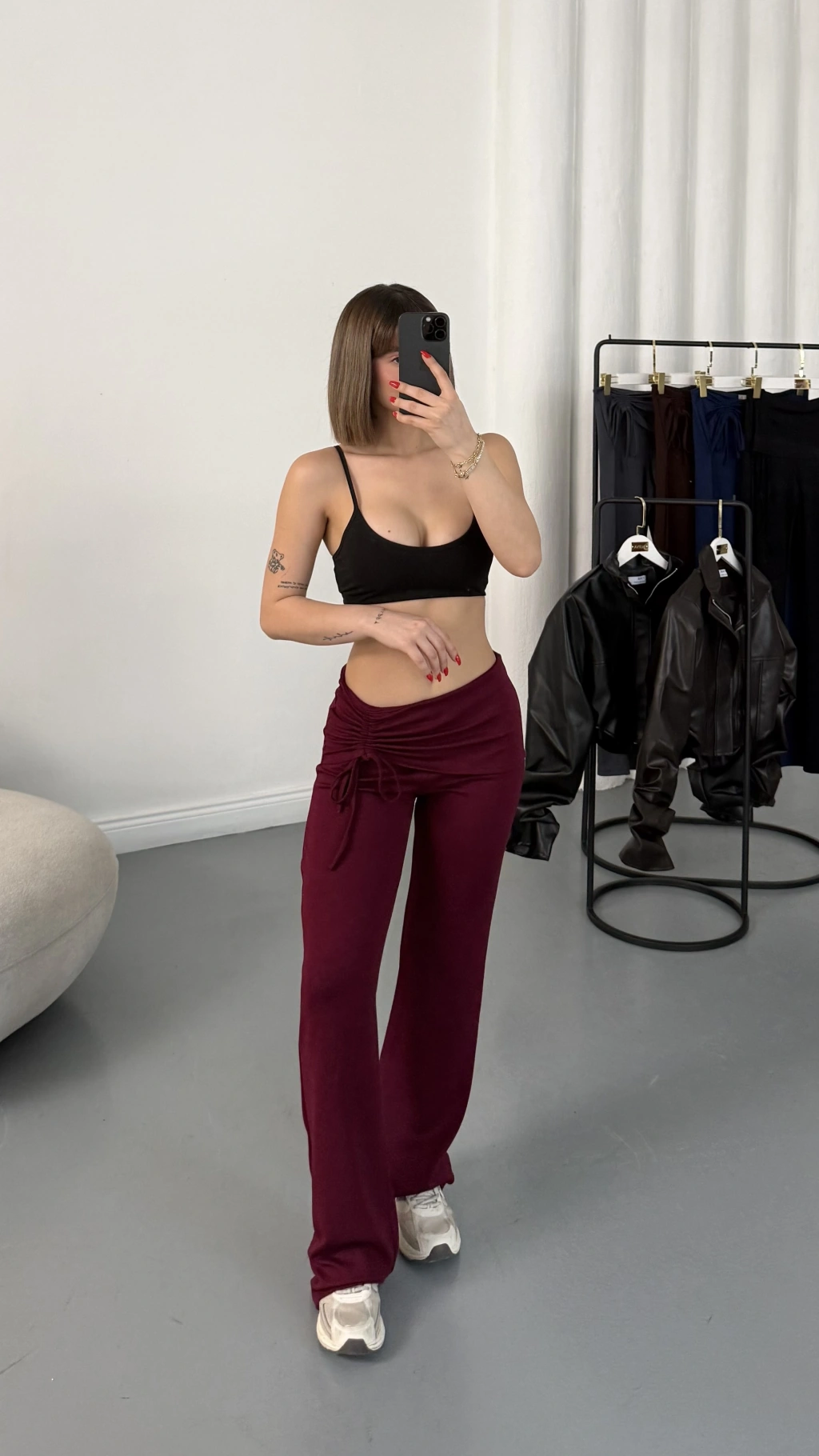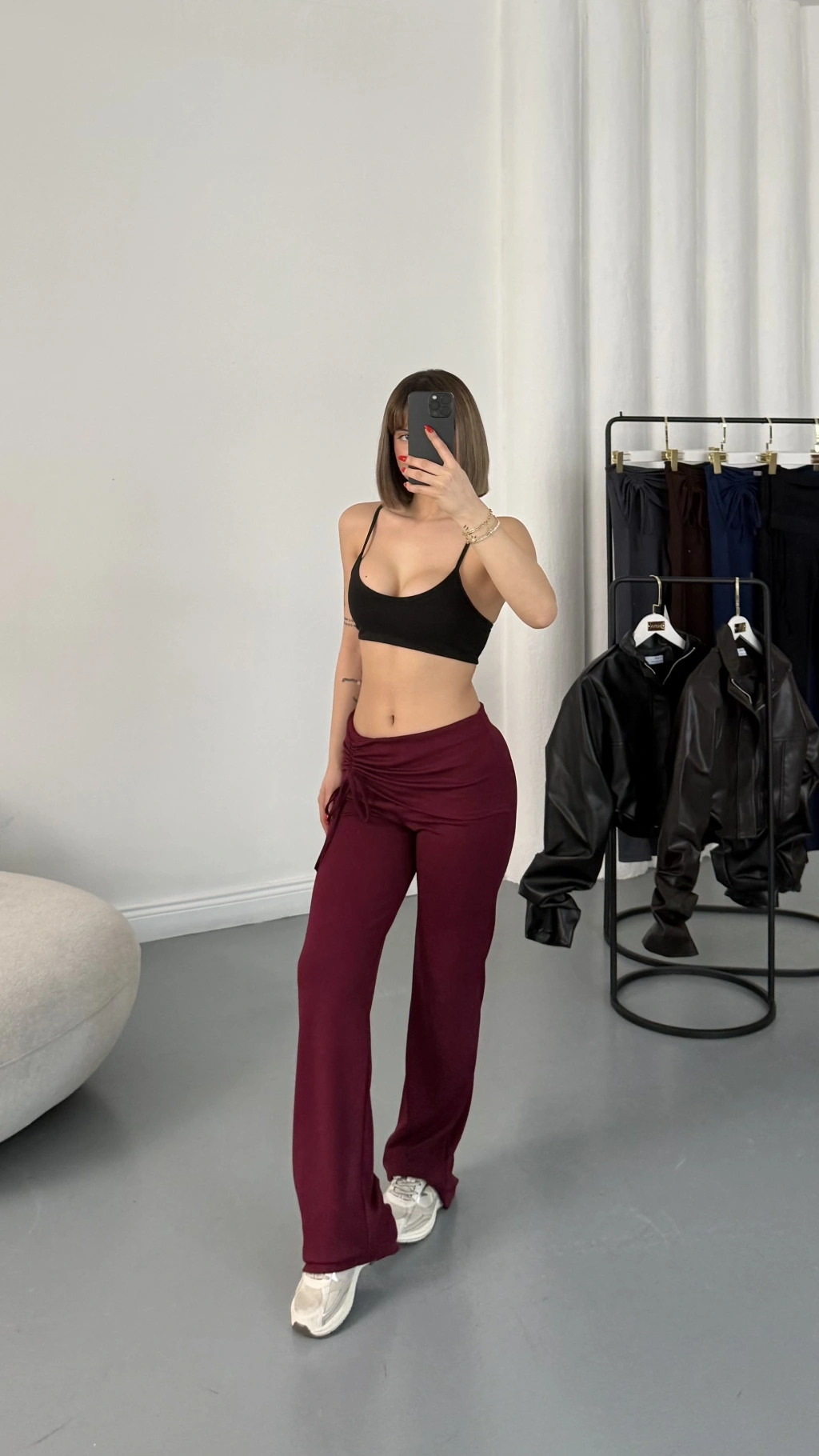 Mila Bel Büzgülü Oys Pantolon - Bordo