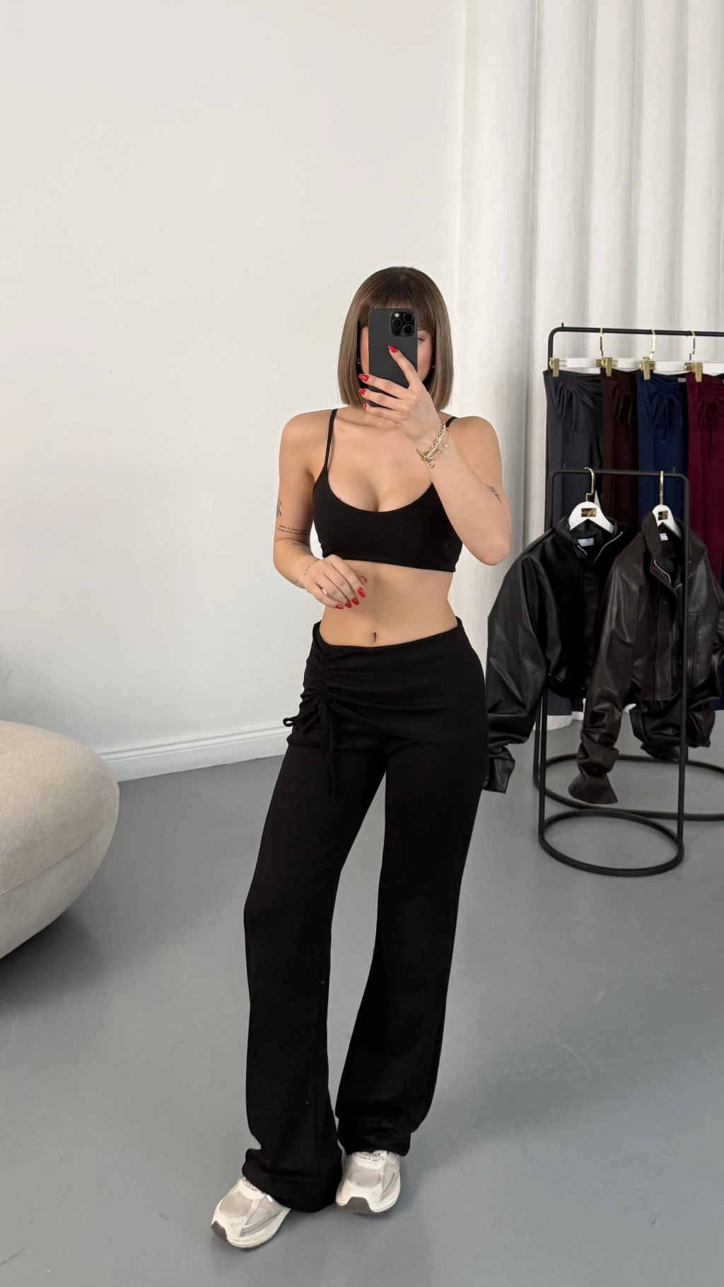 Mila Bel Büzgülü Oys Pantolon - Siyah