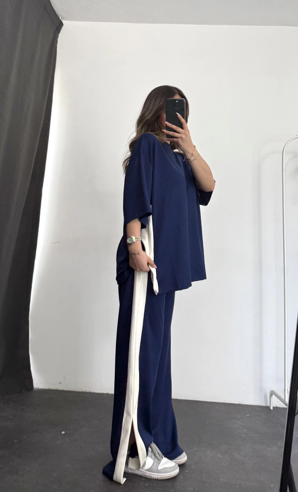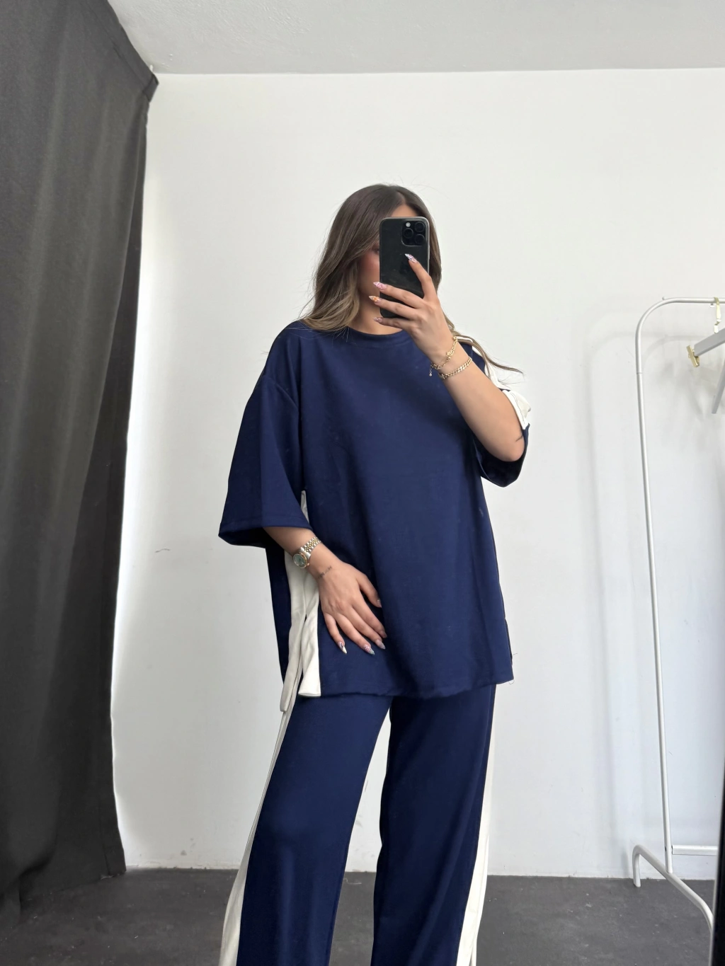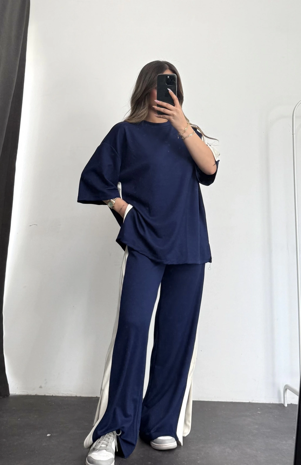 Oversize Şeritli Takım - Lacivert