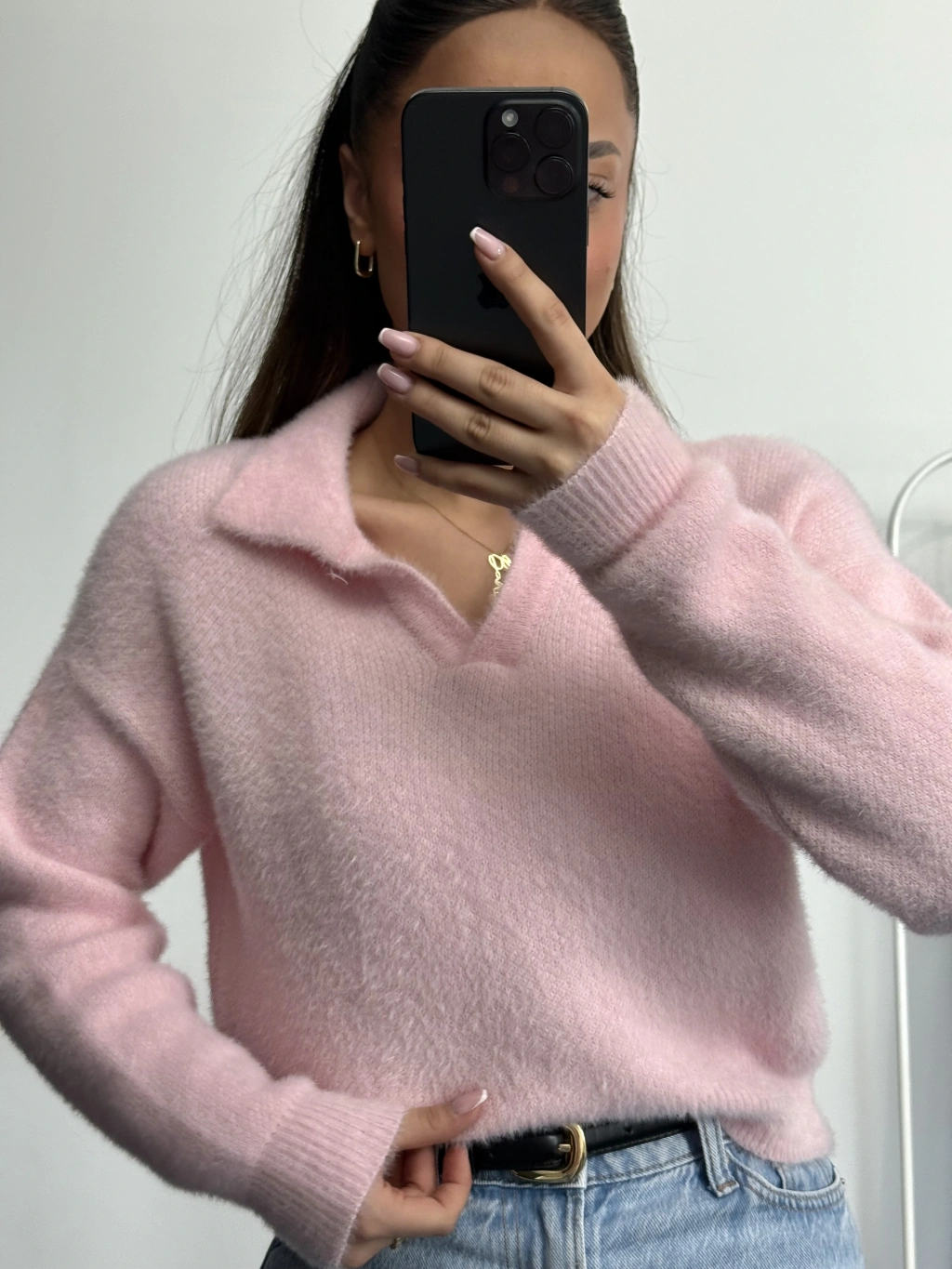 Polo Yaka Triko Kazak - Pembe