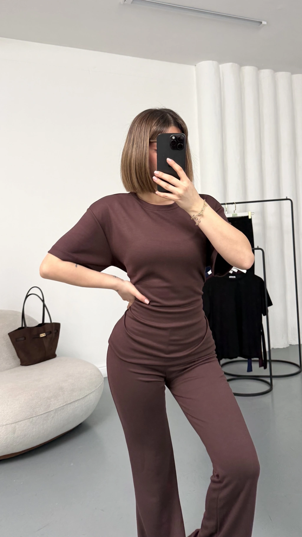 Rosa Bağlamalı Takım - Kahve