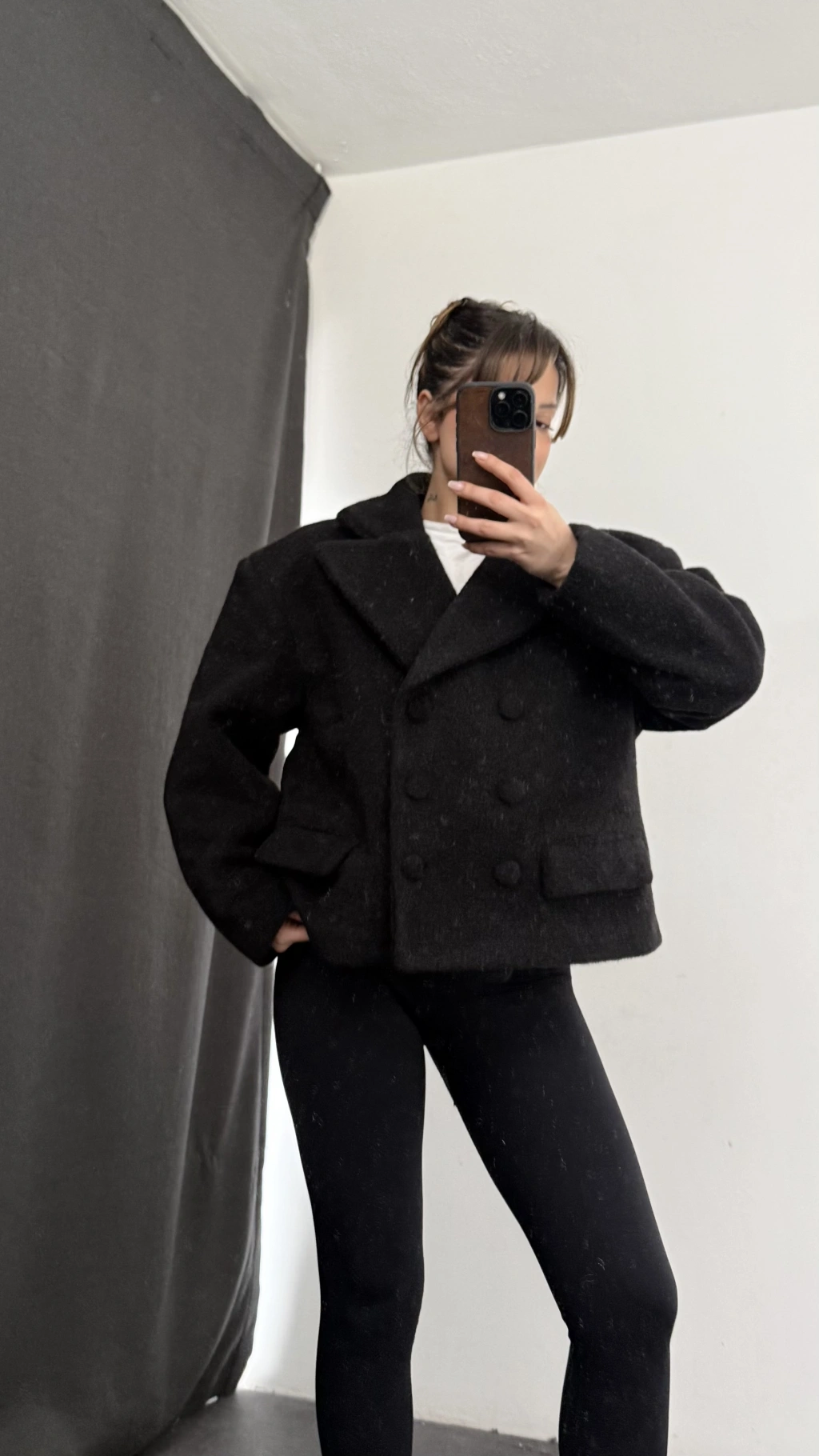 Sasha Kısa Kaşe Kaban - Siyah