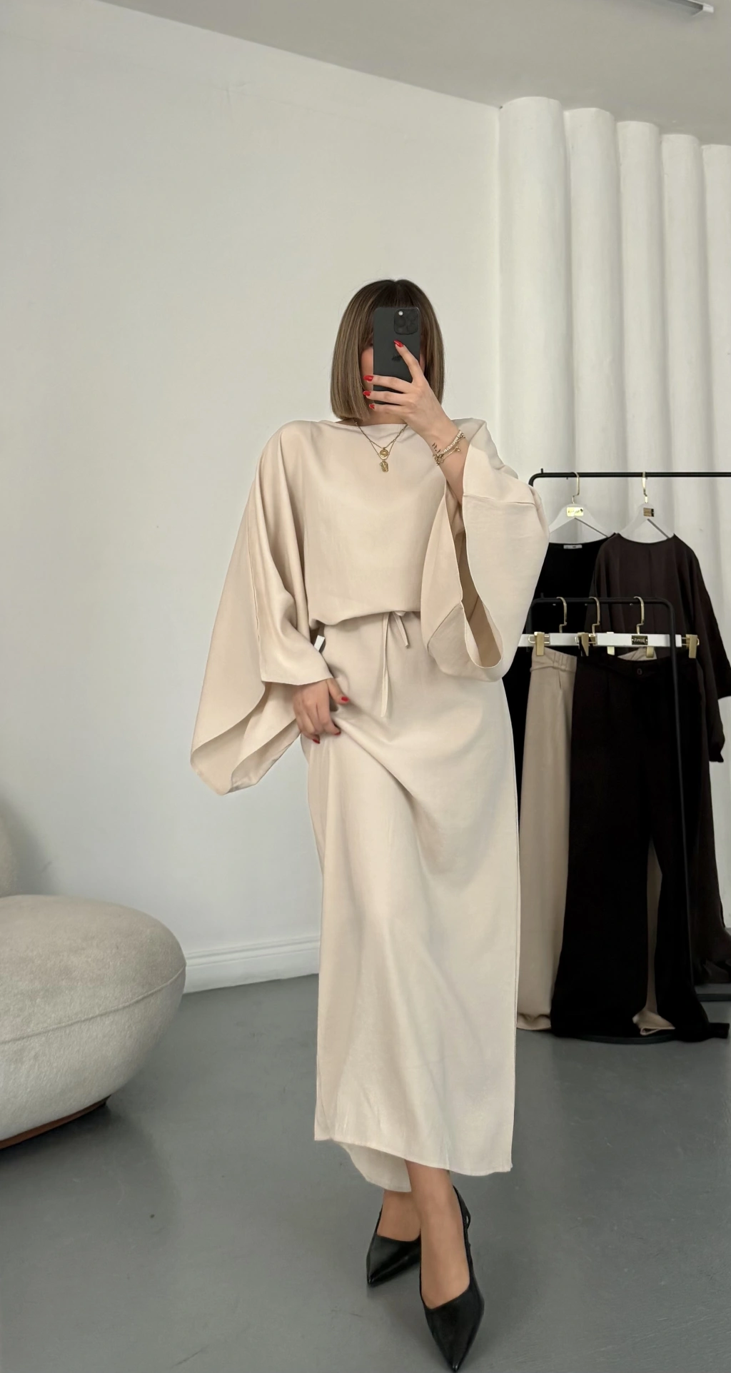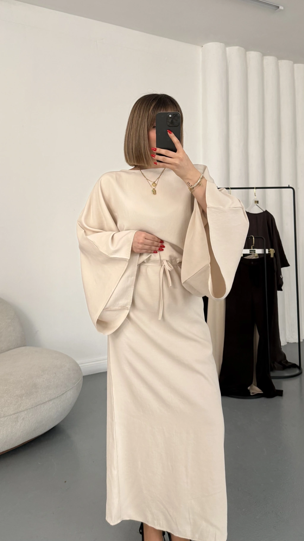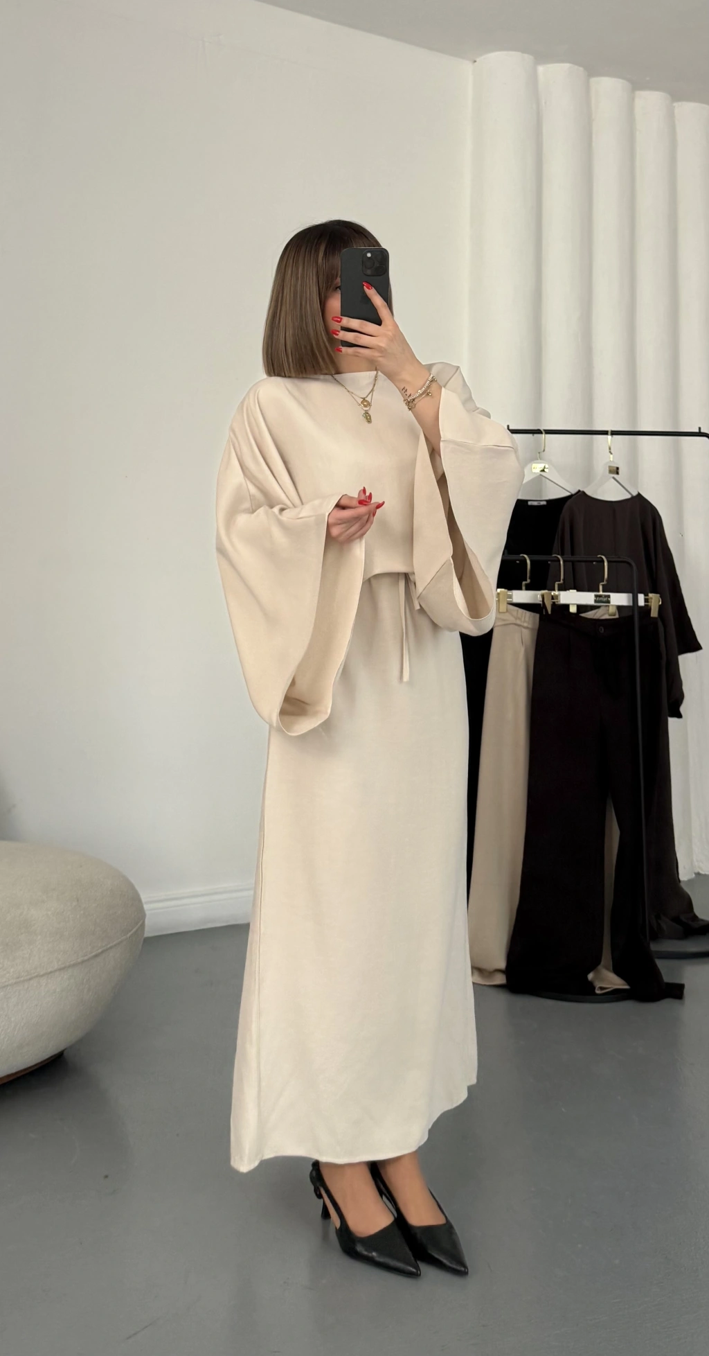 Sila Yarasa Kol Elbise - Bej