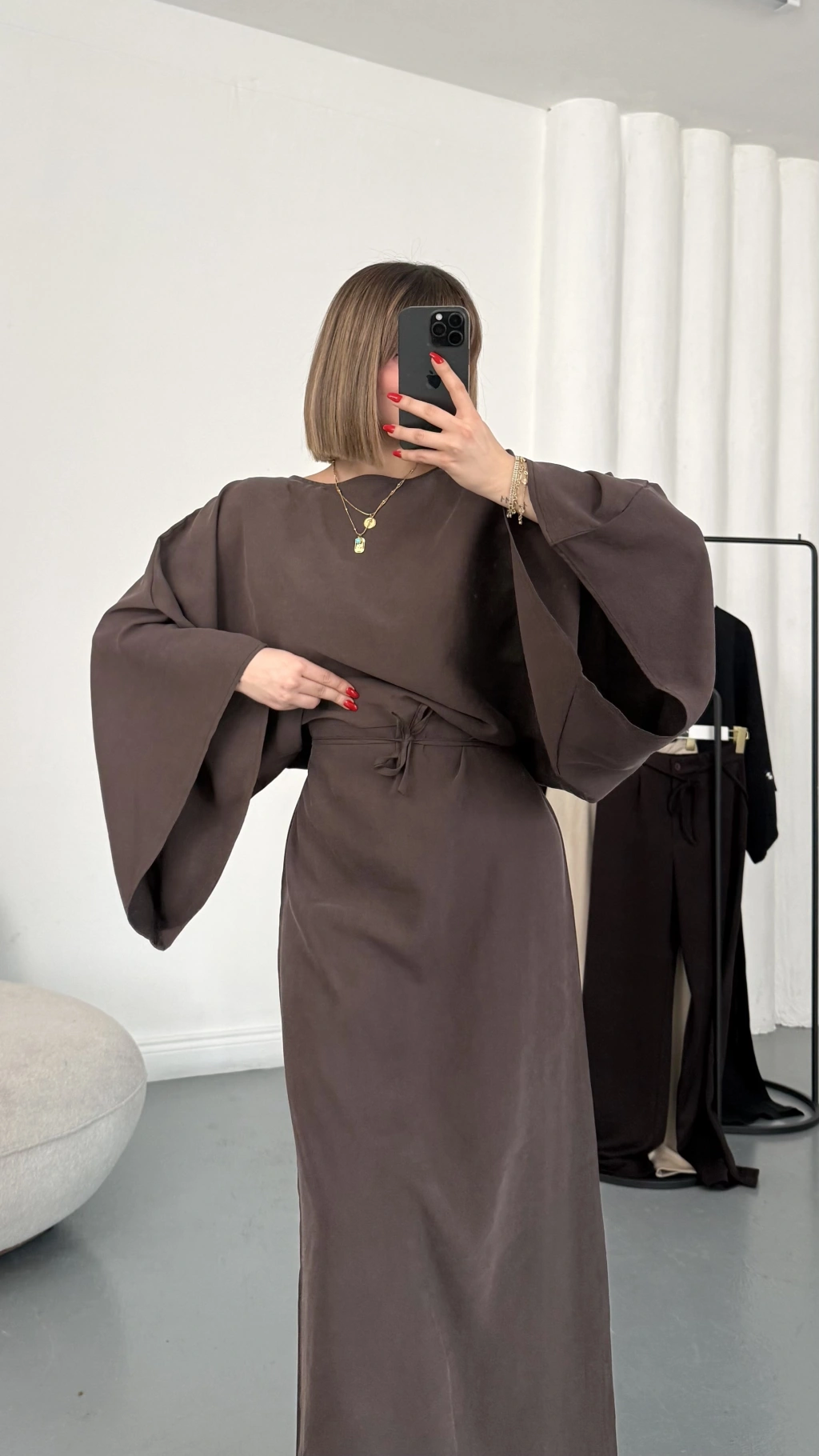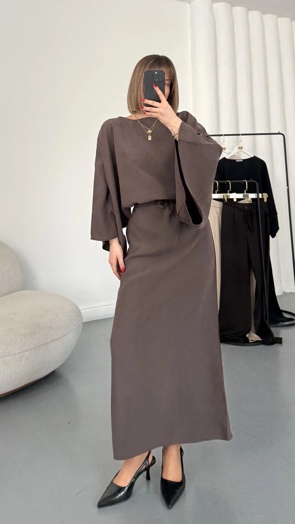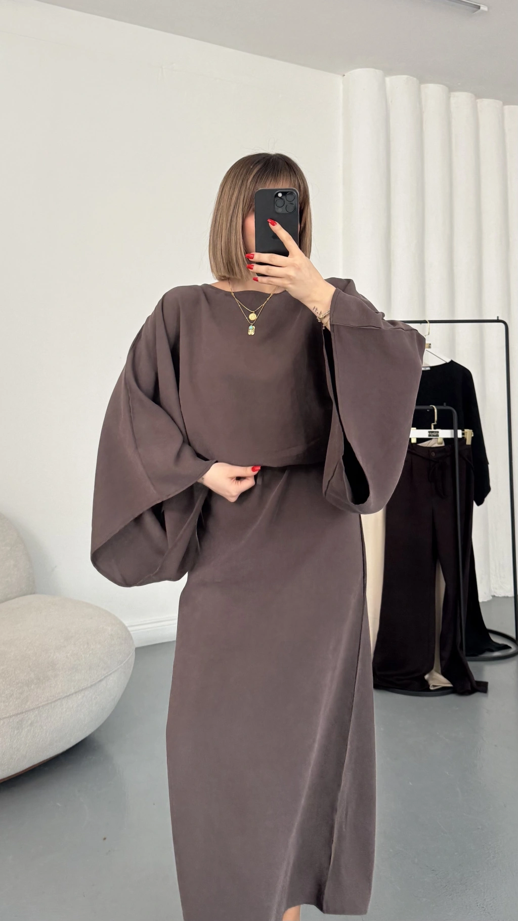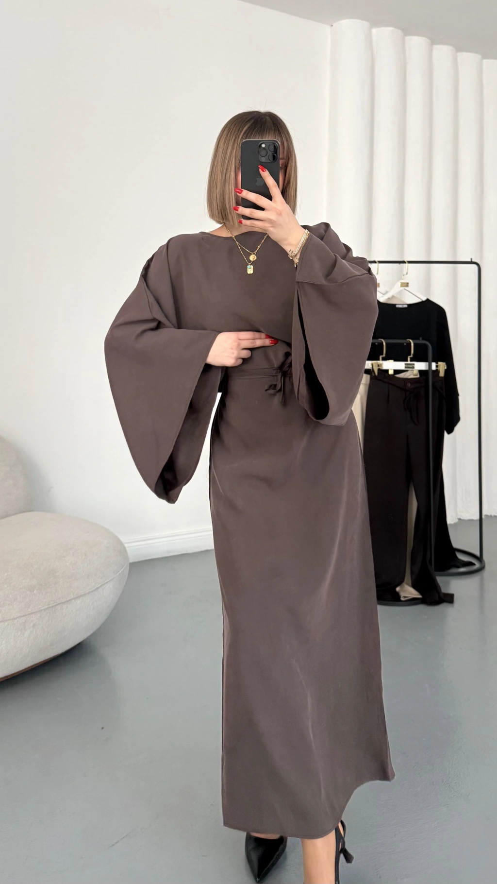 Sila Yarasa Kol Elbise - Kahve